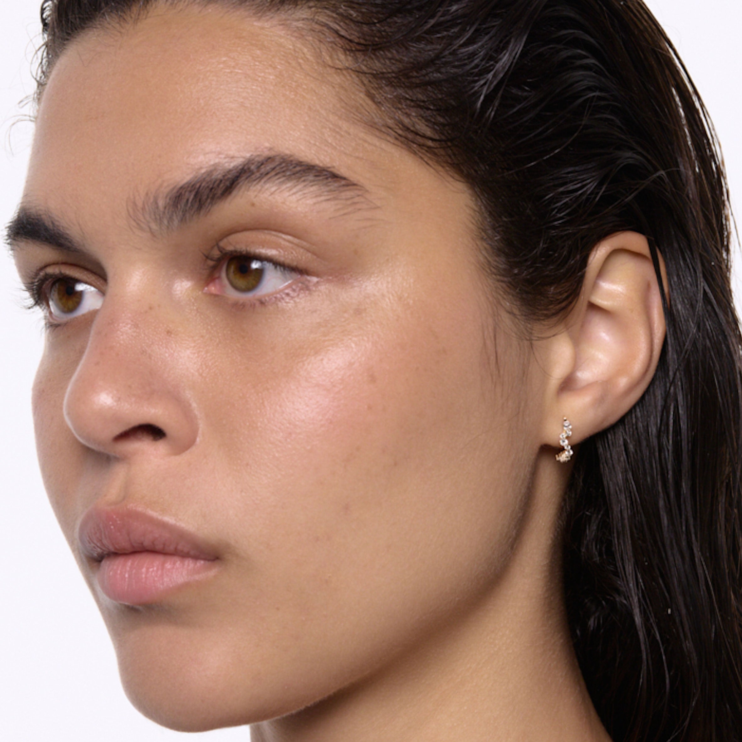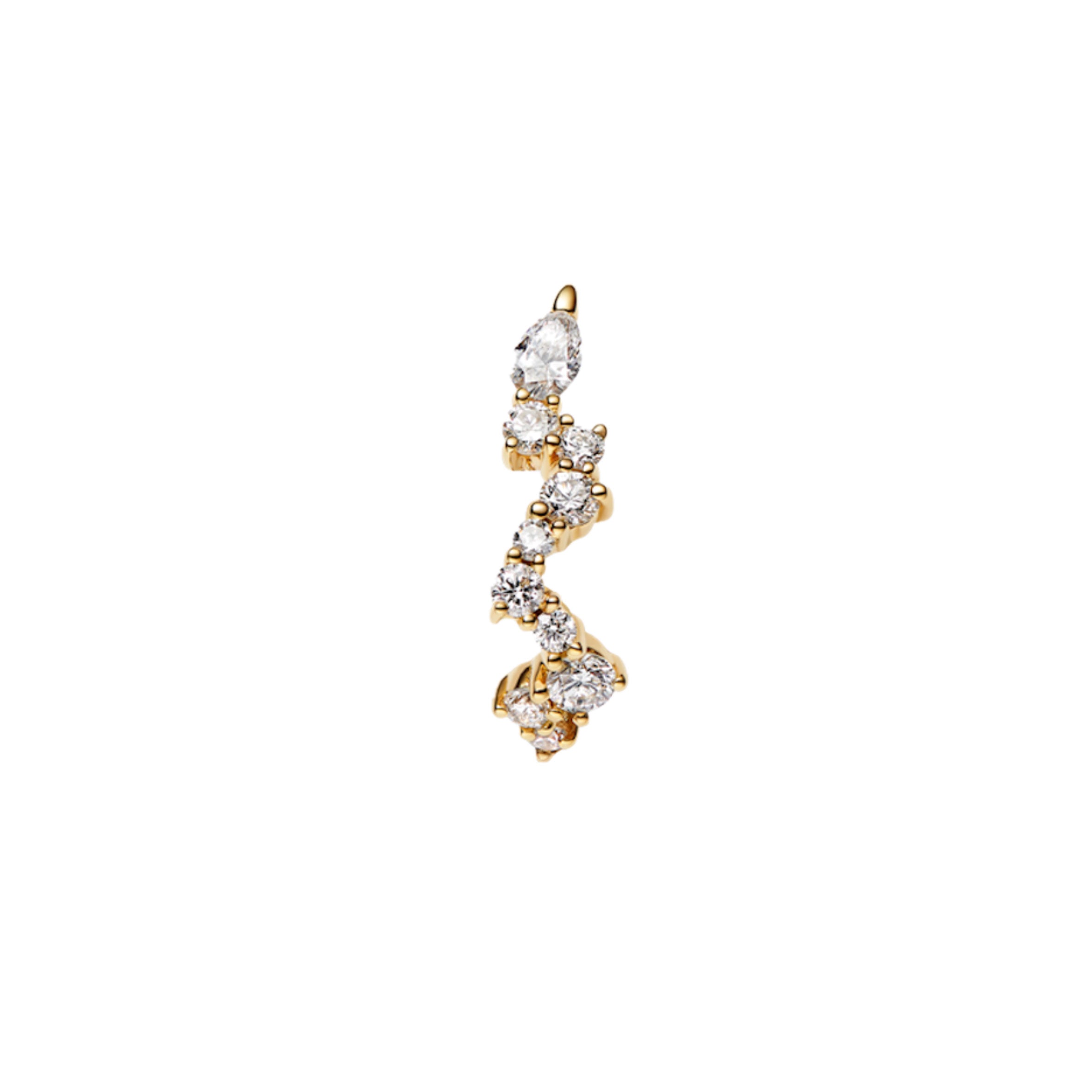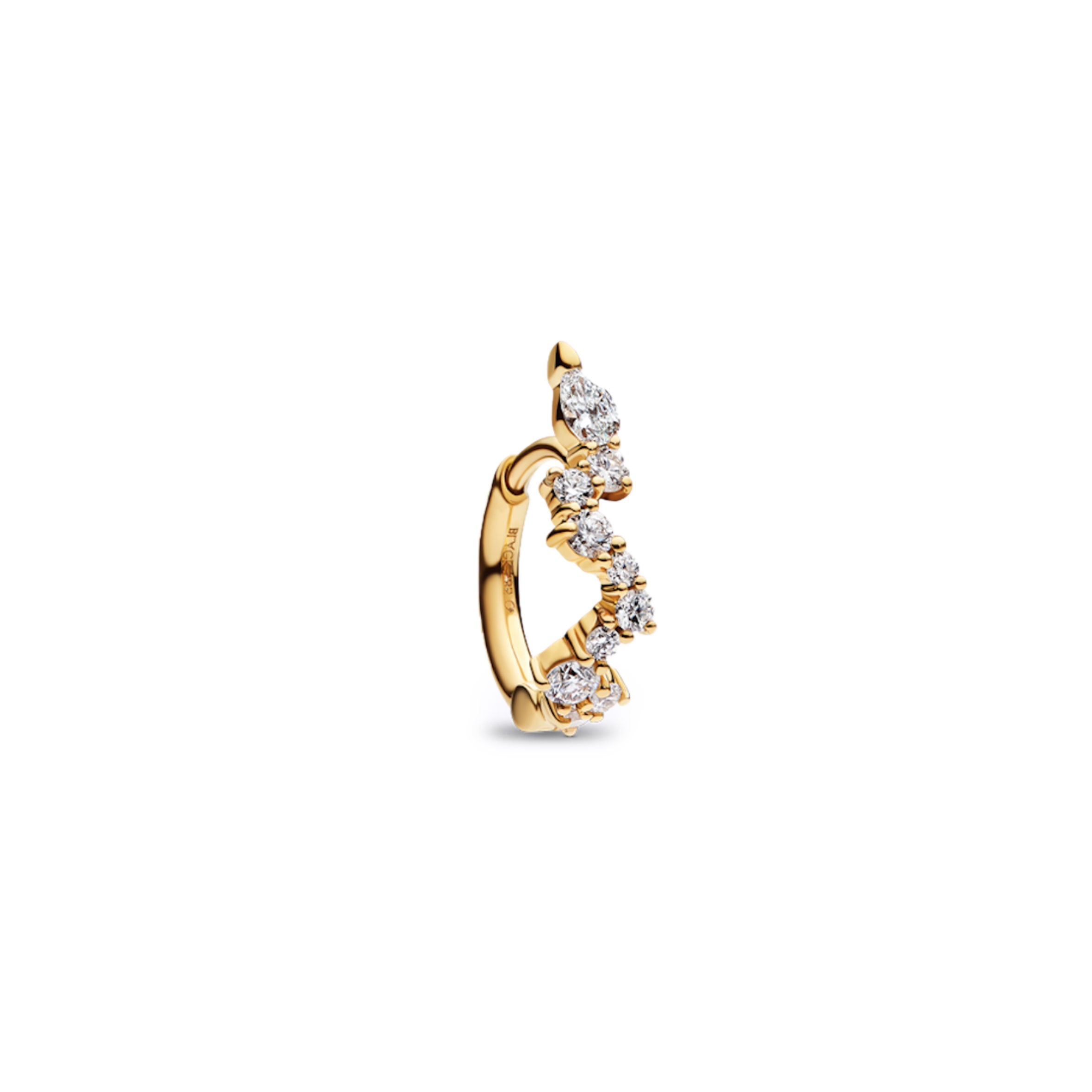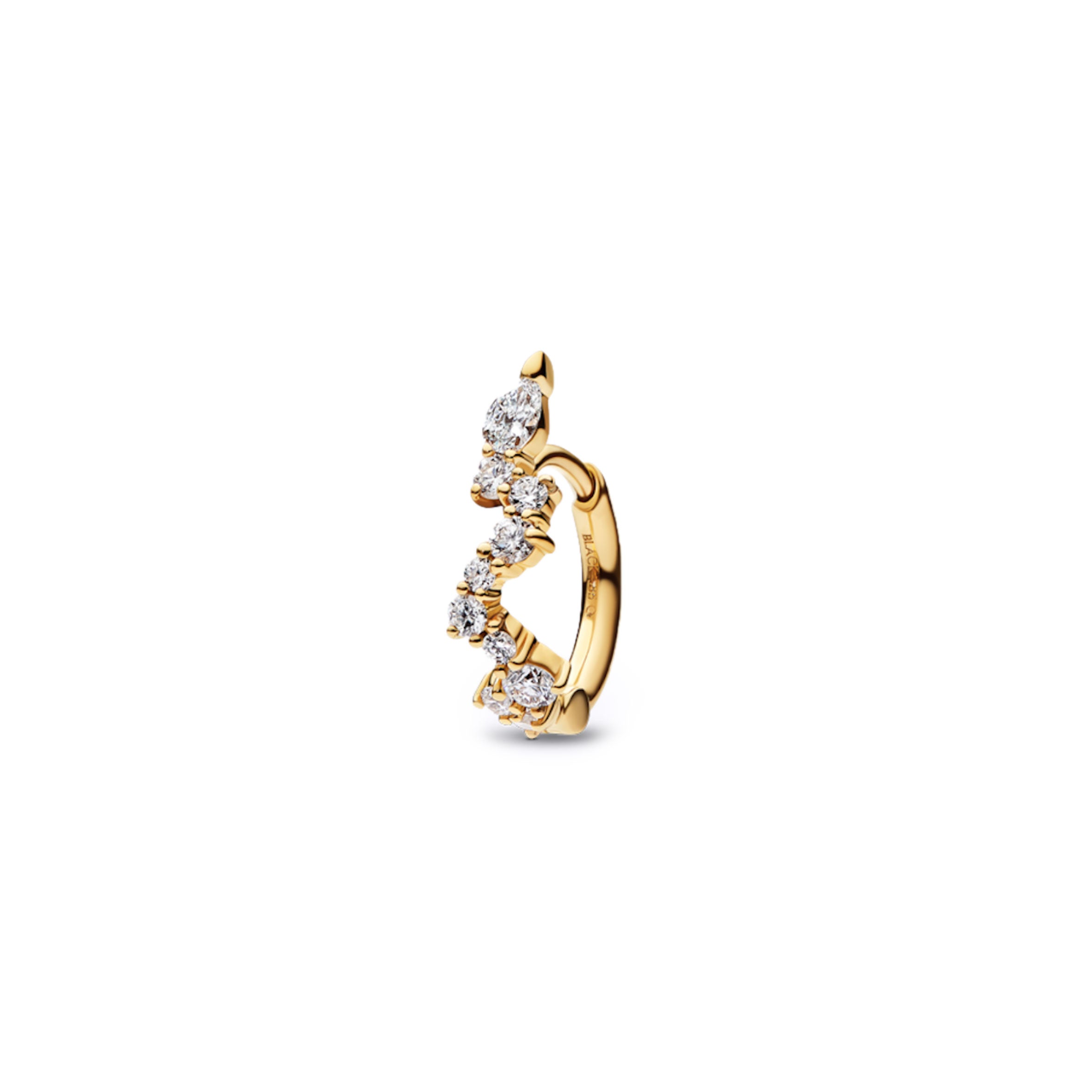 Stunning and playful 14K gold huggie beautifully covered by 25 diamonds. It fits perfect as a helix earring.