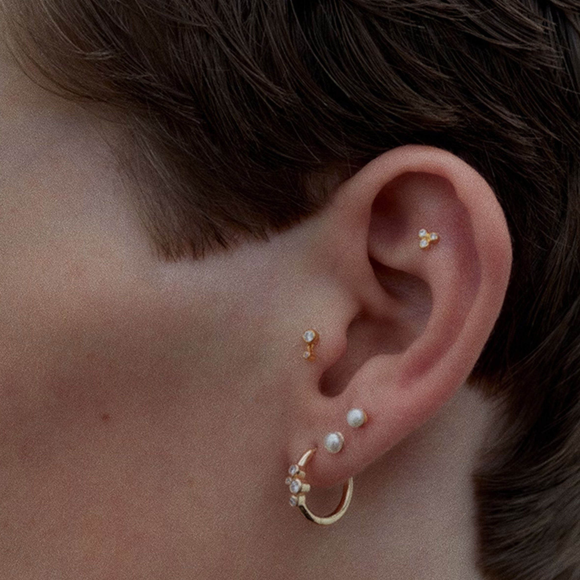 A collection of three diamonds encased in 14k yellow gold. Quite a versatile labret earring that would look stunning in most piercings.