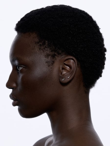The threaded earring screws into a threaded post, which is inserted from behind the ear. The threaded post has a hygienic and comfortable flat disc
