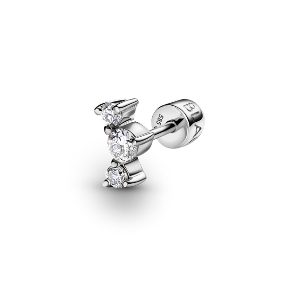 Stud earring with 3 lab-grown diamonds in a curved silhouette.