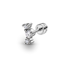 The threaded earring screws into a threaded post, which is inserted from behind the ear. The threaded post has a hygienic and comfortable flat disc