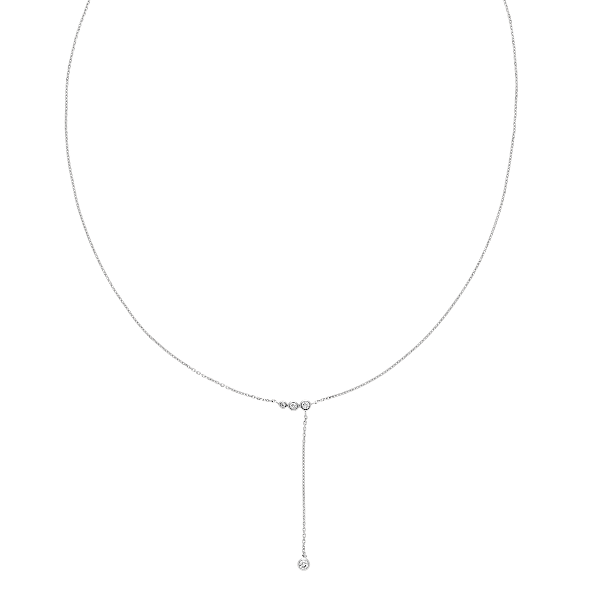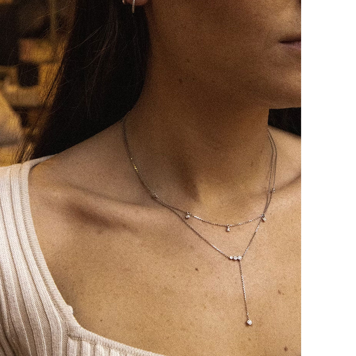 The Grace Necklace is a modern take on a classic silhouette, made from 14k IMPACT gold and 4 lab-grown diamonds of various sizes. The delicate chain is completed by three lab-grown diamonds that slightly extend through a link of the necklace, as if it would be slowly melting, finished by a single lab-grown diamond "droplet".