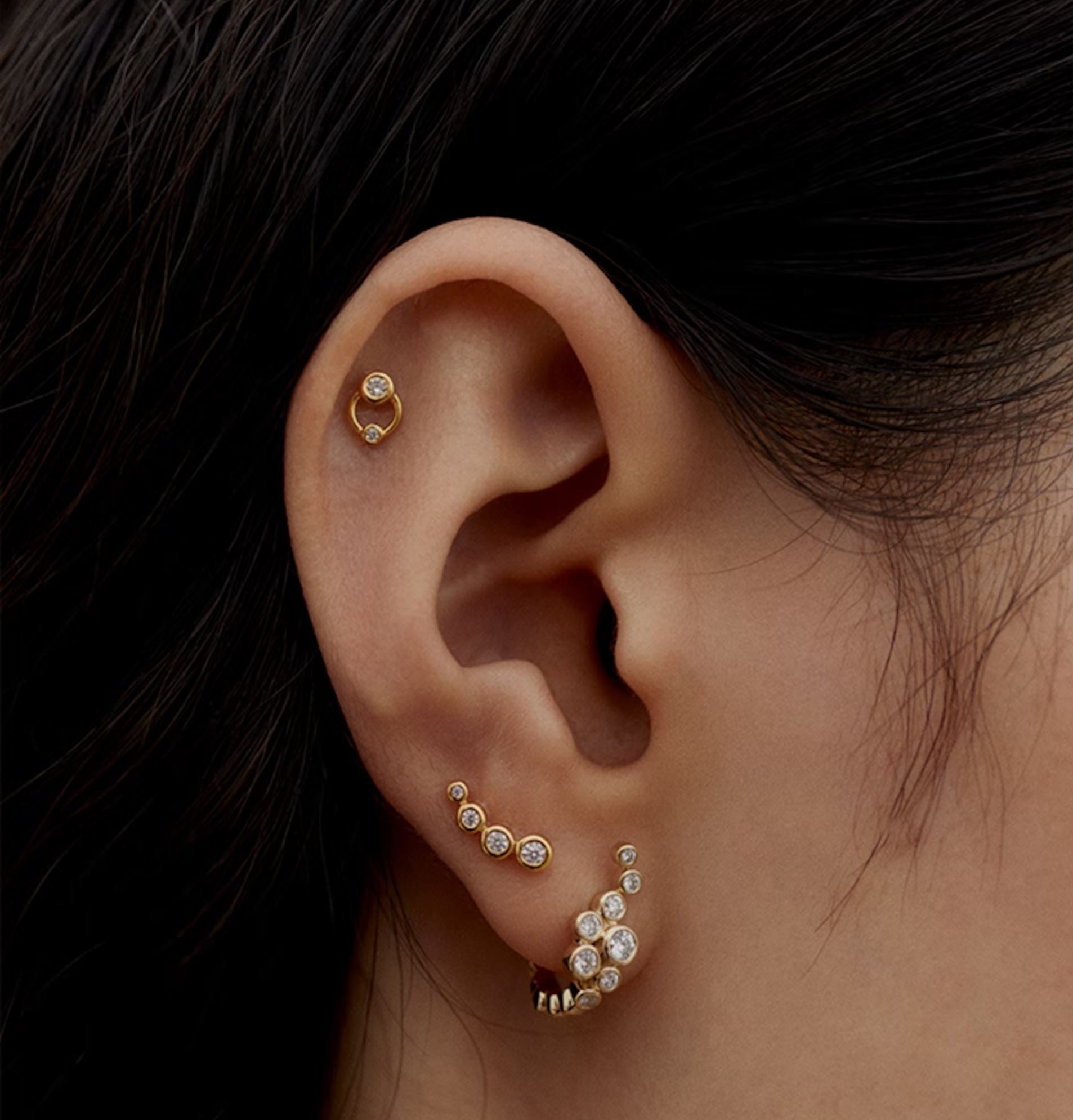 Loren is an understated yet impactful piercing jewellery made to follow the curve of your ear. Suitable for most placements, but looks especially great as a helix piercing.