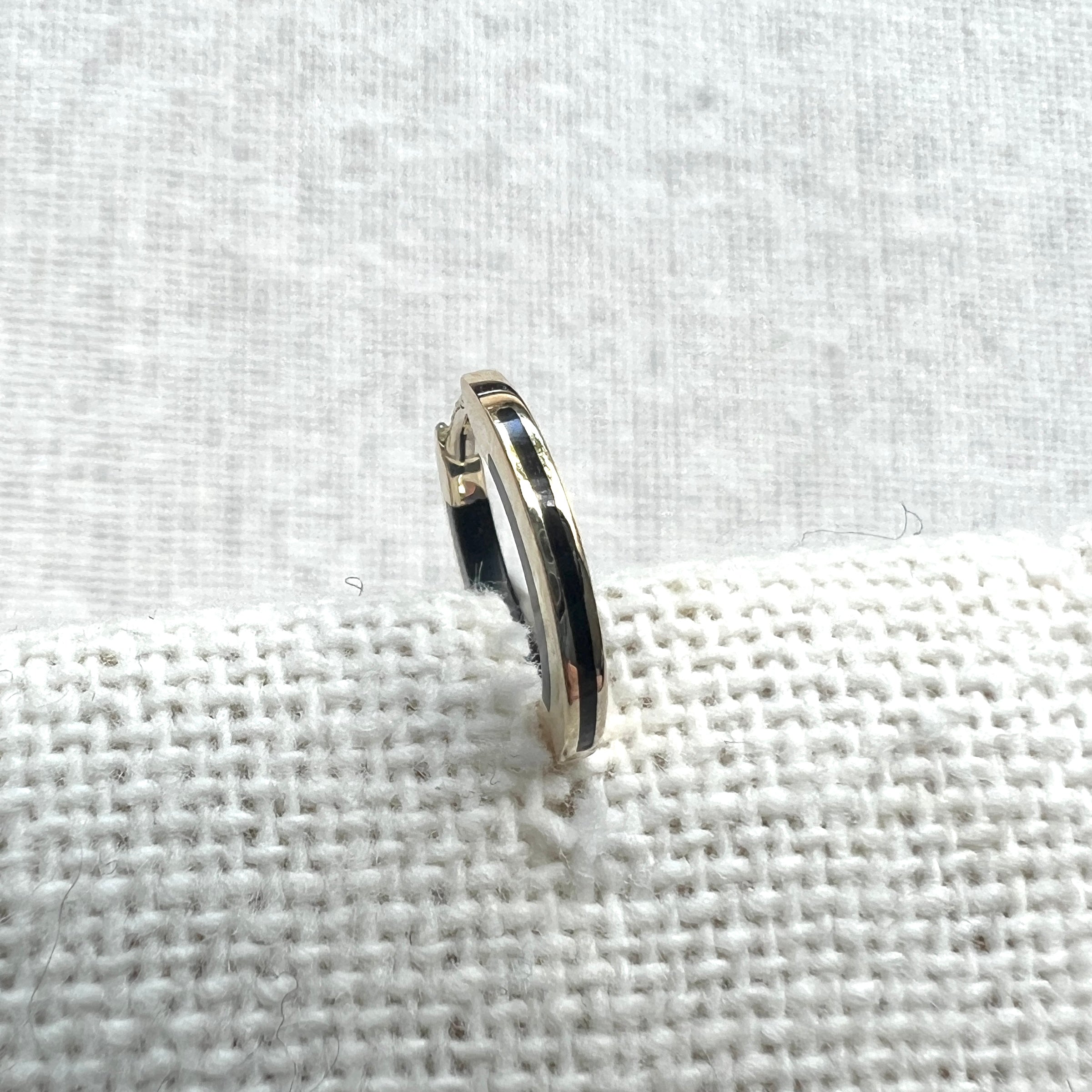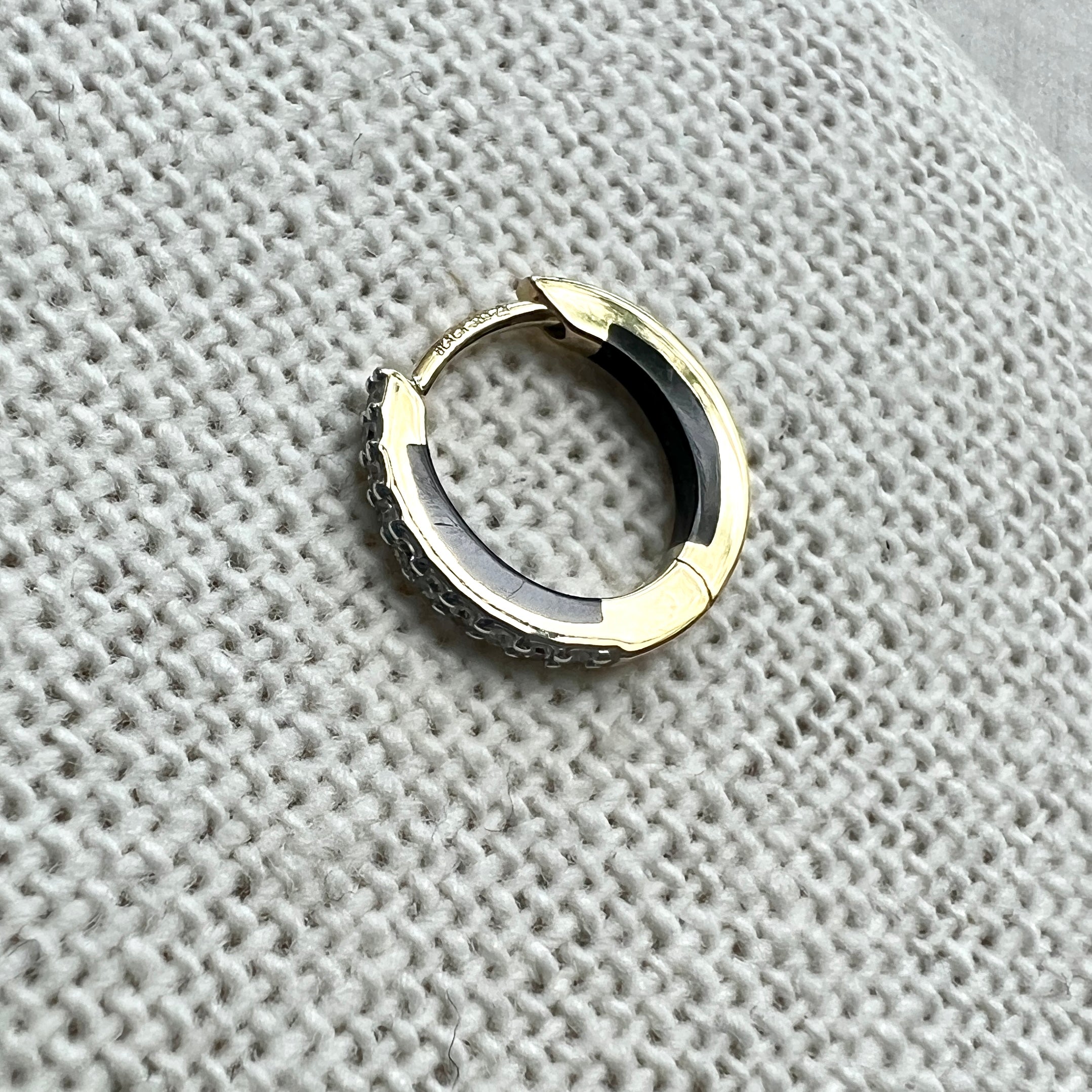 The Lost Highway Huggie has a classic yet modern expression. The different colors and diamond settings makes them perfect for stacking and to mix and match. Besides the discrete black ceramic detail on the inside, a thin black ceramic line is found on the back as a reference to the movie Lost Highway.