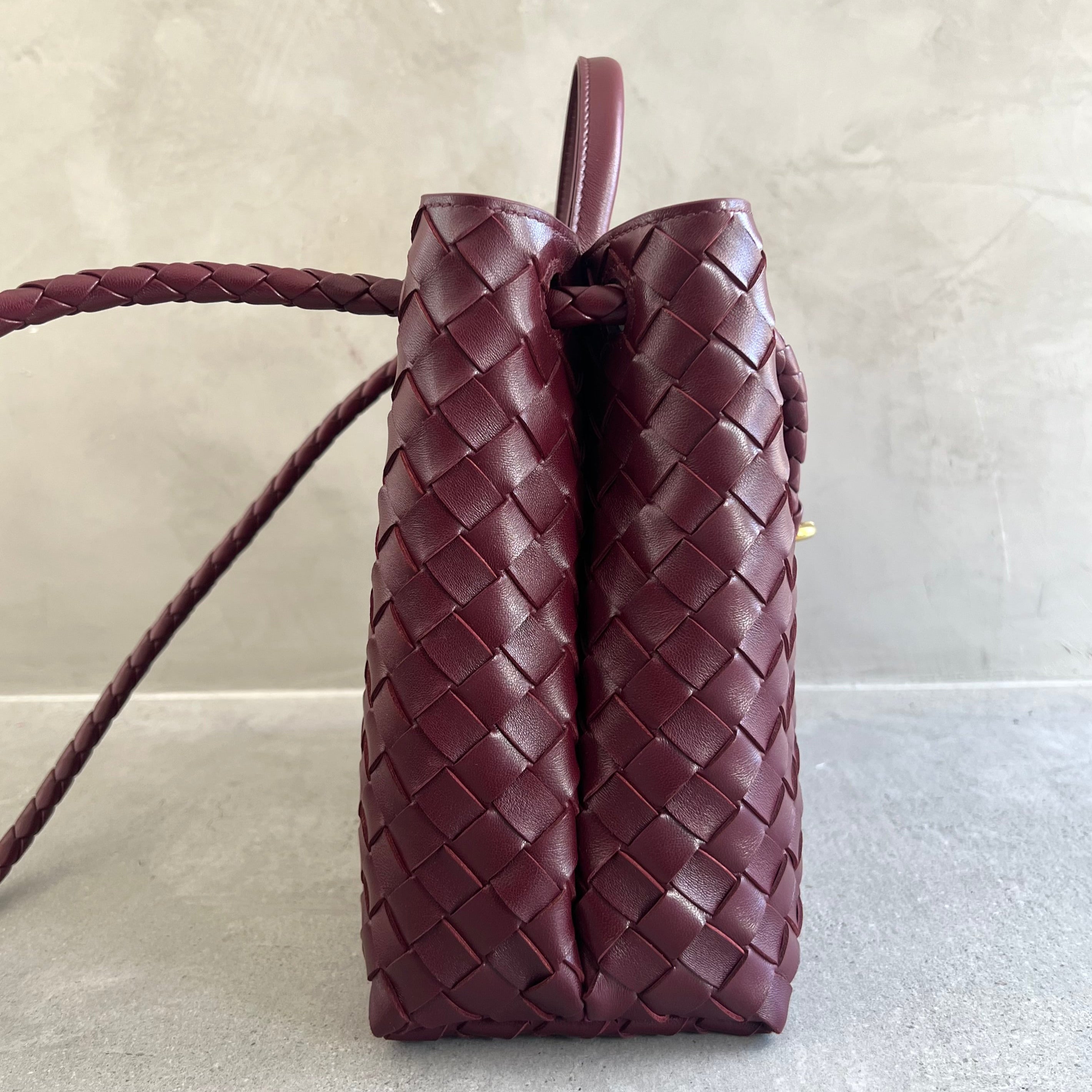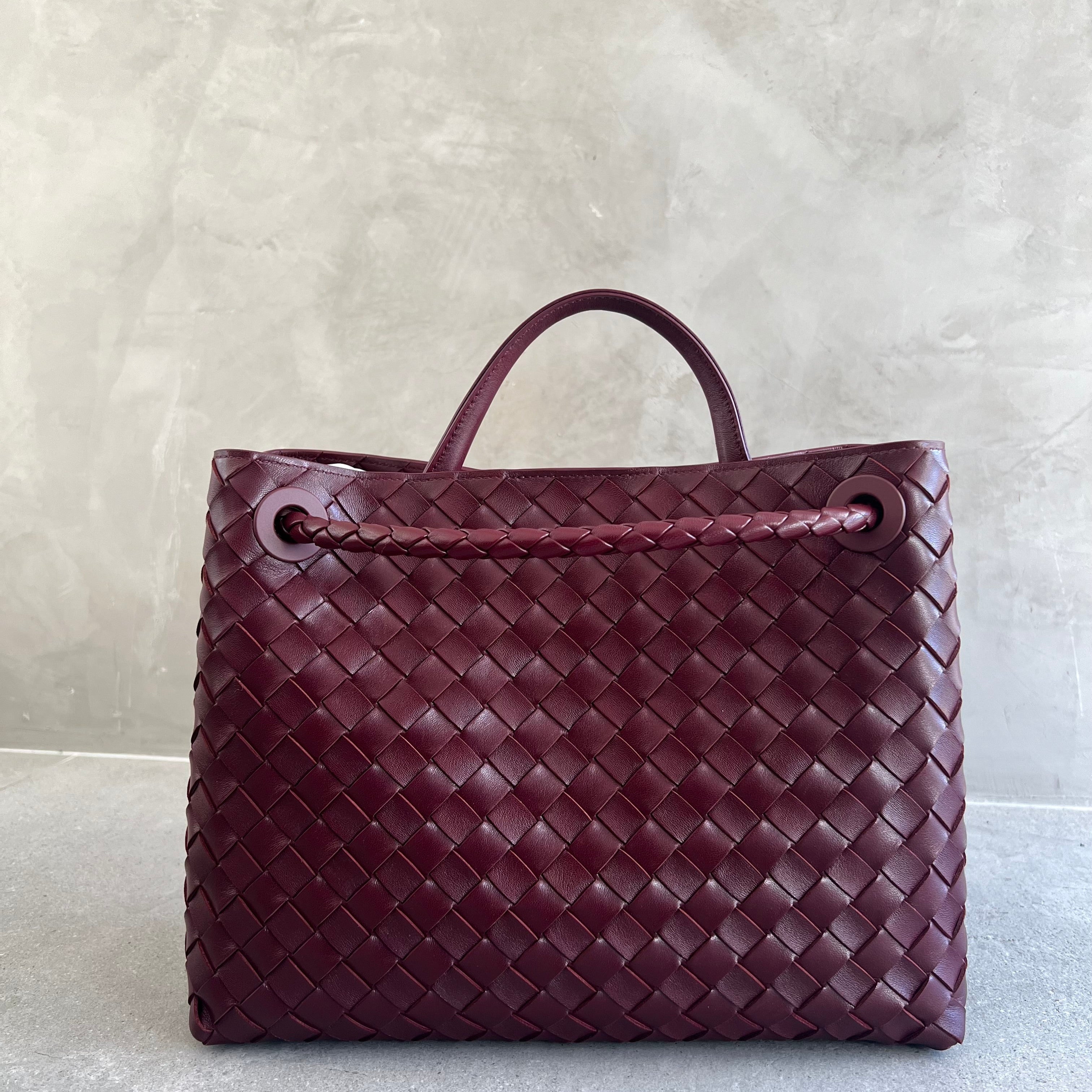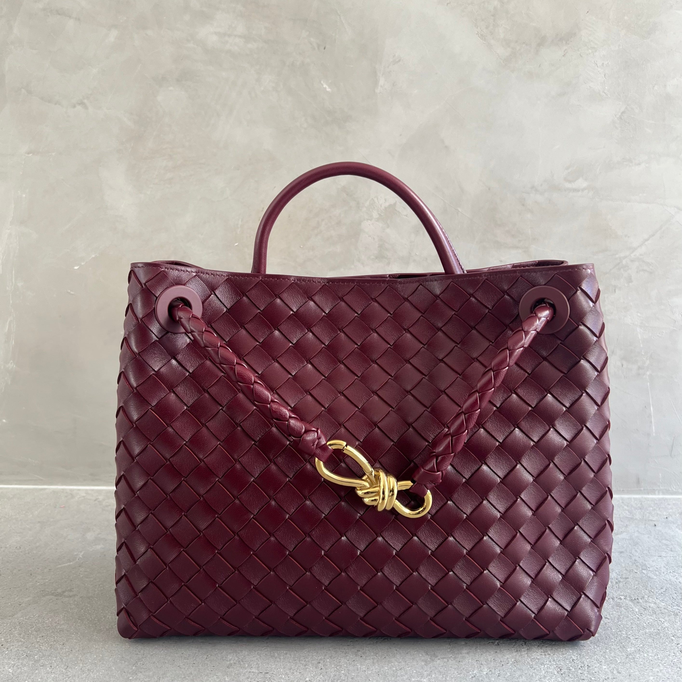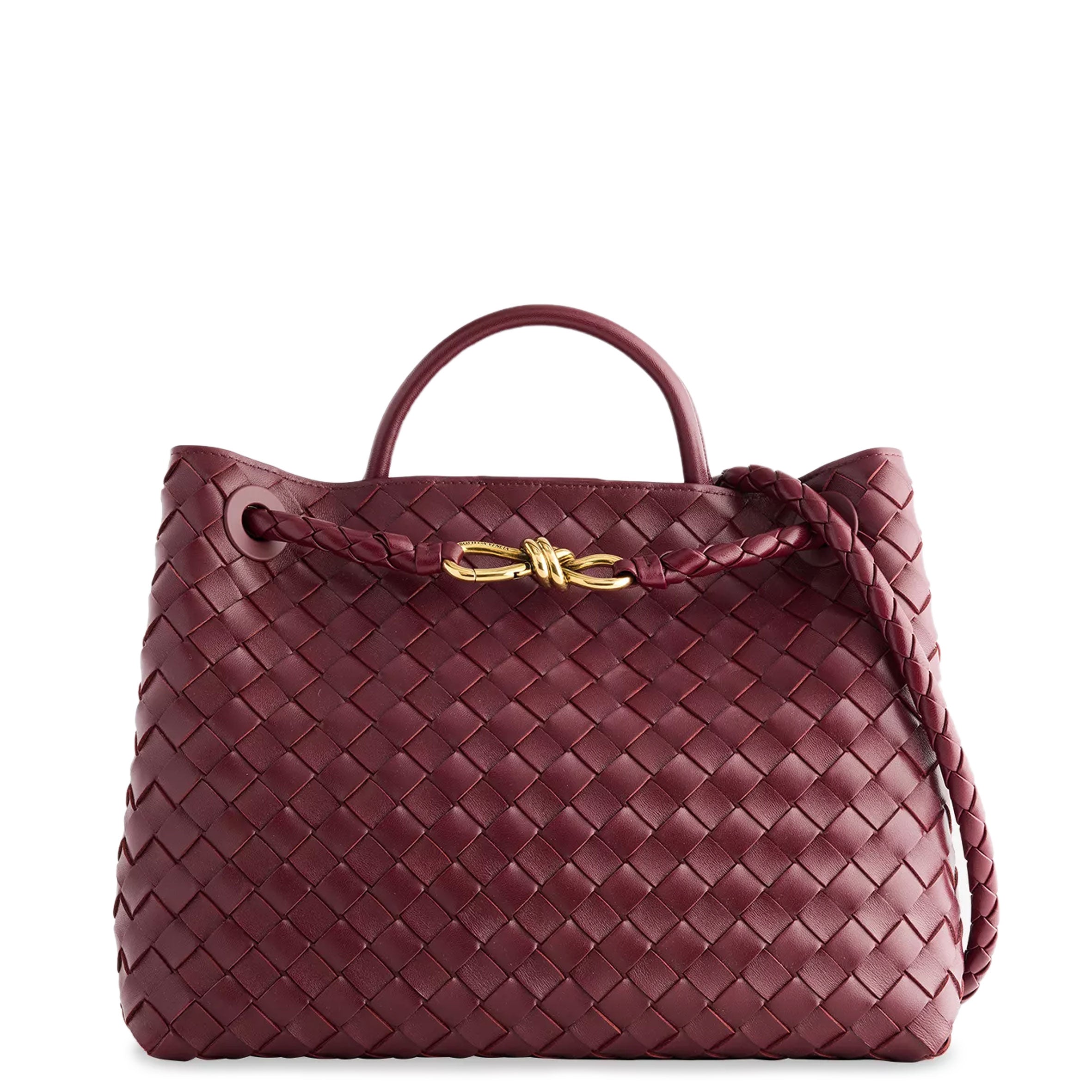 Andiamo is a new expression of the signature Intrecciato weave realised by the expert craftsmanship of artisans in the house’s atelier. Its name, Andiamo, “Let’s go” in Italian, embodies the spirit of the bag, a tribute to going places and the concept of craft in motion. The bag features a timeless Intrecciato silhouette woven by hand. A metal knot adorns and fastens its sliding braided straps, allowing it to be adjusted over the shoulder or across the body, giving the bag a soft tapered volume.