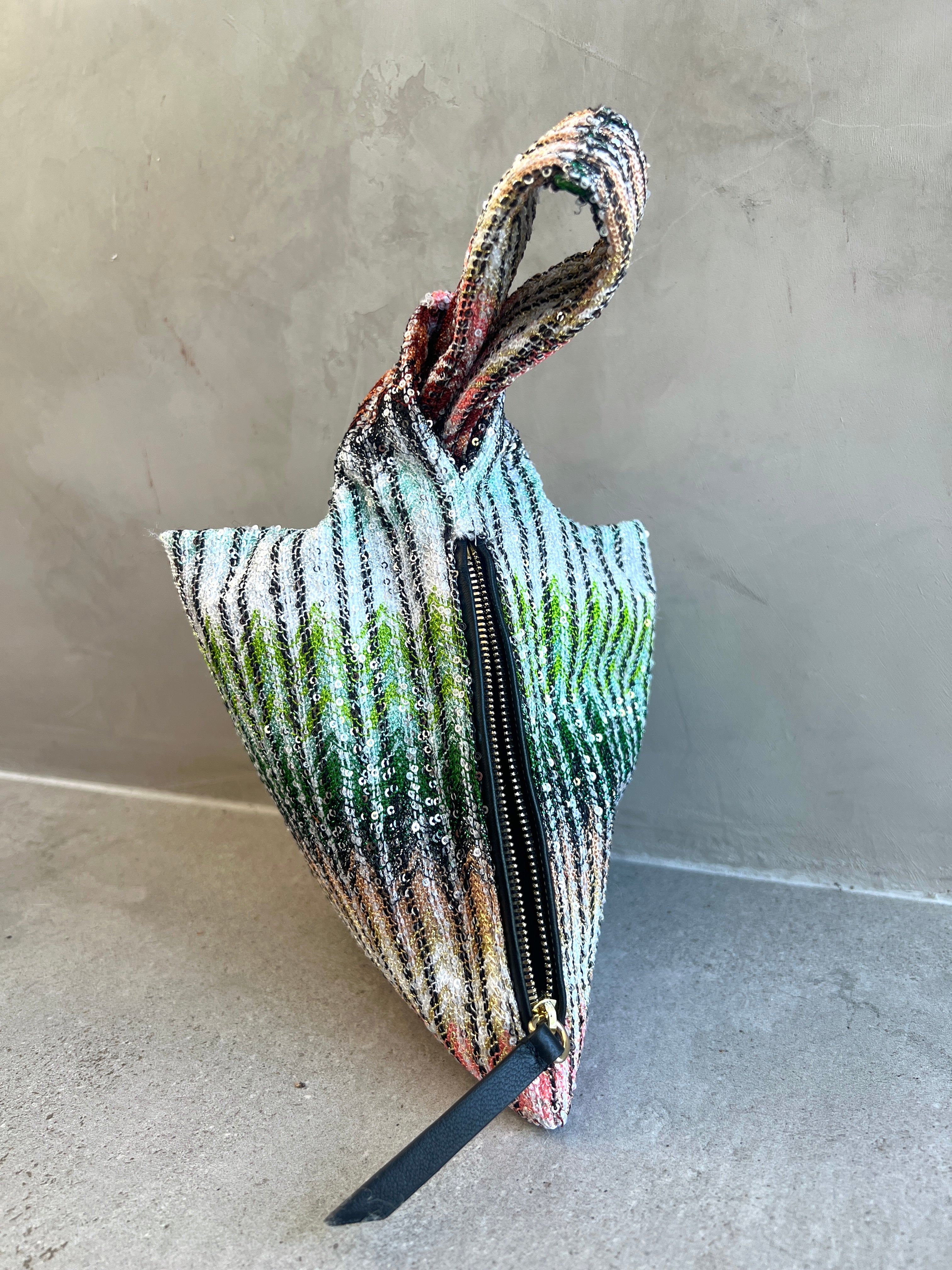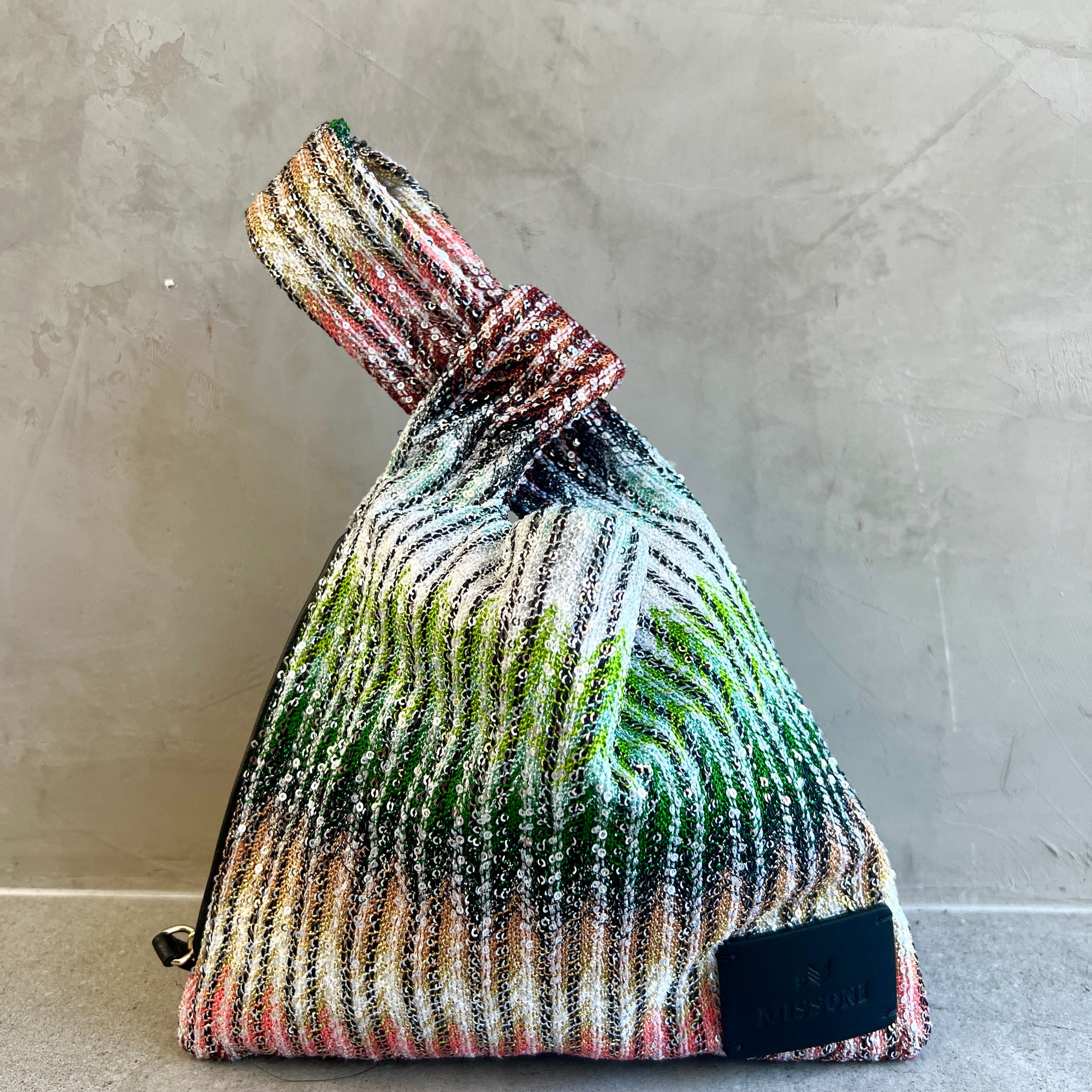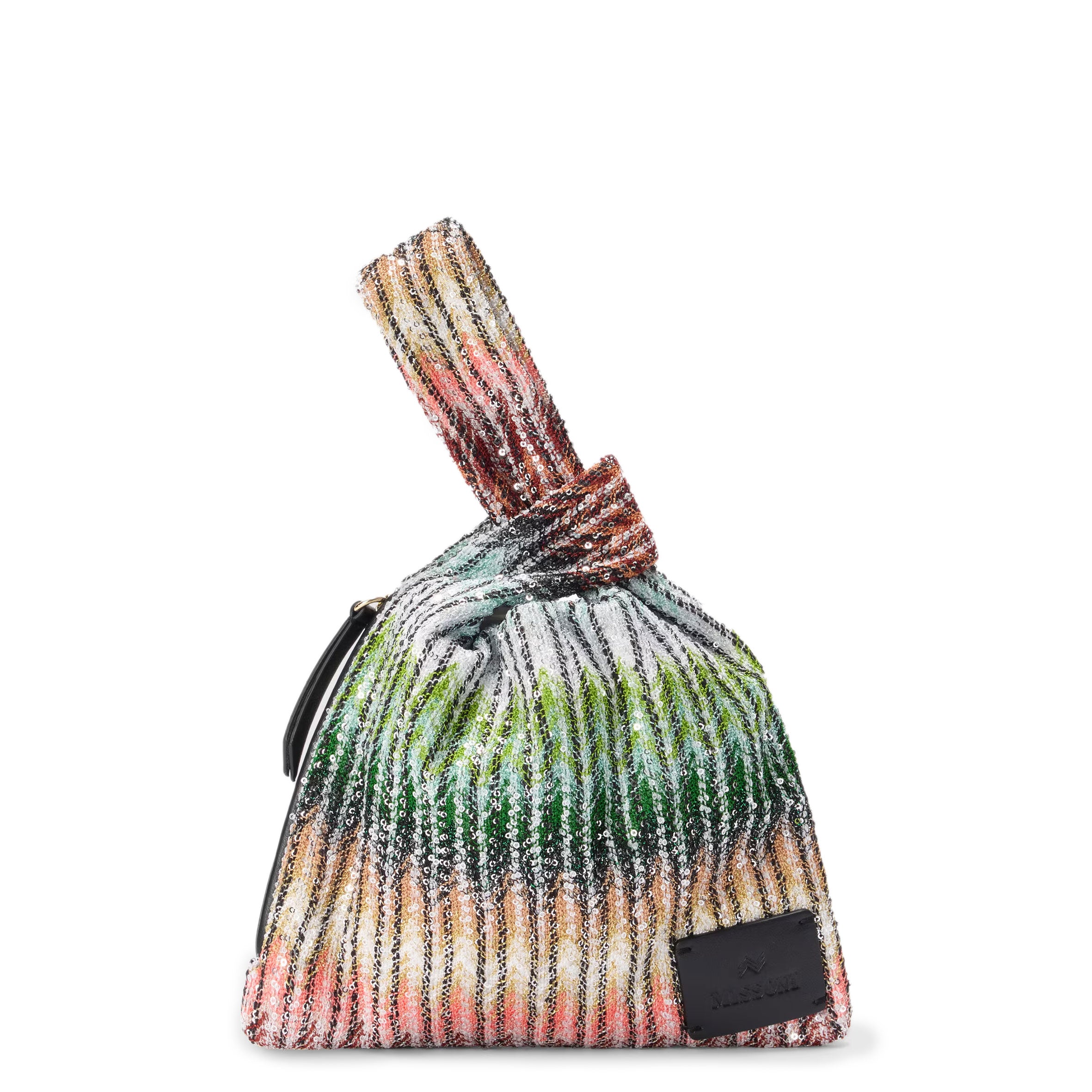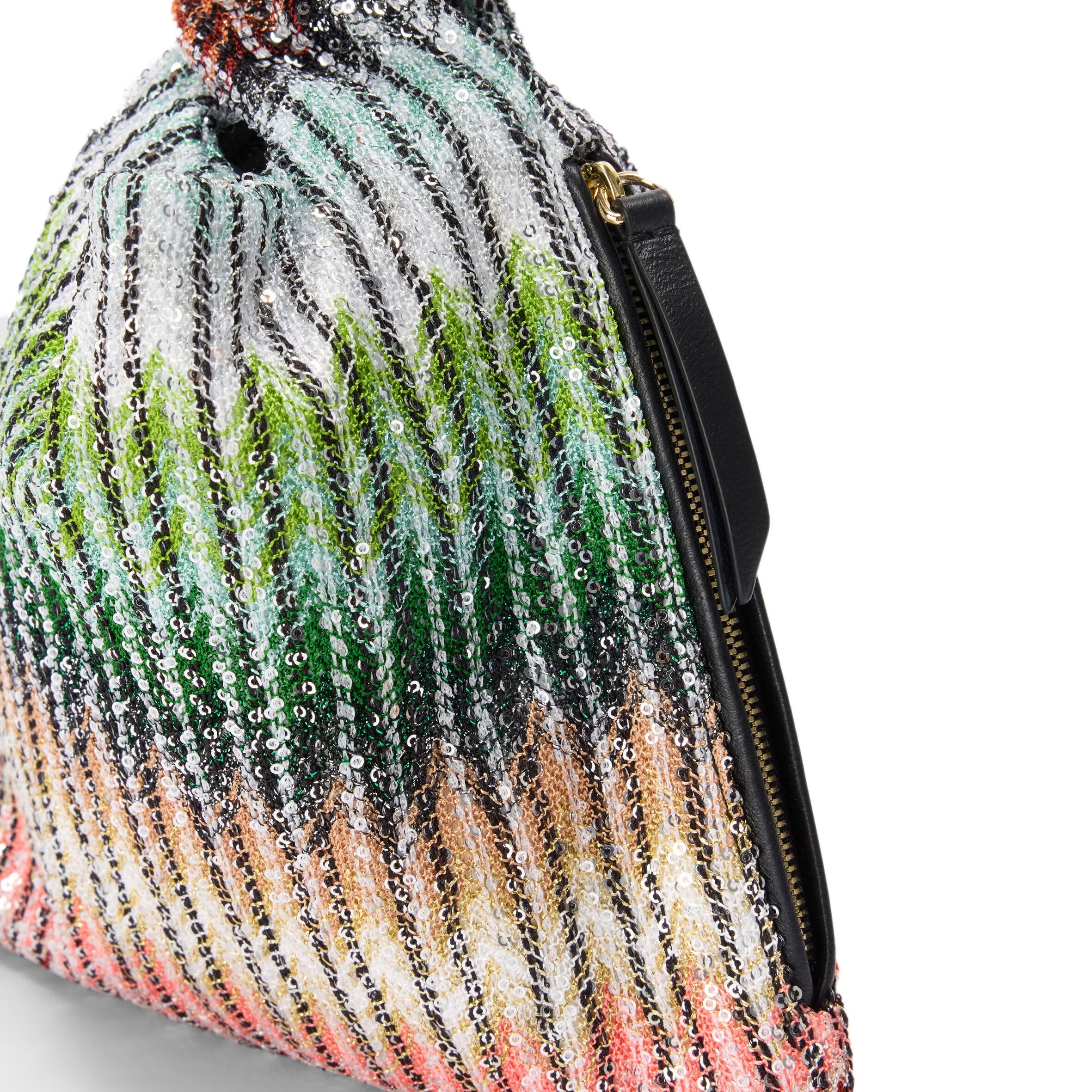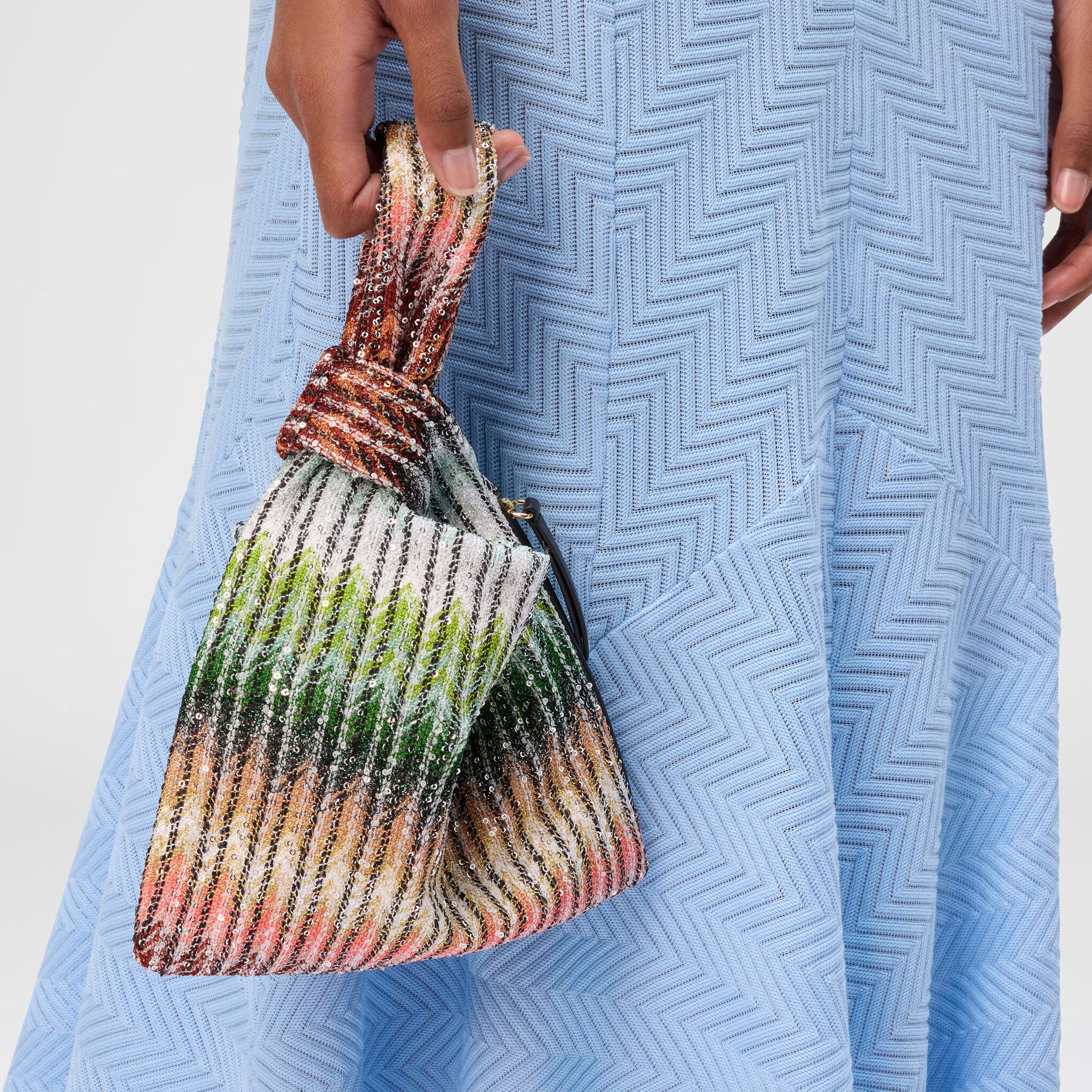 Knot bag embellished in sequin fabric with Missoni's iconic zigzag motif.