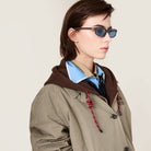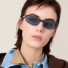Miu Regard sunglasses are reinterpreted in a new sophisticated, classic version. The frame features narrow, rectangular lenses and slim rims that enhance its extreme lightness. The temples are embellished with the refined touch of the Miu Miu vertical logo.