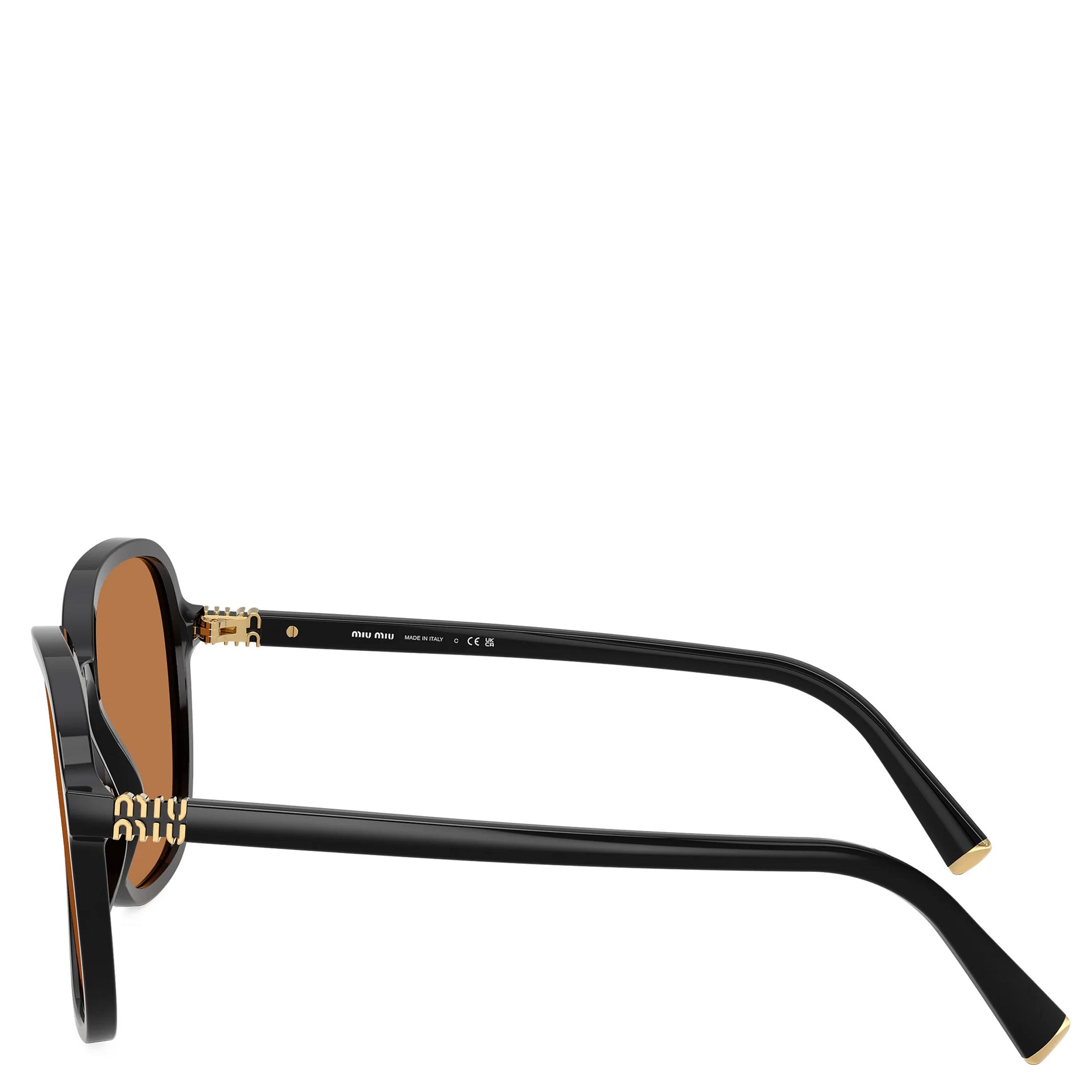 Miu Miu 0MUB01S Regard Oversized Sunglasses, Black/Amber
