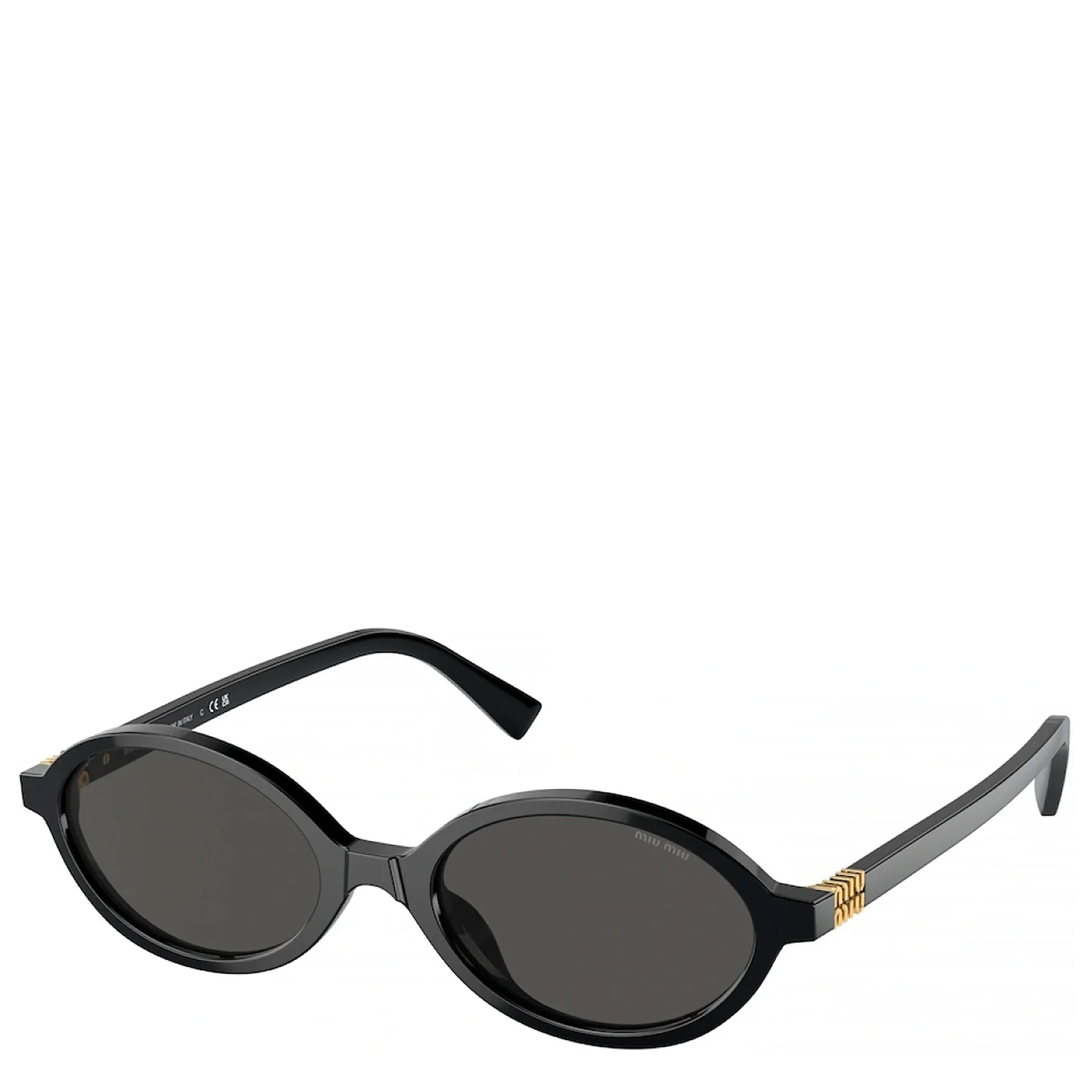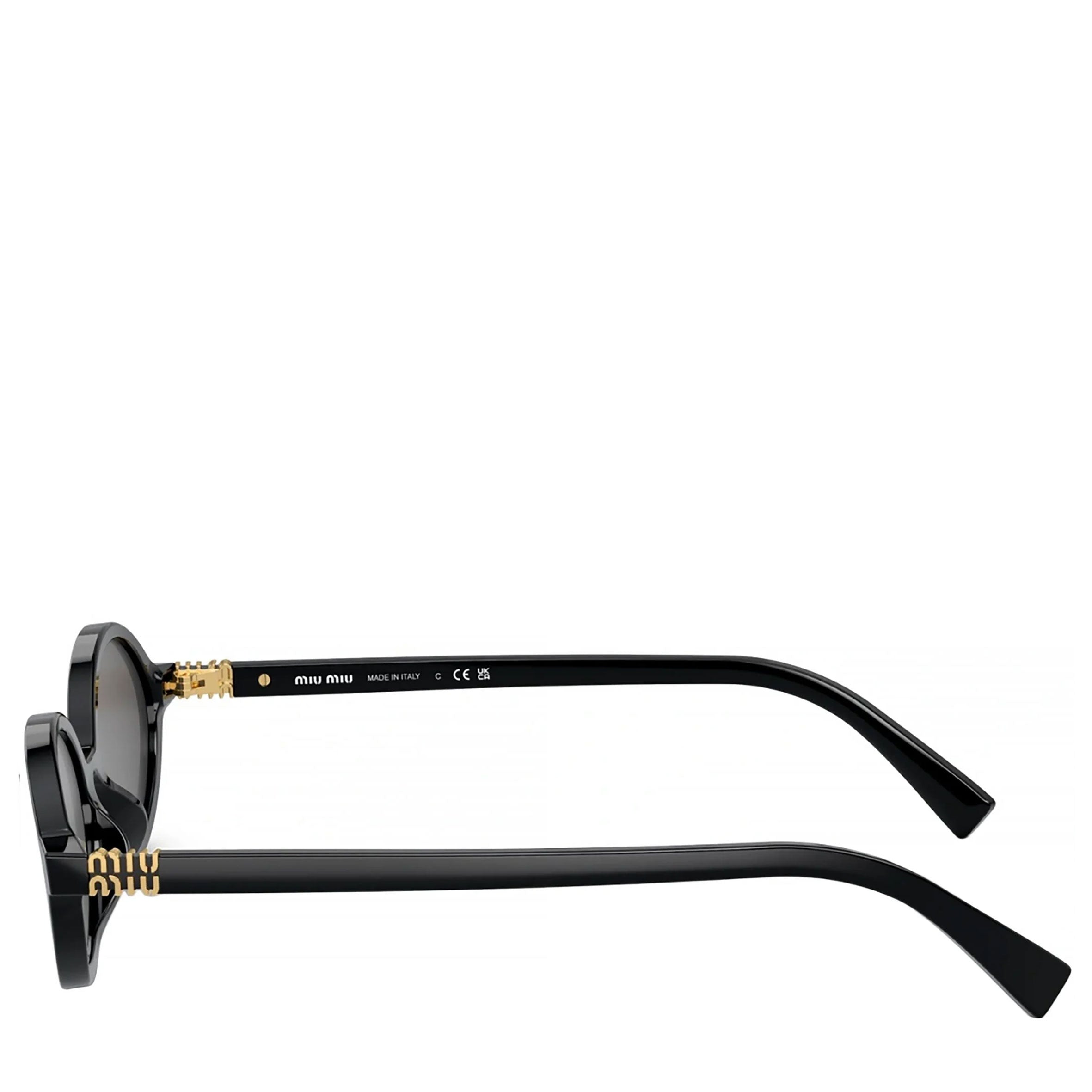 Miu Miu Regard sunglasses collection model MU 04ZS black rim oval acetate frame with brown lenses.