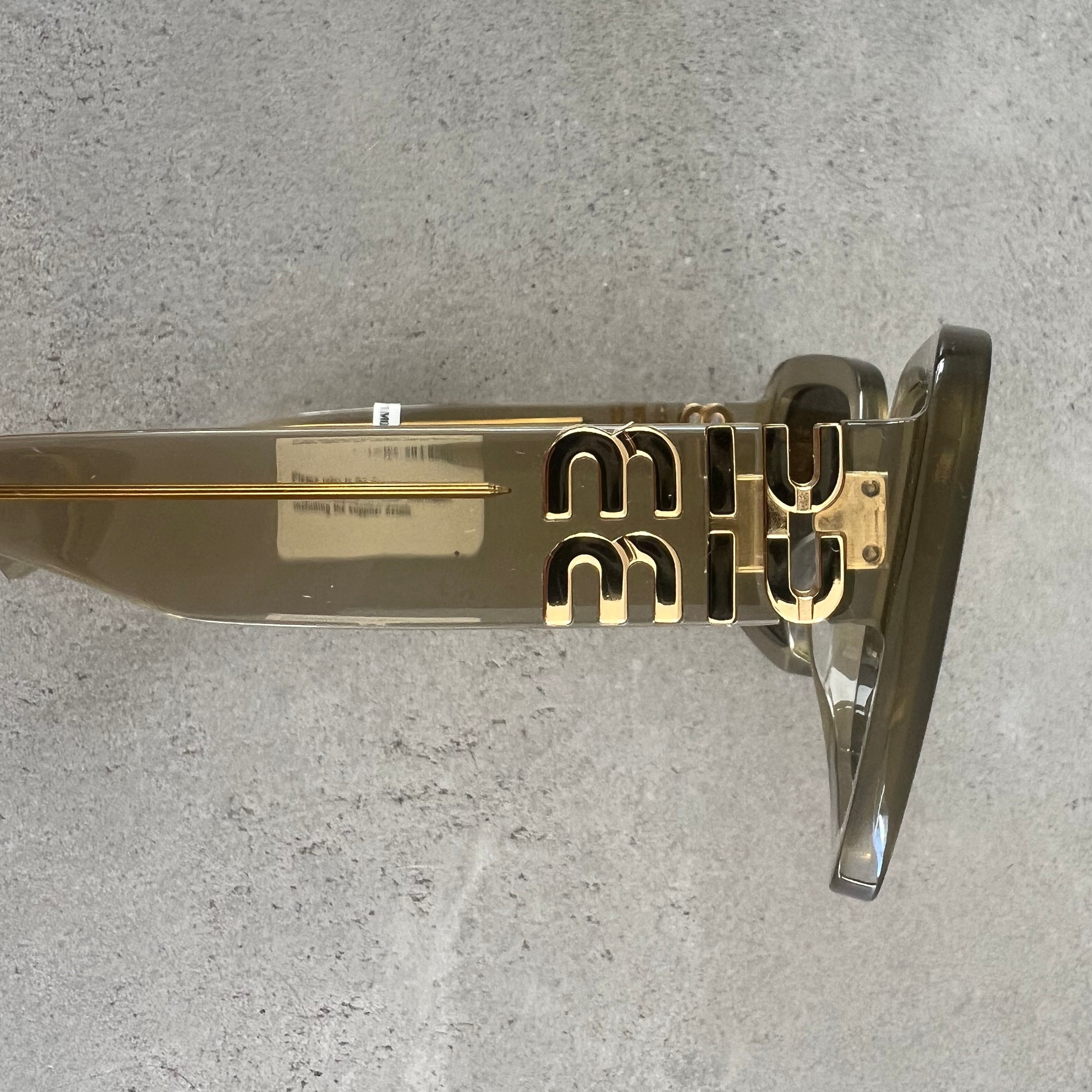 Miu Miu sunglasses model MU 10YS color code 11M01T featuring ivy opal full rim acetate frame and CR-39 dark brown lenses.