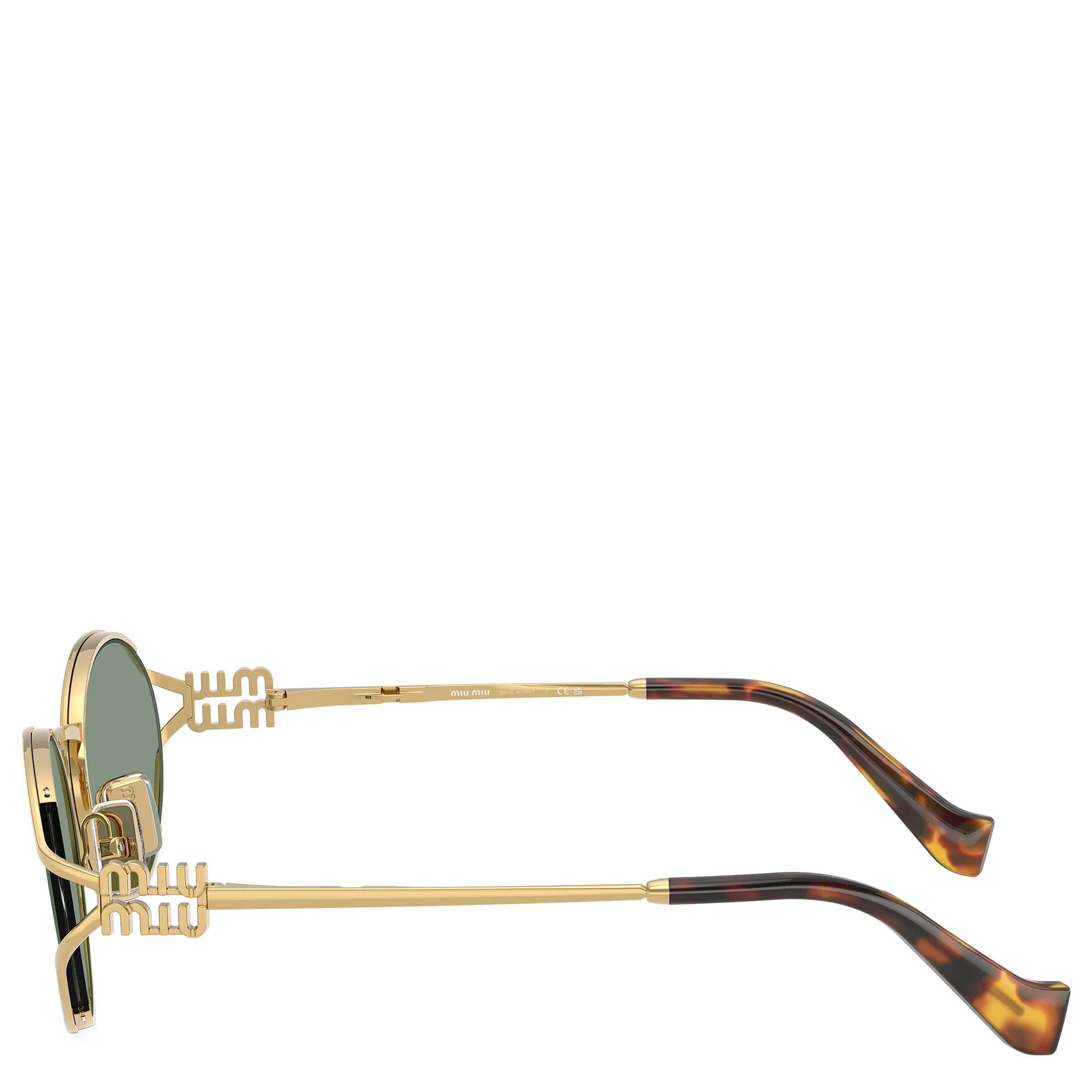 Miu Miu MU52YS Logo Oval Metal Sunglasses, Gold/Green Mirror