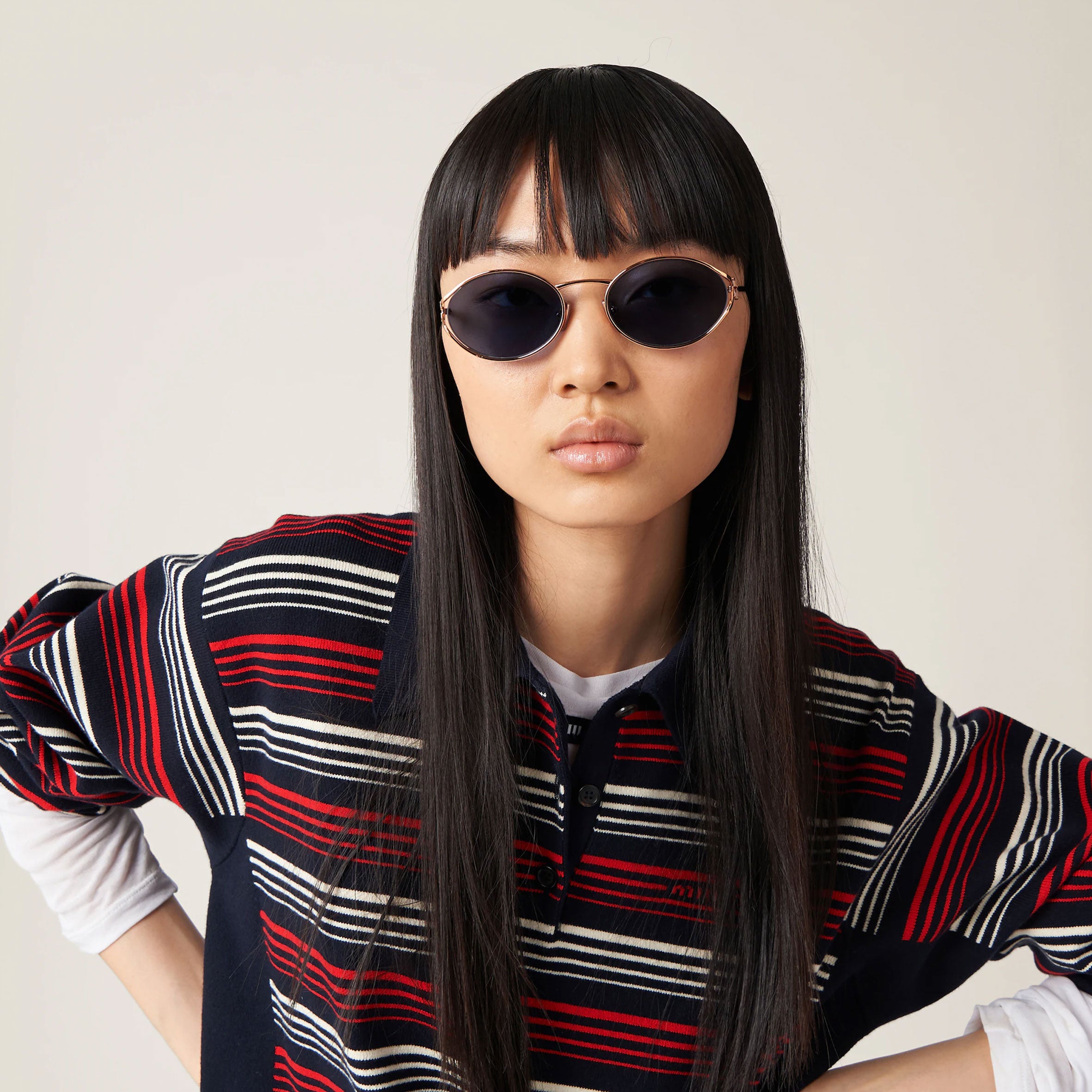 Miu Miu MU52YS Logo Oval Metal Sunglasses, Rose Gold/Blue