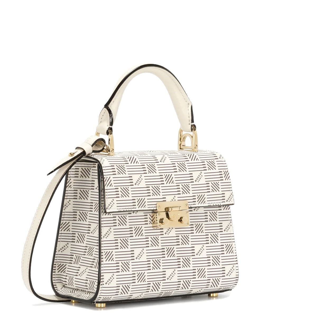 The signature gold handle hardware features a built-in hook for the adjustable and removable crossbody leather strap.