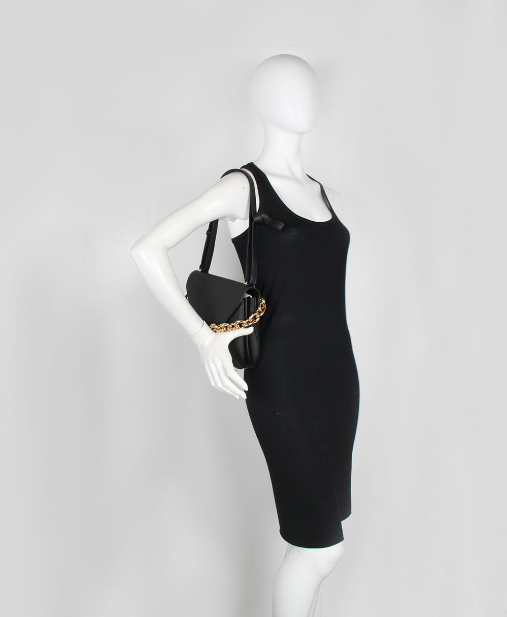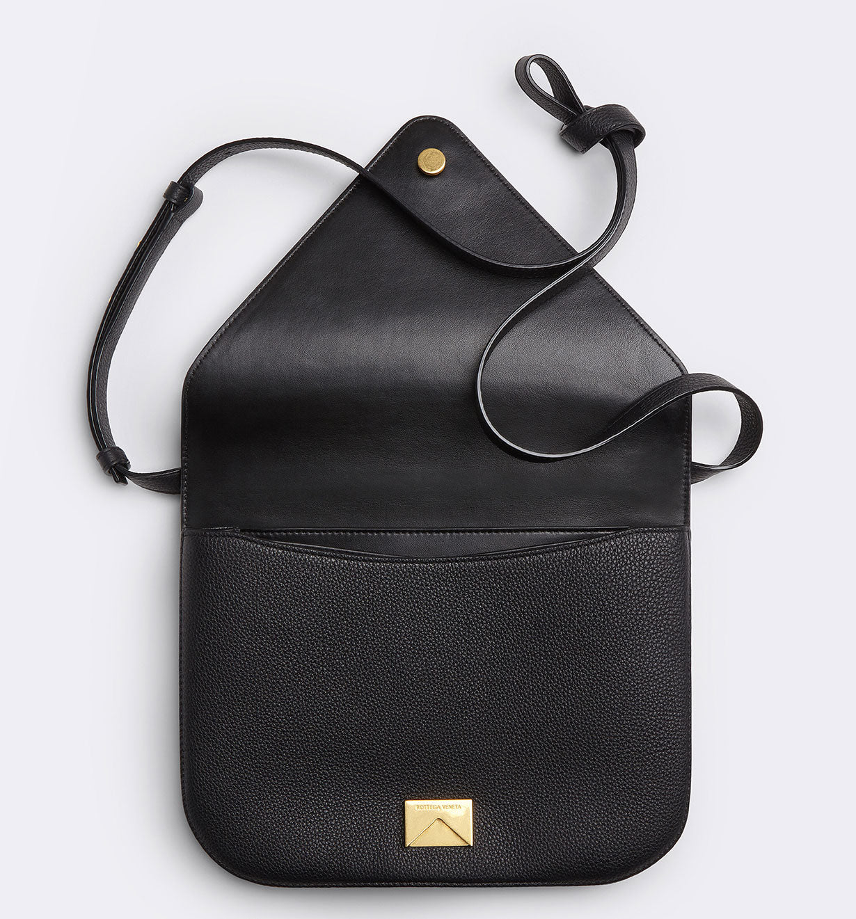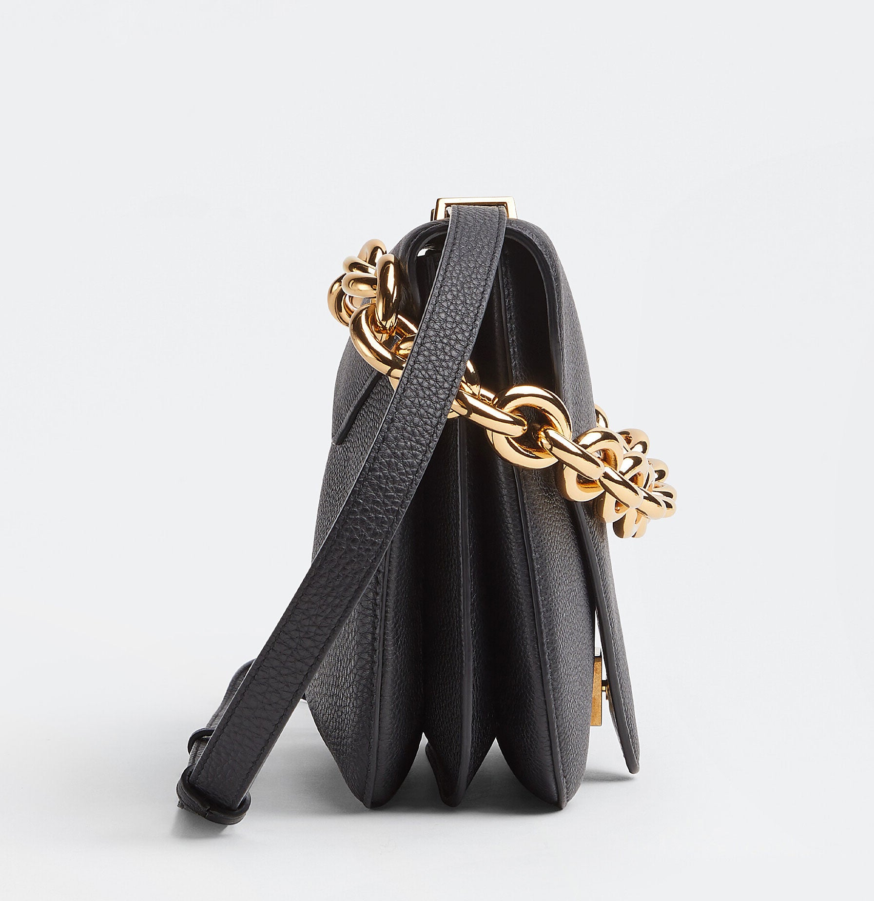 Bottega Veneta uses "V" shaped design details to reference its name in the Mount bag. Crafted from Grained leather, the bag features a triangular top flap and chunky gold chain-link handle which can be worn with either the leather shoulder strap or the golden chain. Features and internal zip pocket. metal closure and detachable leather shoulder strap.