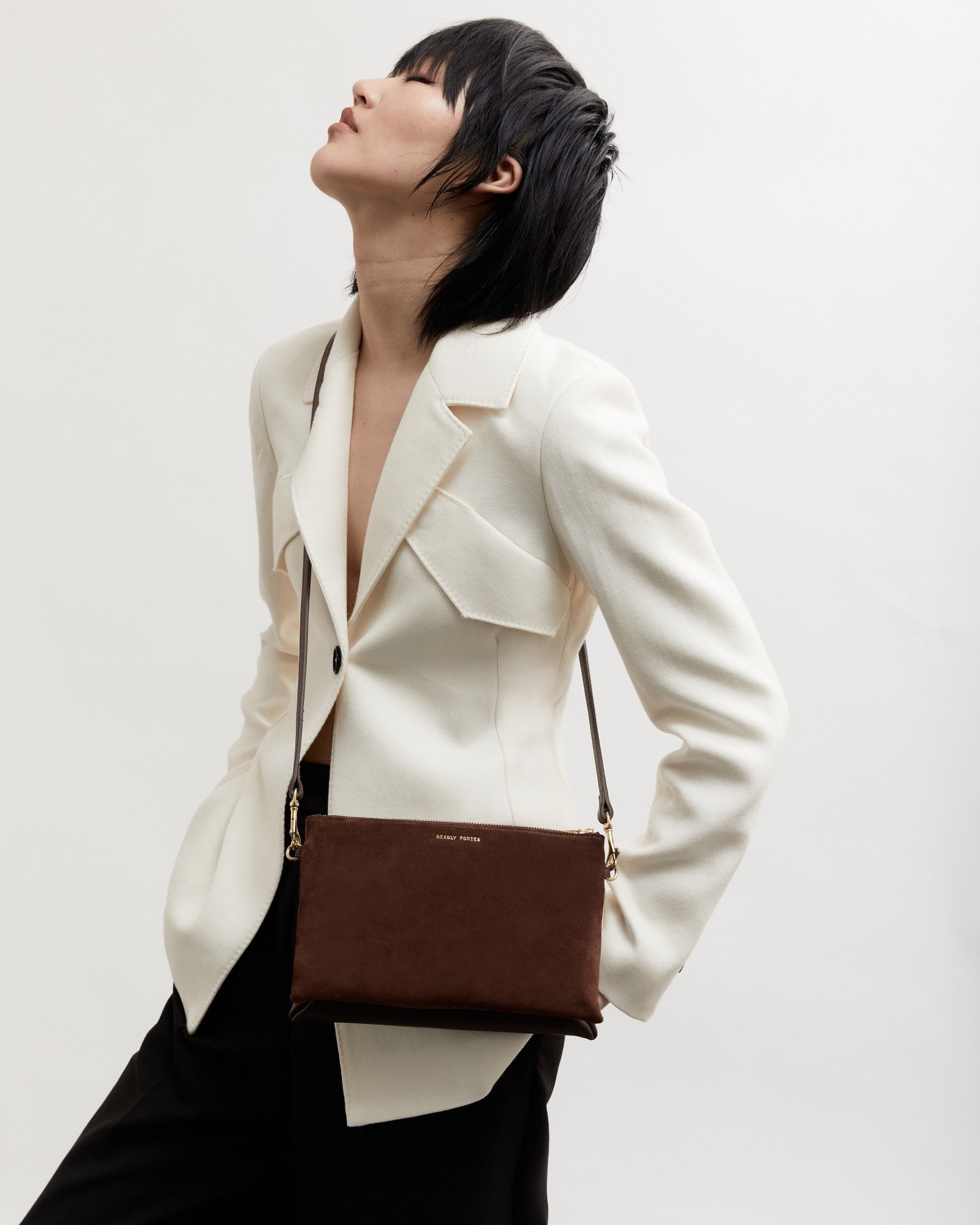 This classic double-paneled clutch won’t have you thinking twice. Lightweight and compact, yet spacious enough for all your essentials, Mr Siamese transitions perfectly from day to night. Accompanied by a detachable, adjustable leather strap for casual and evening wear. Now available with a zip pocket on the reverse for easy access to your daily essentials. Exterior constructed from pebbled bovine leather. Interior made from 100% black cotton lining to reduce markings. Finished with polished brass hardware.
