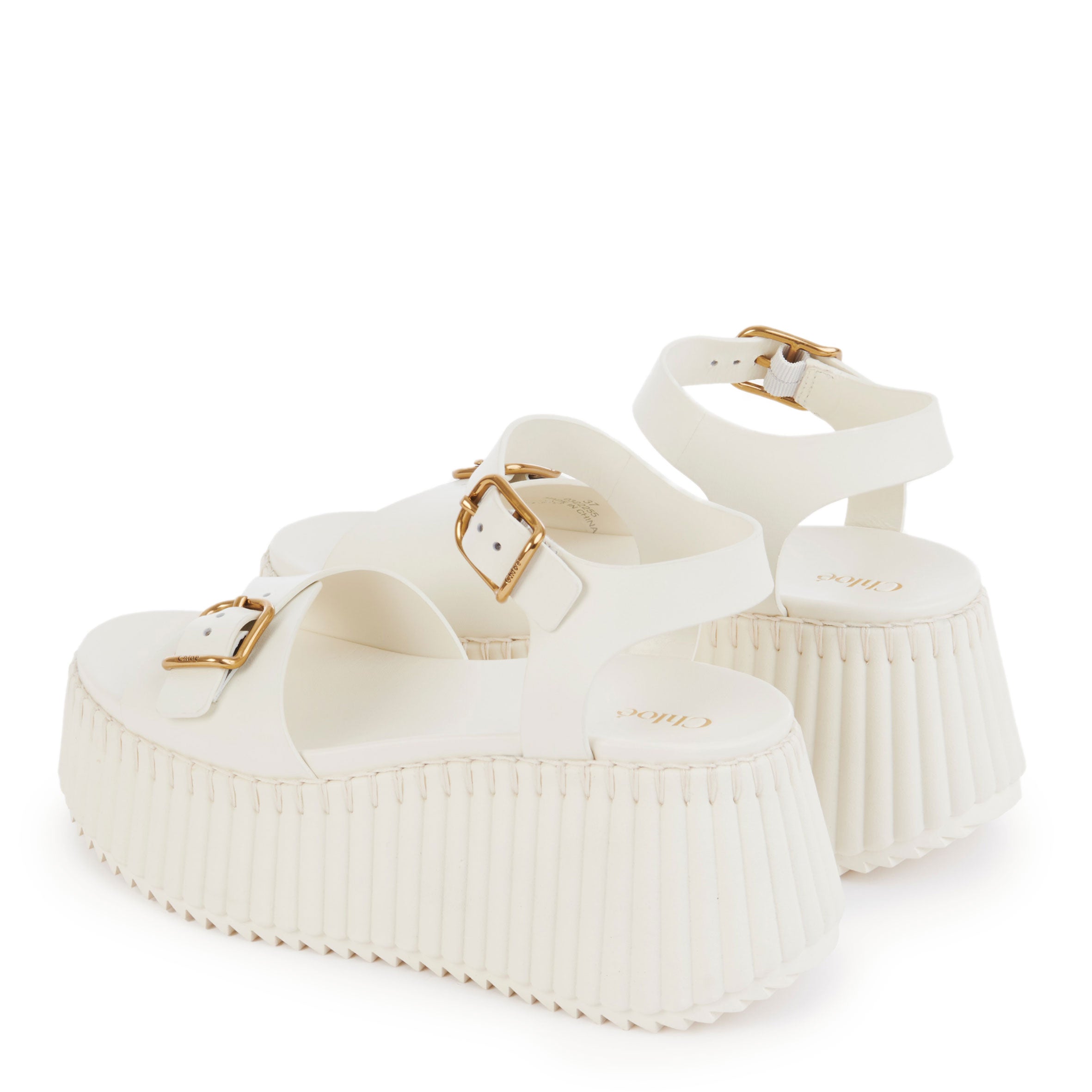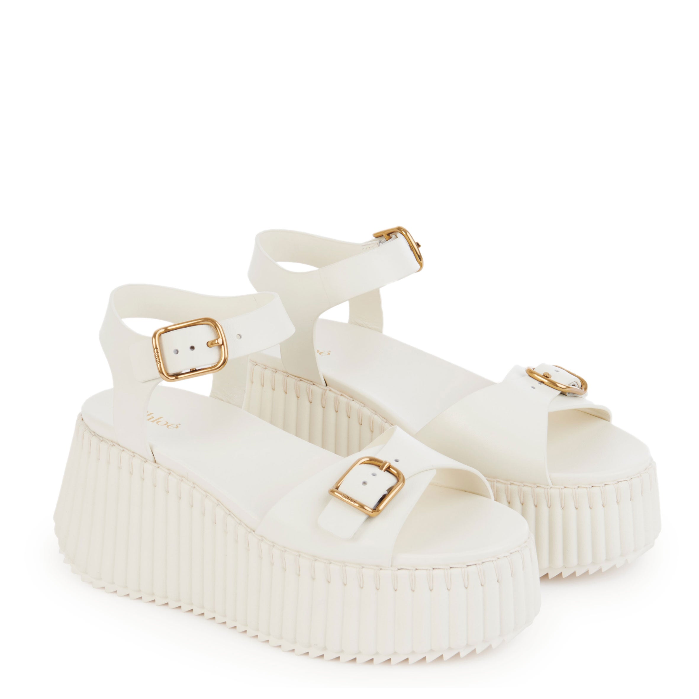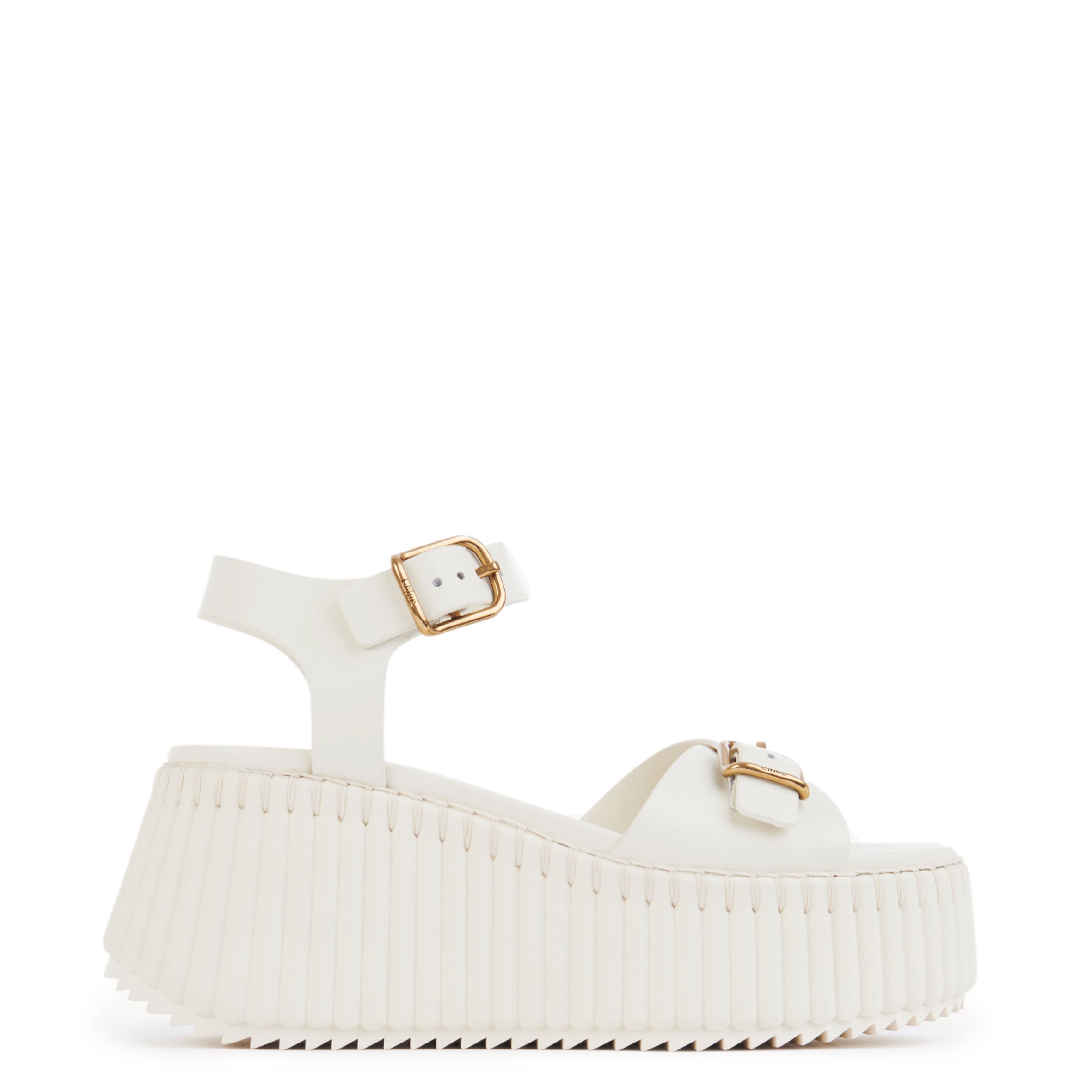 Set on a chunky ridged sole, the upper features interwoven straps combined with tonal stitching. These ultra-comfortable wedge platform sandals are finished with a Chloé-engraved gold-tone buckle for an adjustable fit.