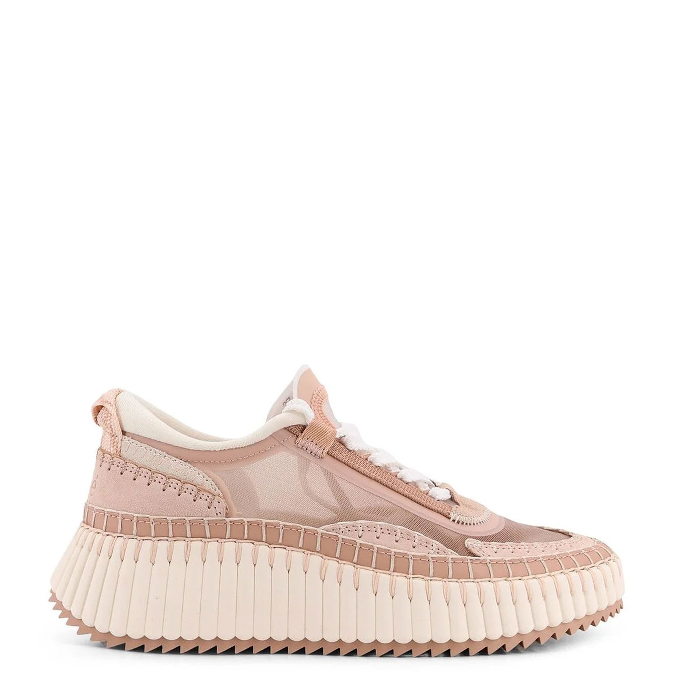 The bold, lightweight structure features a hand-stitched mesh upper, showcasing authentic Chloé craftsmanship. Set on a contrasting, ridged sole, this women's sneaker is ultra-comfortable with a cool, sporty aesthetic. The Chloé logo at the back adds a signature touch..