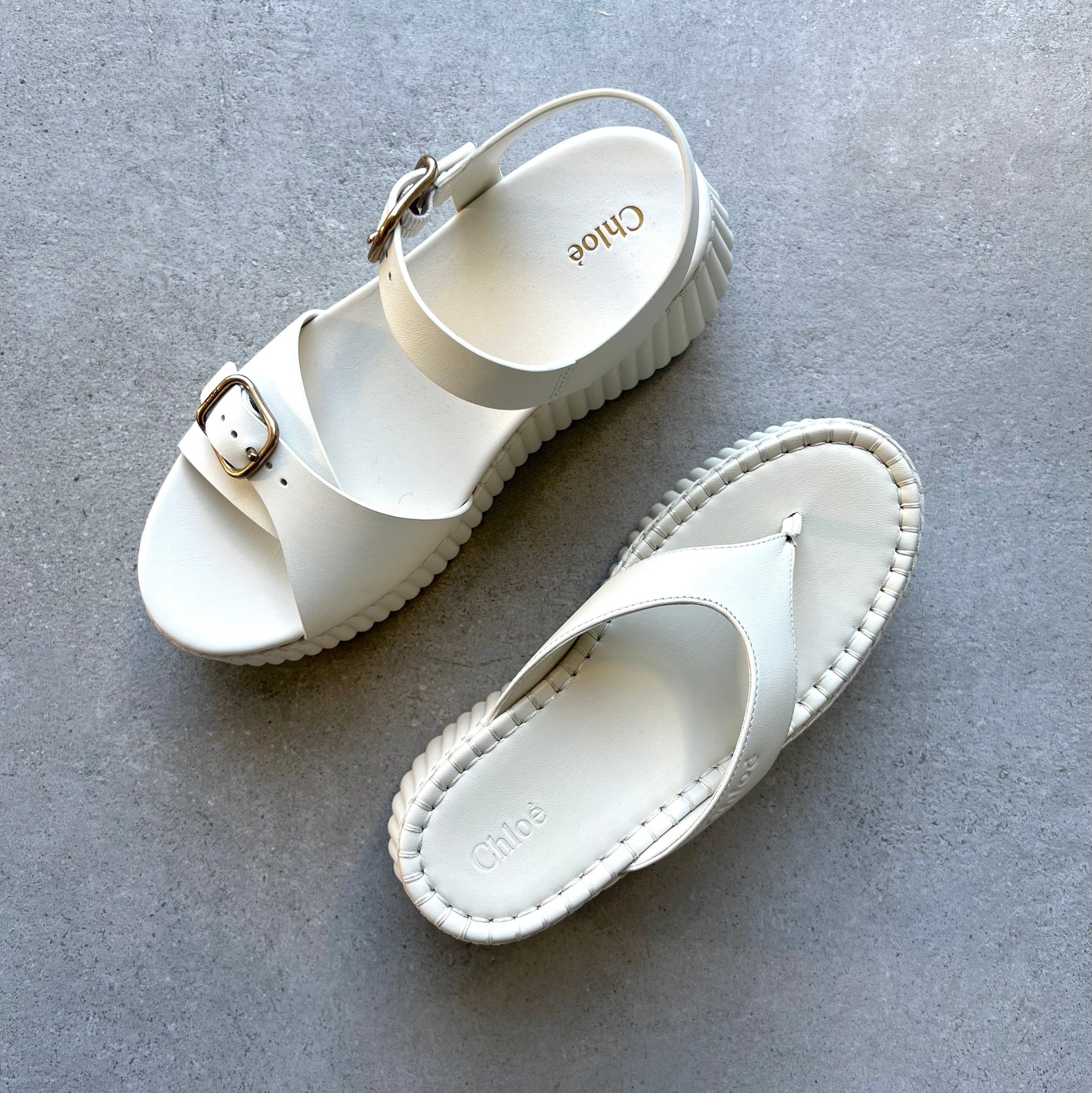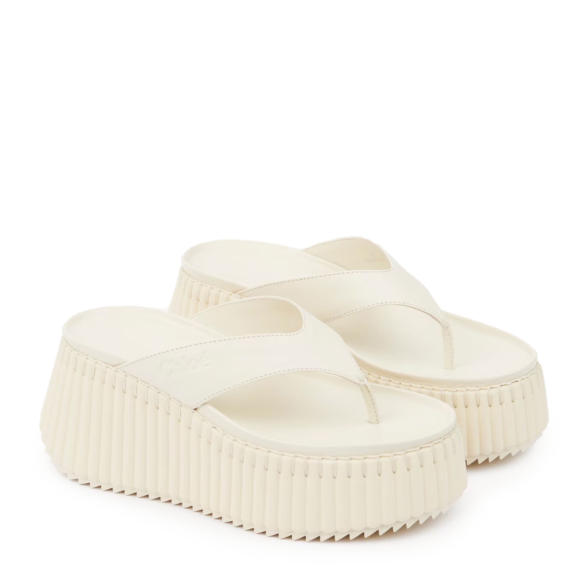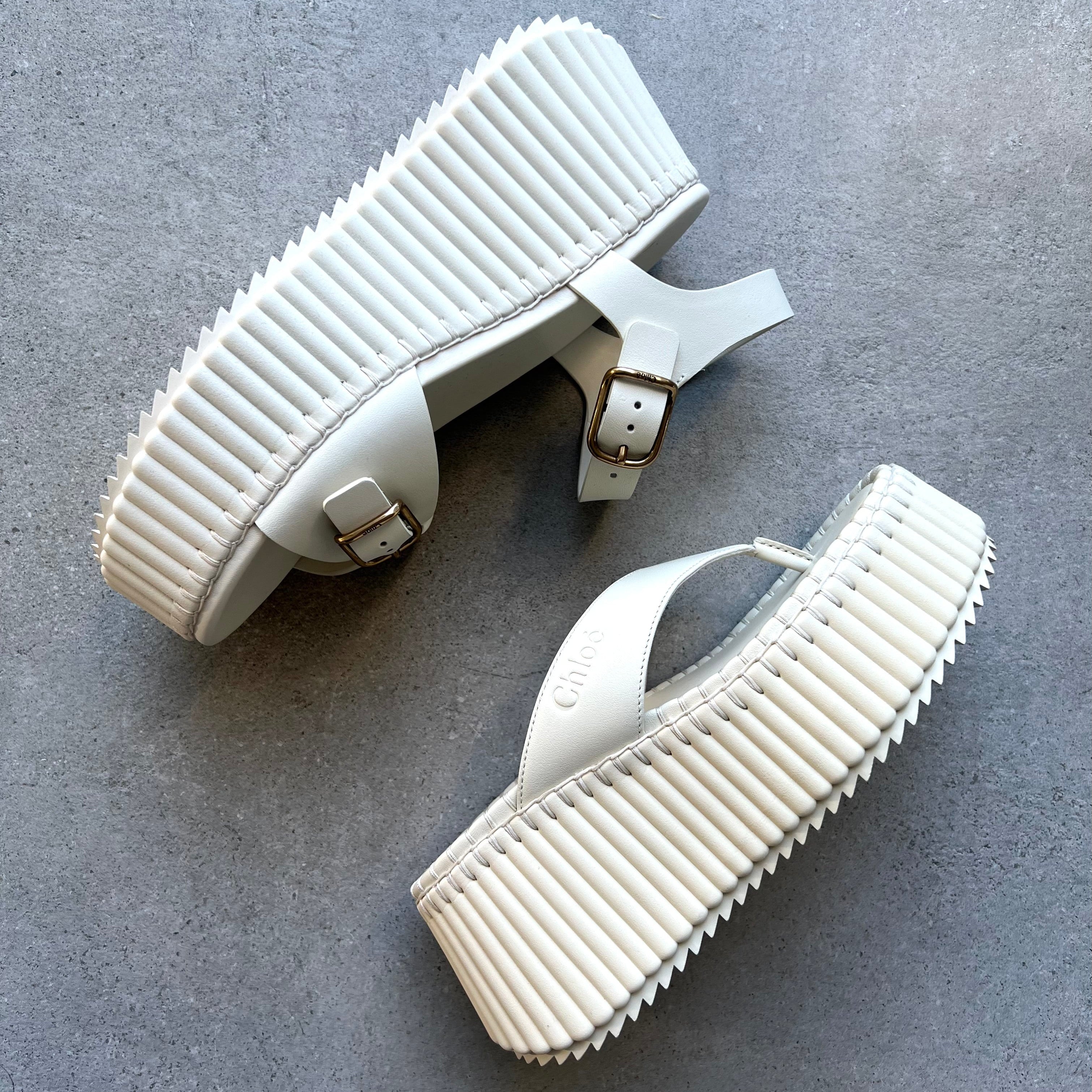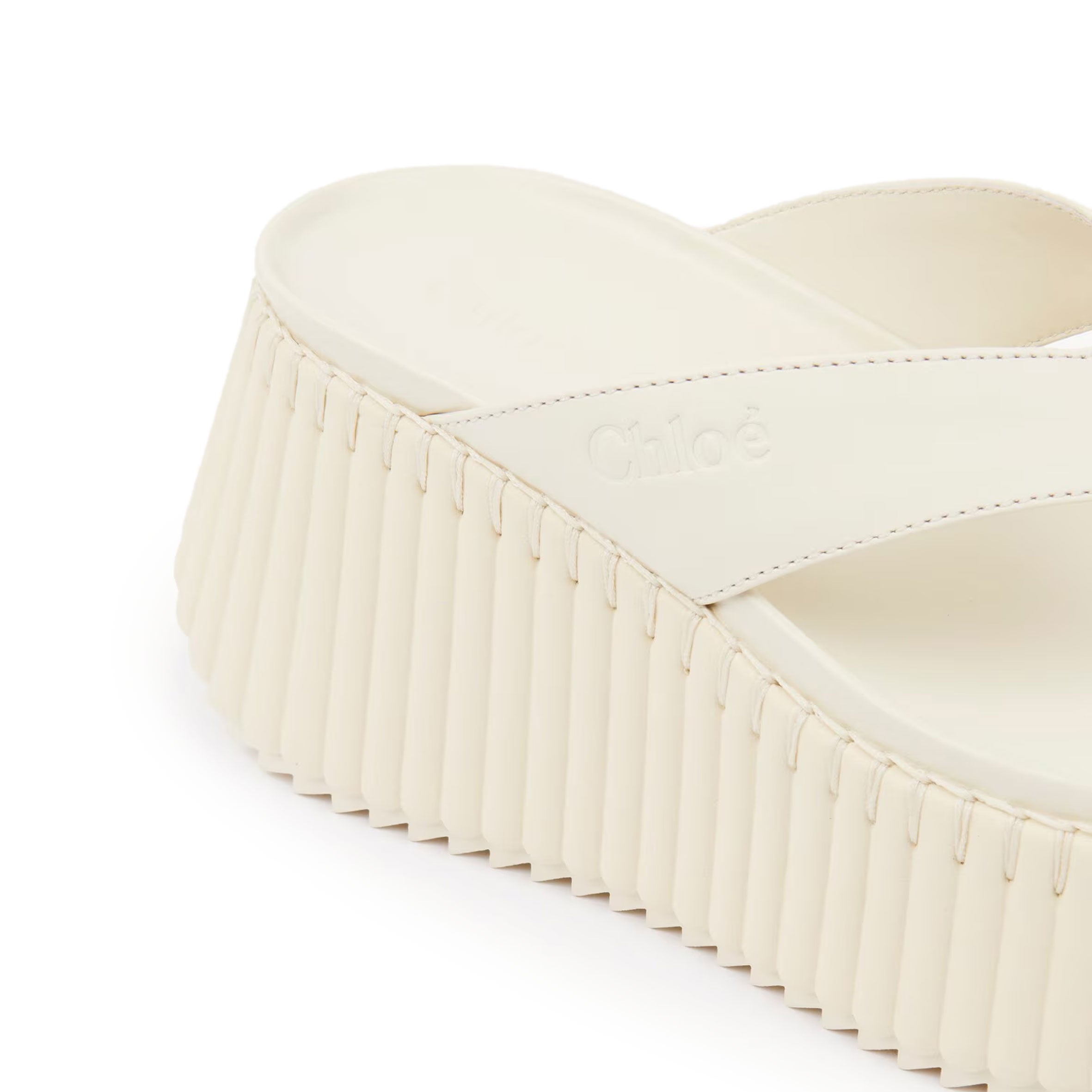Crafted from calfskin, these Nama wedge slides feature a thong front debossed with the Chloé logo. They are set on an iconic, lightweight and ultra-comfortable recycled platform, finished with immaculate tonal blanket stitching which takes 4.5 hours to complete by hand.