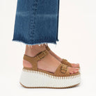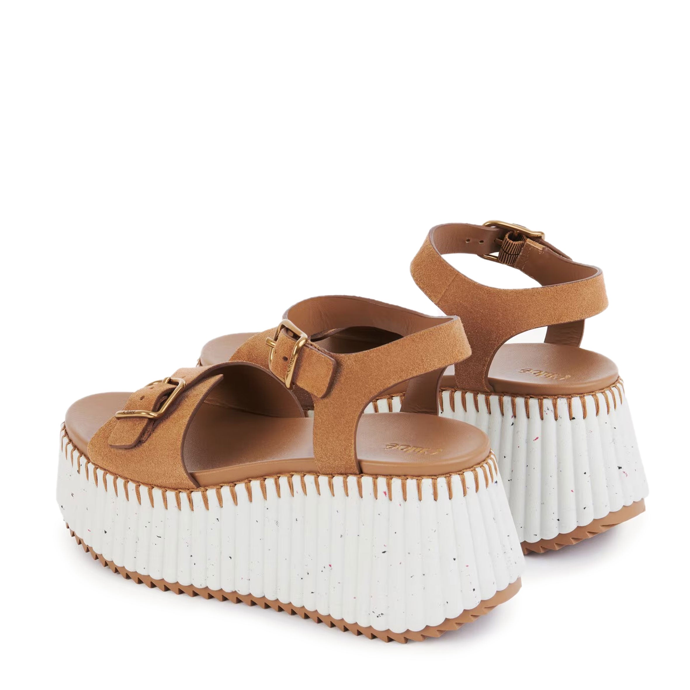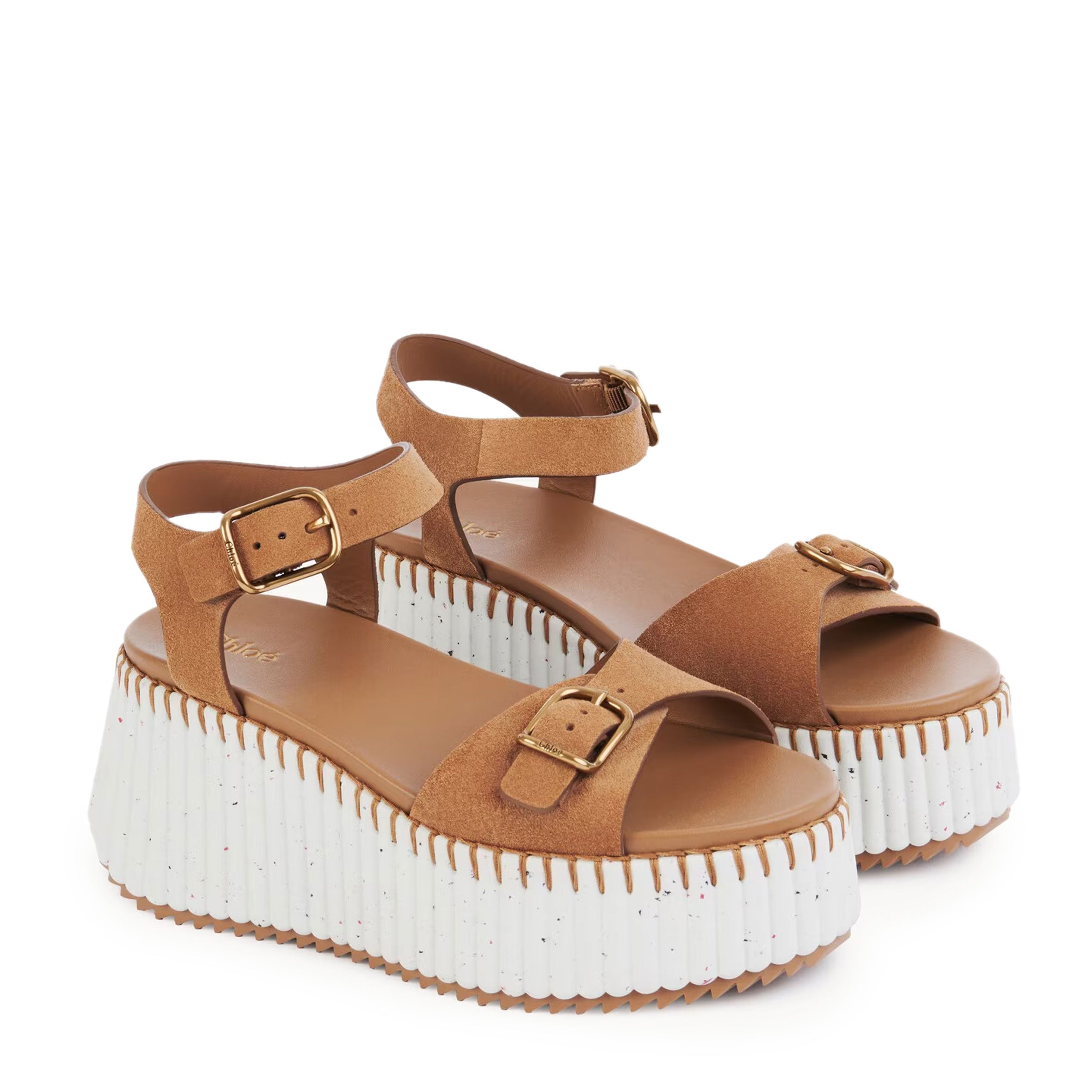 Set on a chunky ridged sole, the upper features interwoven straps combined with tonal stitching. These ultra-comfortable wedge platform sandals are finished with a Chloé-engraved gold-tone buckle for an adjustable fit.