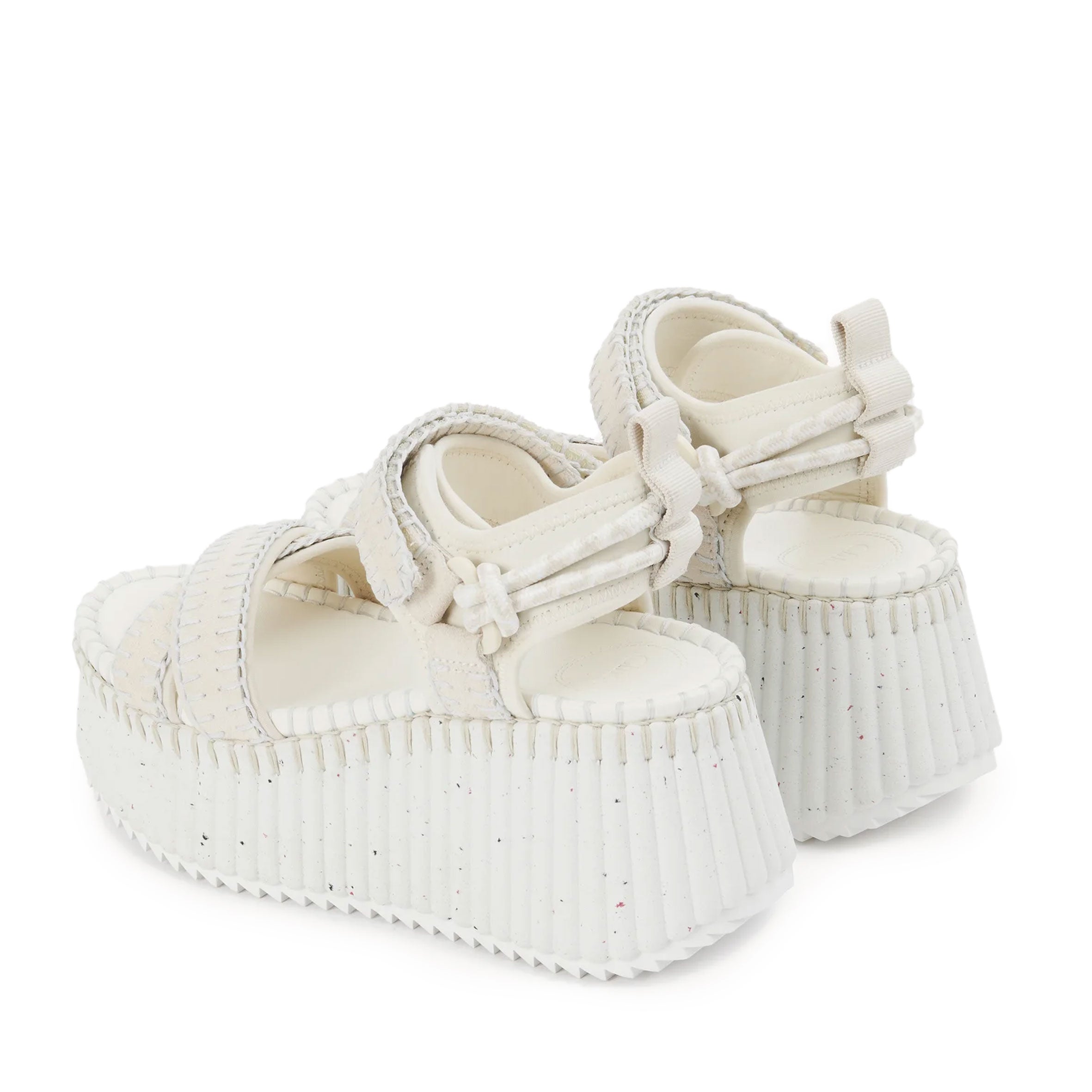 Bold and lightweight, the ultra-comfortable recycled platform sole has a ridged texture that is complemented by the line's distinctive hand-stitching. The suede calfskin upper matches criss-cross front straps with an adjustable ankle strap and a sporty back loop, along with tonal laces tied in nautical knots.