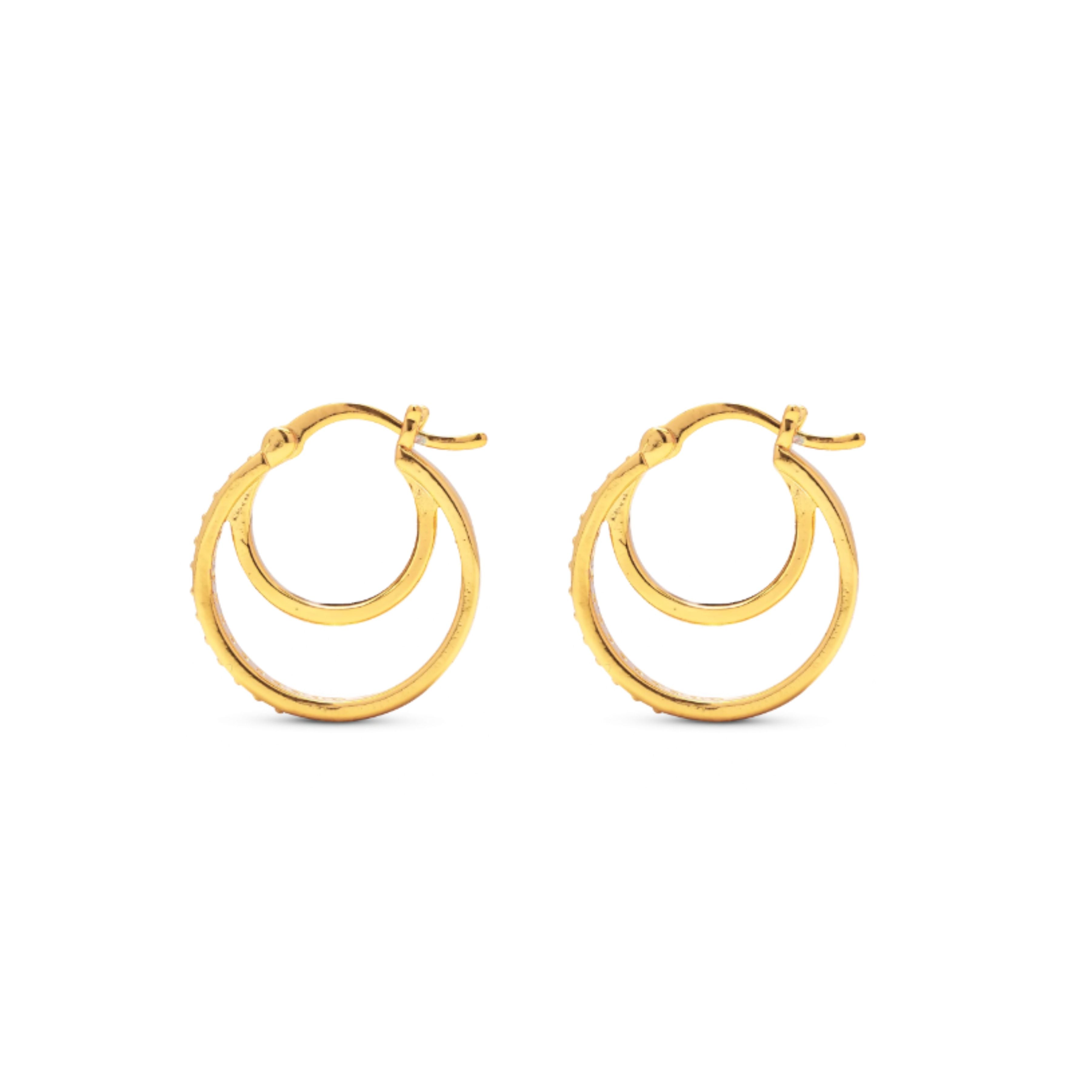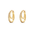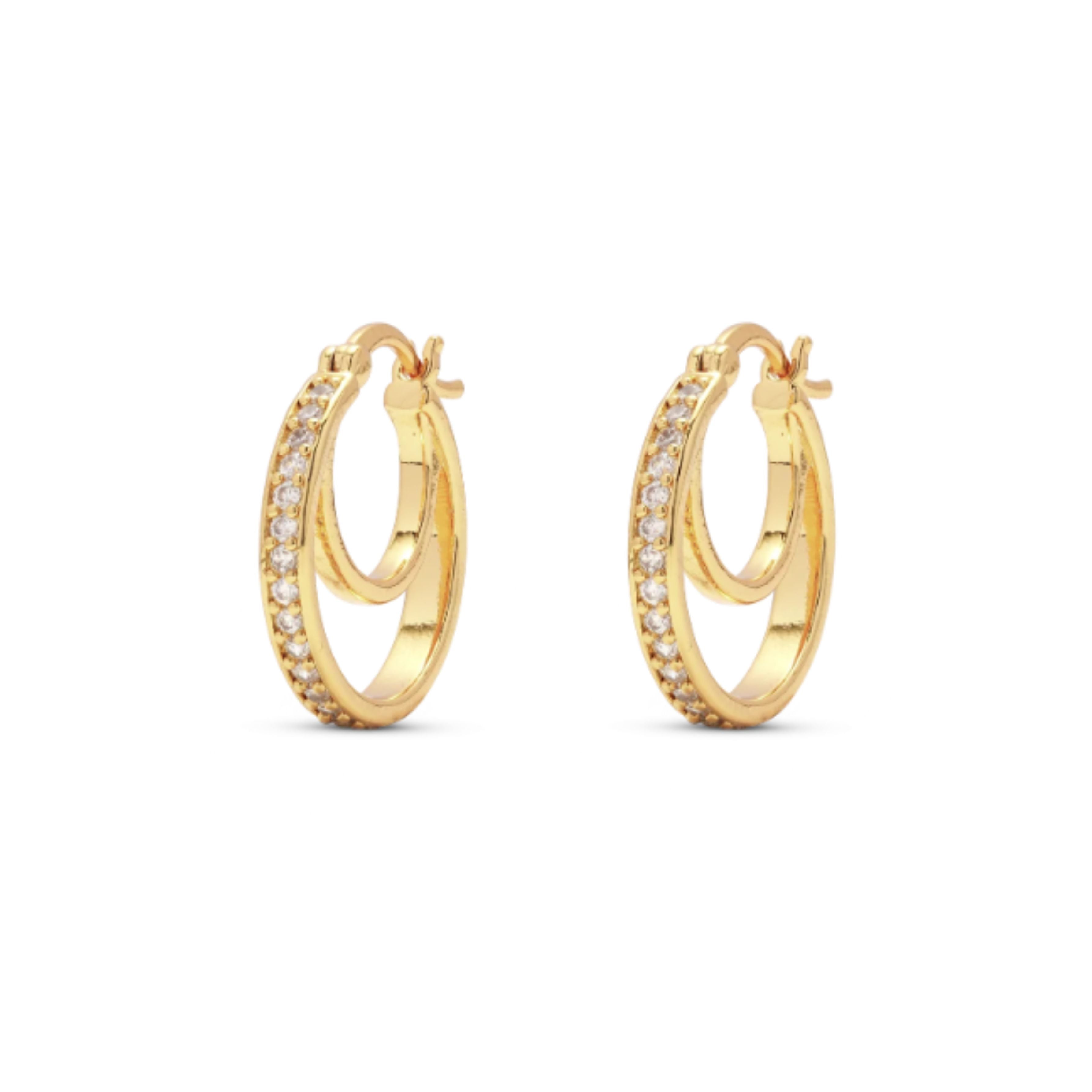 Two hoops in both smooth gold and sparkling pavé are connected together for a pair of earrings that have the look of a curated ear, but without the fuss.
