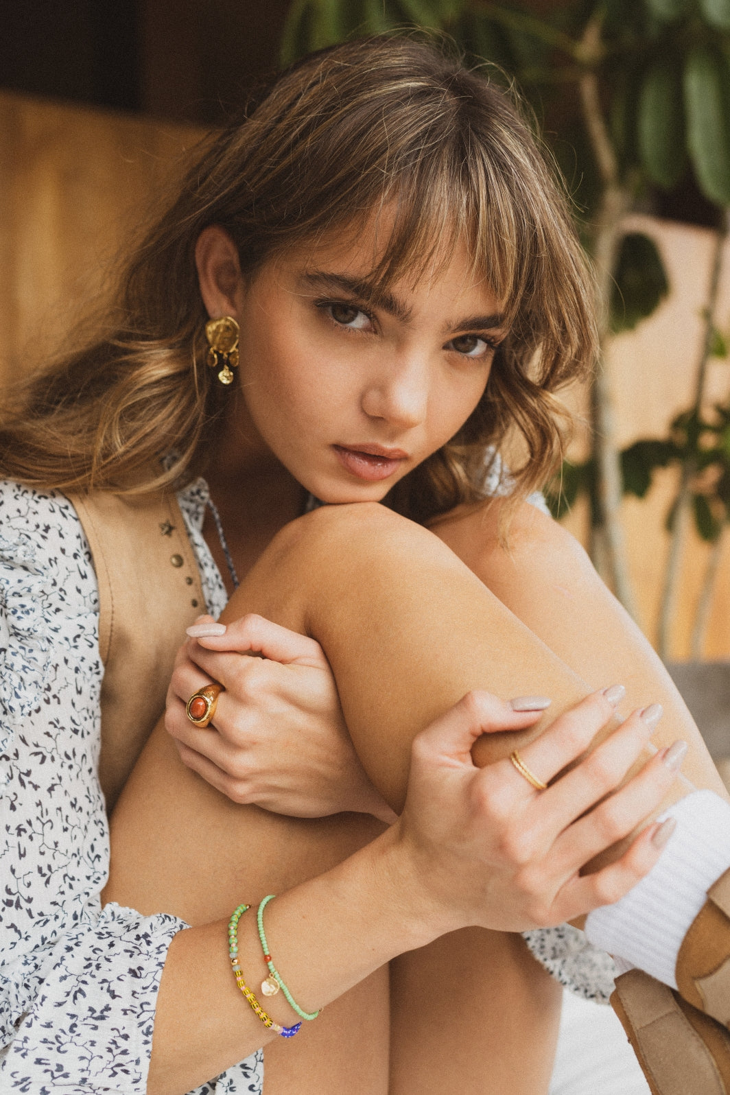 Bold green and natural jasper beads that don’t play it safe. Peyote is your wildcard — the piece that wakes up your whole wrist stack.
