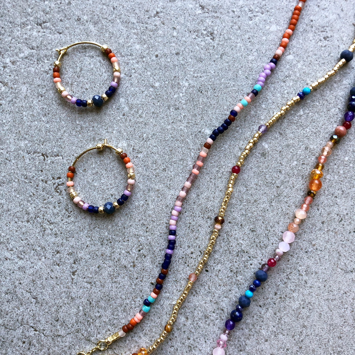 Material: 18k gold plated brass, glass beads.