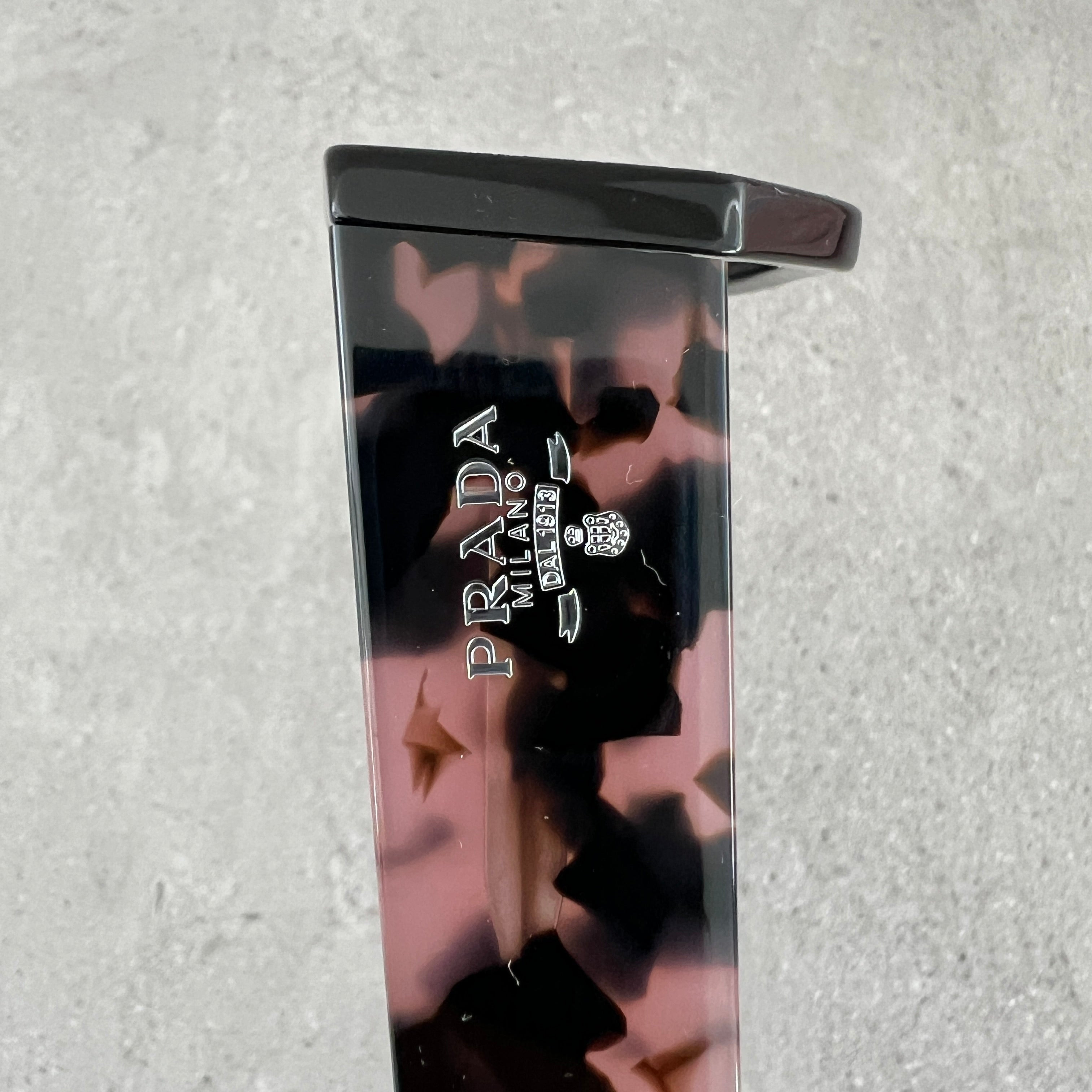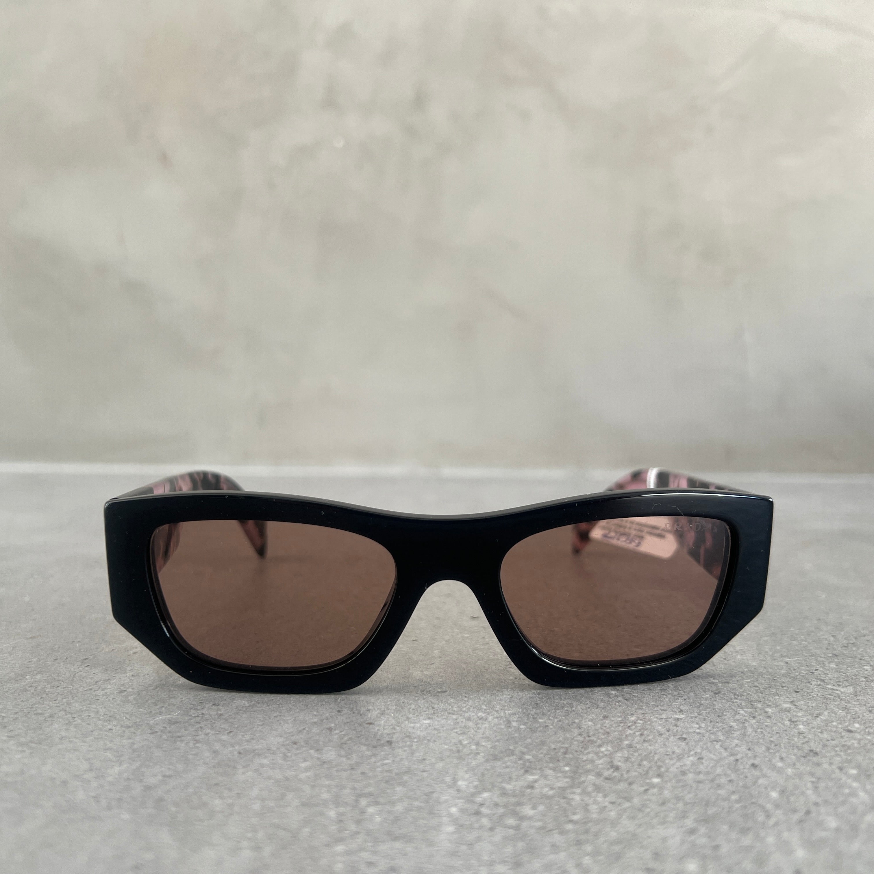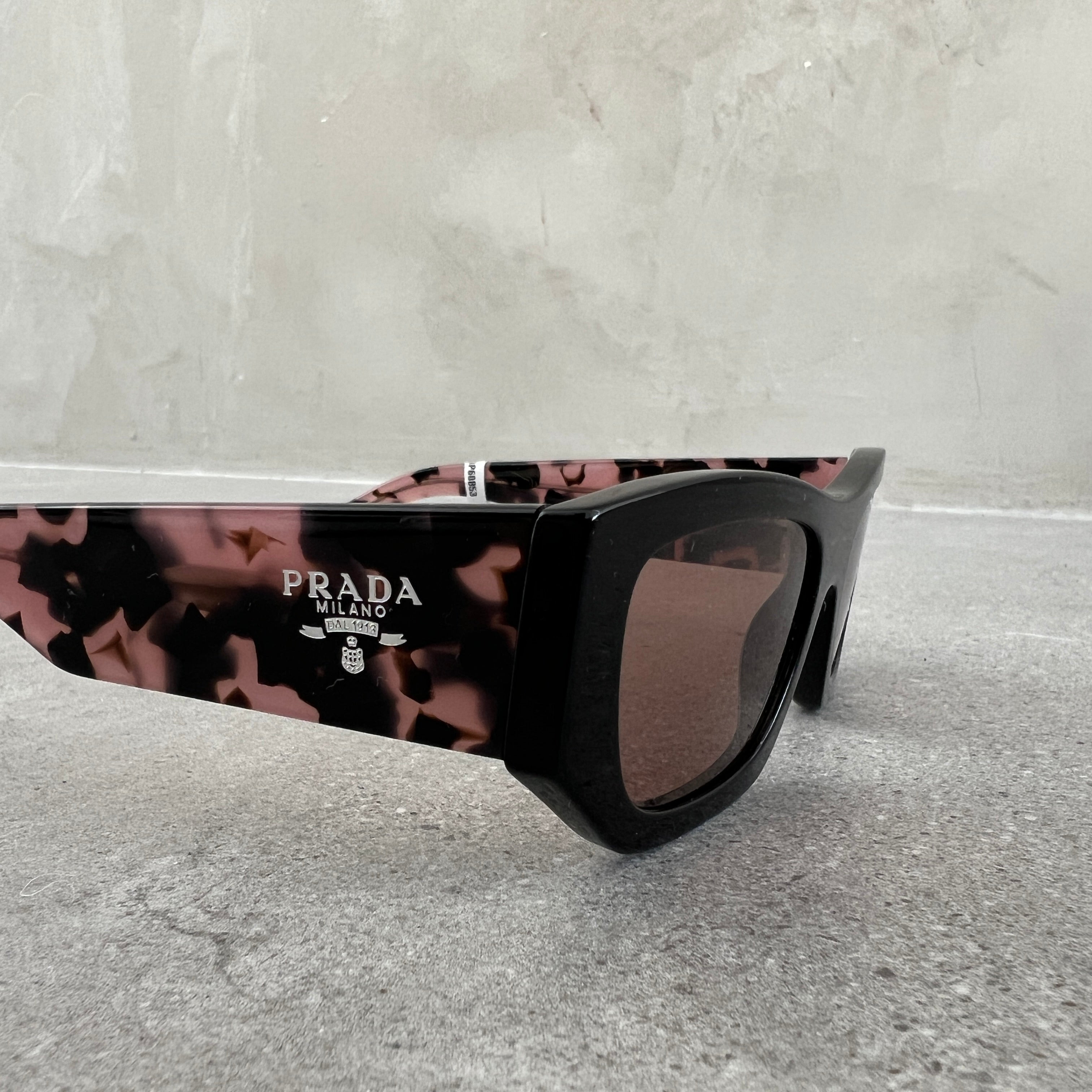 Prada sunglasses model 0PR A01S tortoise frame with dark brown lens.