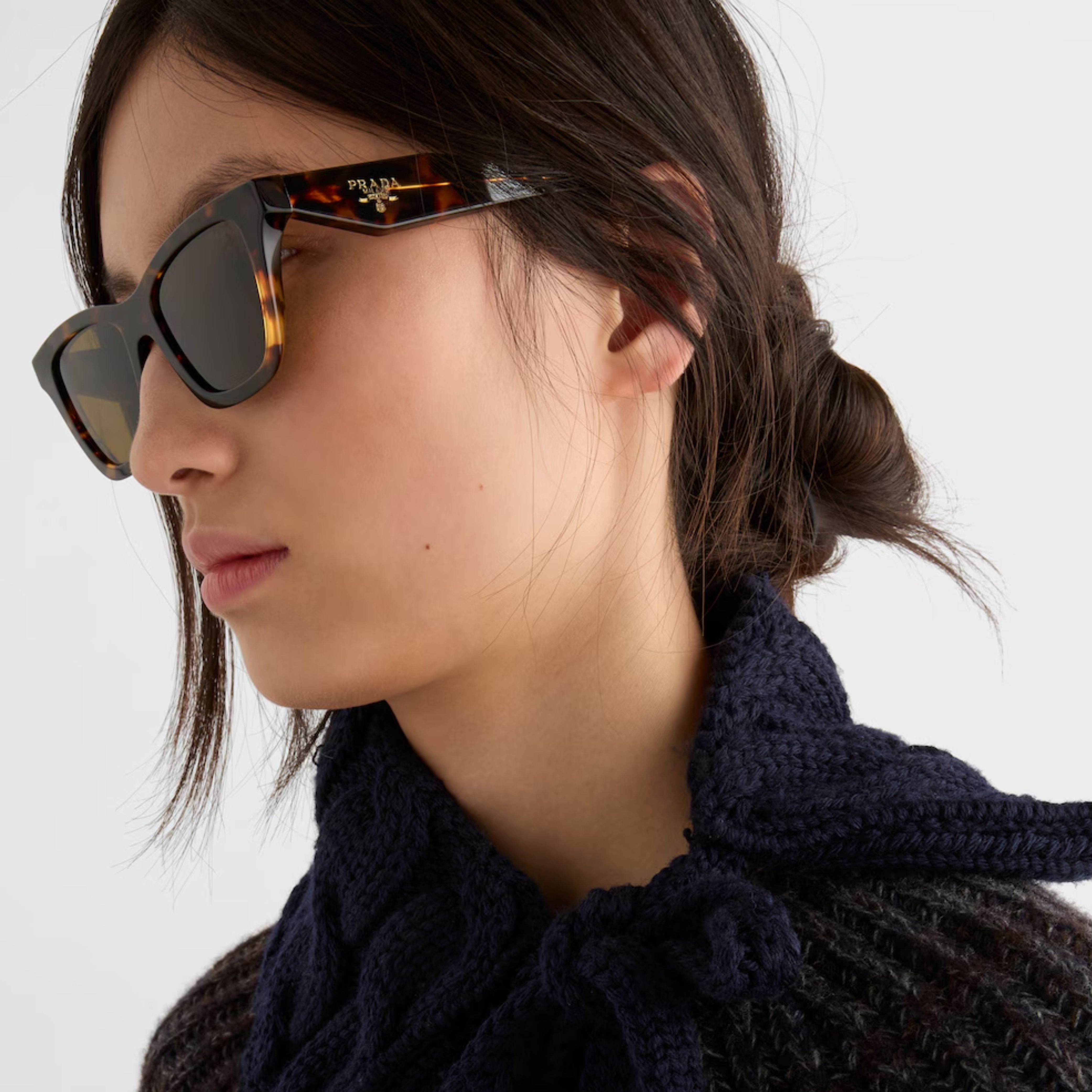 A synthesis of refinement and minimalism, these acetate sunglasses have a square silhouette with strong lines. The bold design of the temples is highlighted by the Prada logo.