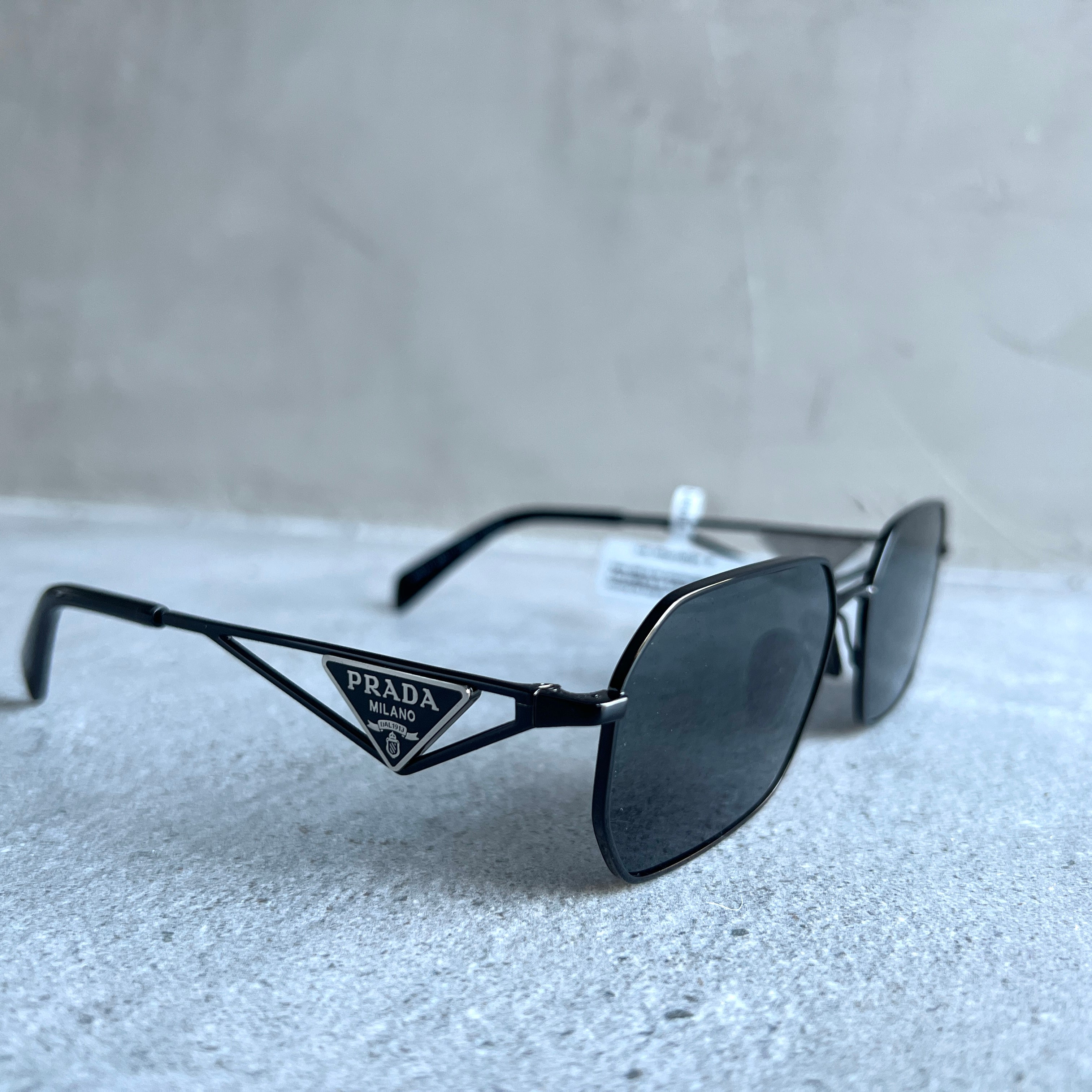 Elevating the iconic metal frame to new heights, Prada presents a contemporary and sophisticated design with PR A51S. The black grey polar lenses paired with an irregular frame shape exude elegance, while the solid color lens treatment adds an extra touch of refinement to this timeless style. Elevated by its metal construction, this model showcases a harmonious blend of modernity and tradition that seamlessly integrates into any aesthetic.