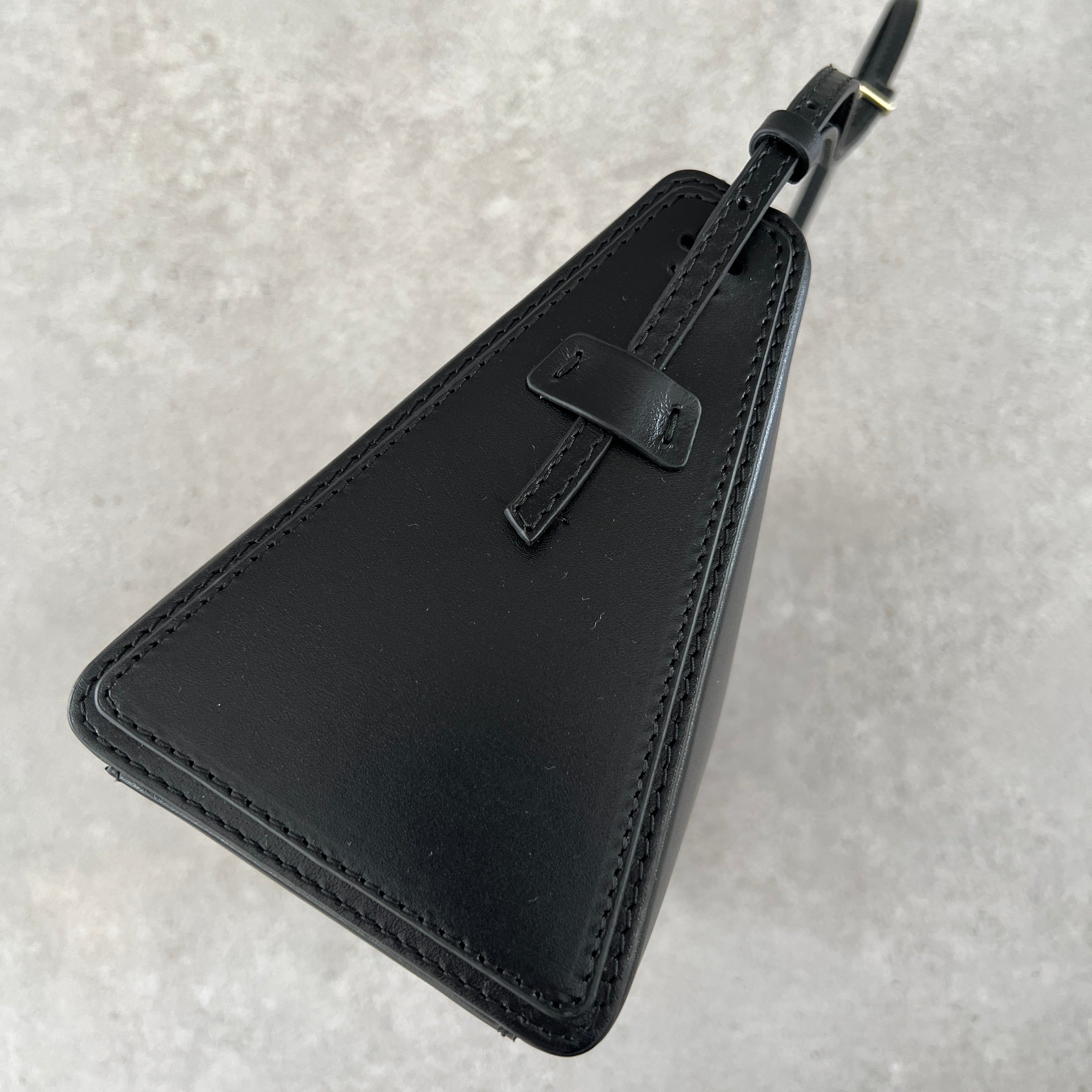 A shoulder bag featuring vegetable tanned leather with a Manu Atelier embossed logo. It features an adjustable leather strap and an interior zipped pocket.