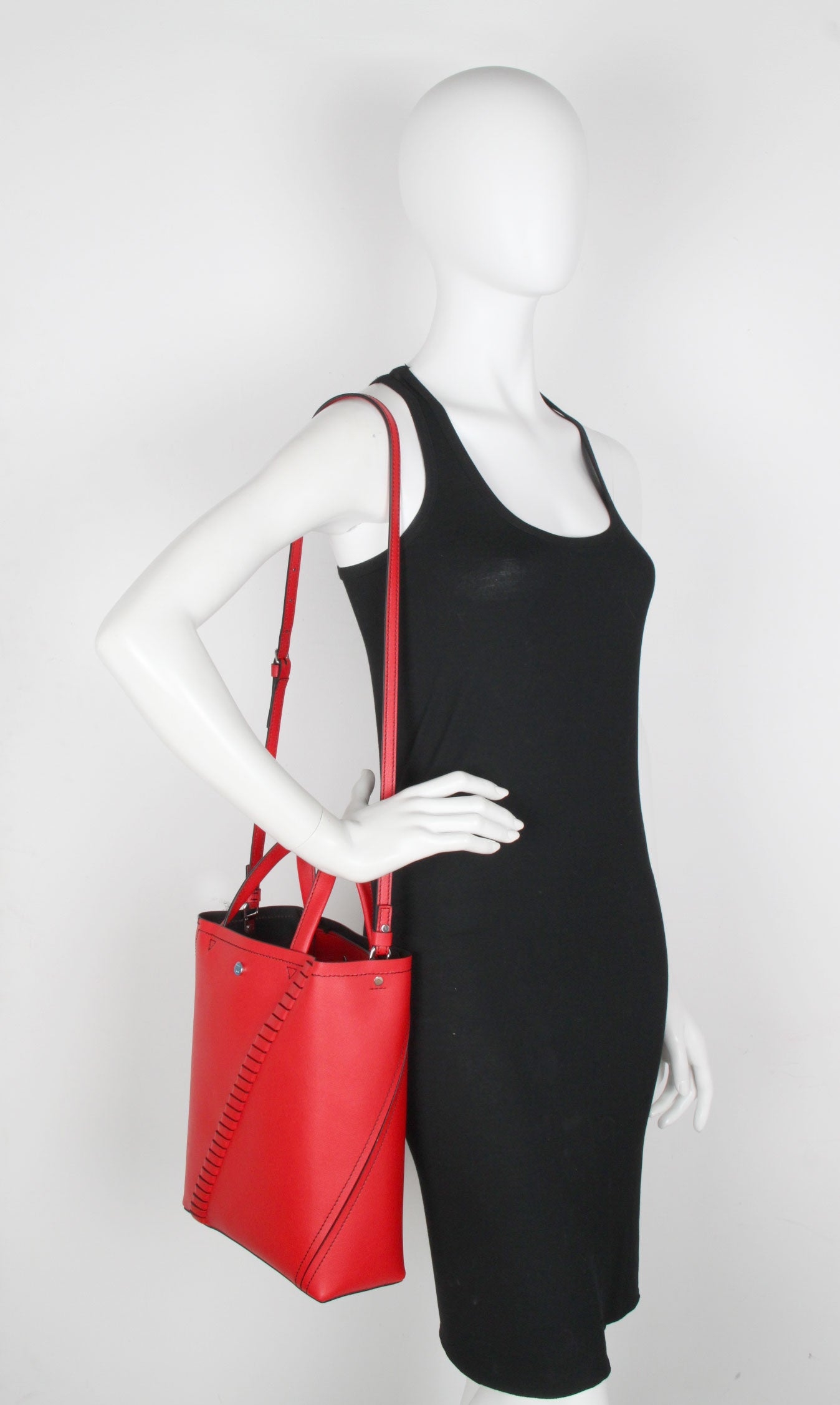 From an elegantly structured silhouette, this Hex Tote combines classic design elements including asymmetric top-stitching and whip-stitch details. Sculpted from a sleek calf leather, a unique spiral construction is highlighted amongst the natural leather composition and hardware. The top handles allow the piece to be carried by hand, and the removable and adjustable strap allows the bag to be carried on the shoulder or across the body. Magnetic snap closure.
