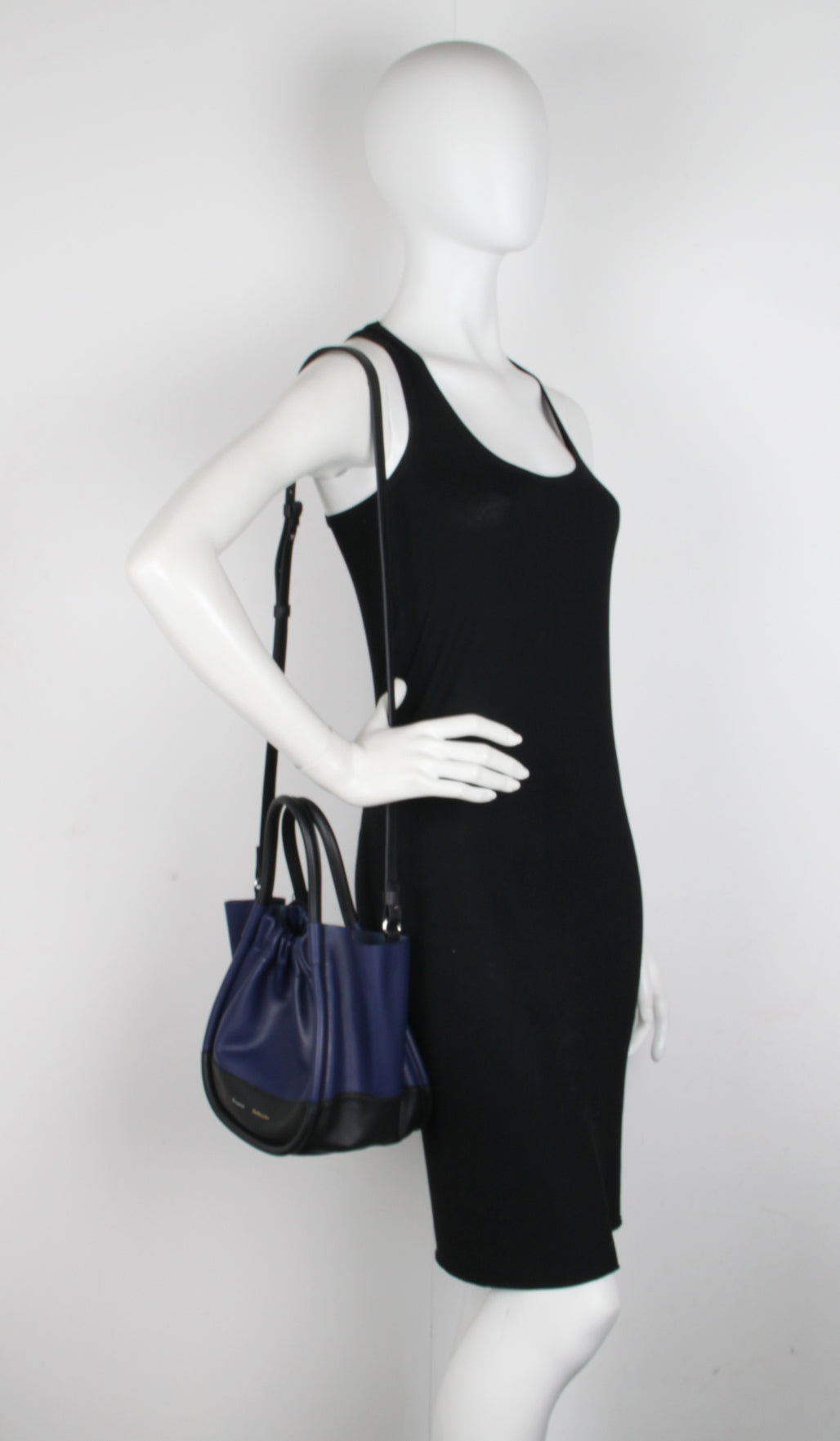 Designed for a soft, unstructured silhouette, the Ruched Large Tote features contrasting black handles and an open ruched top with magnetic closure. Finished with an unlined interior and attached black leather zip pouch. Signature silver and gold-tone logo stamp. Detachable and adjustable long strap.