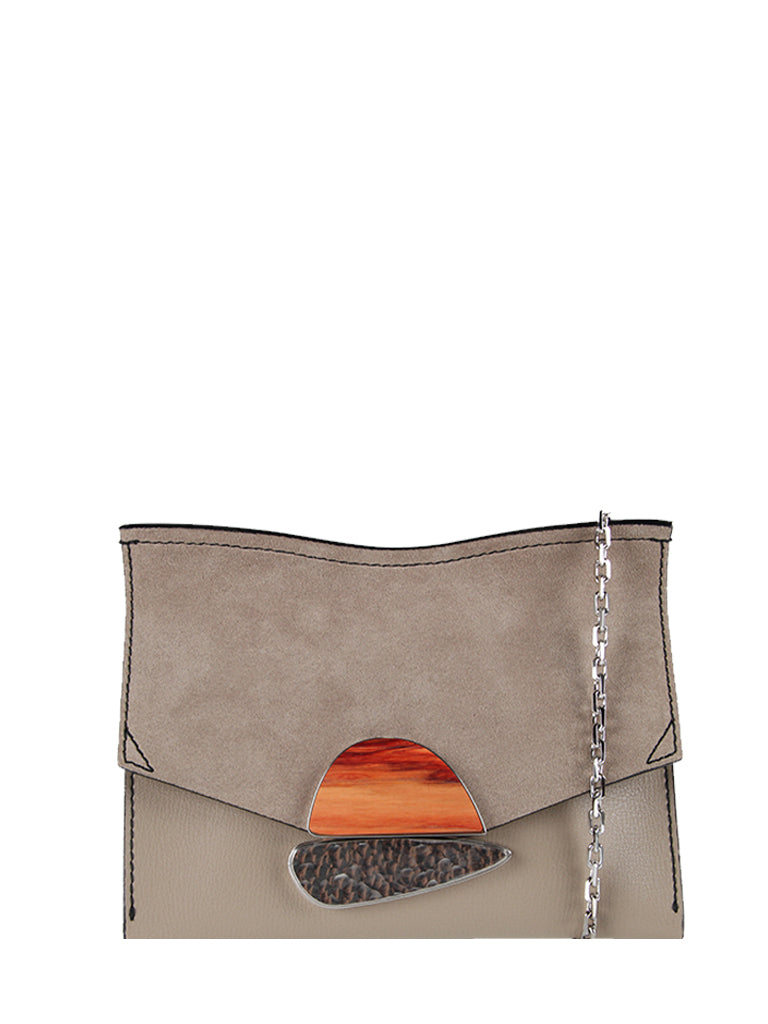 PS Small Curl Chain Clutch Grain/Suede, Taupe