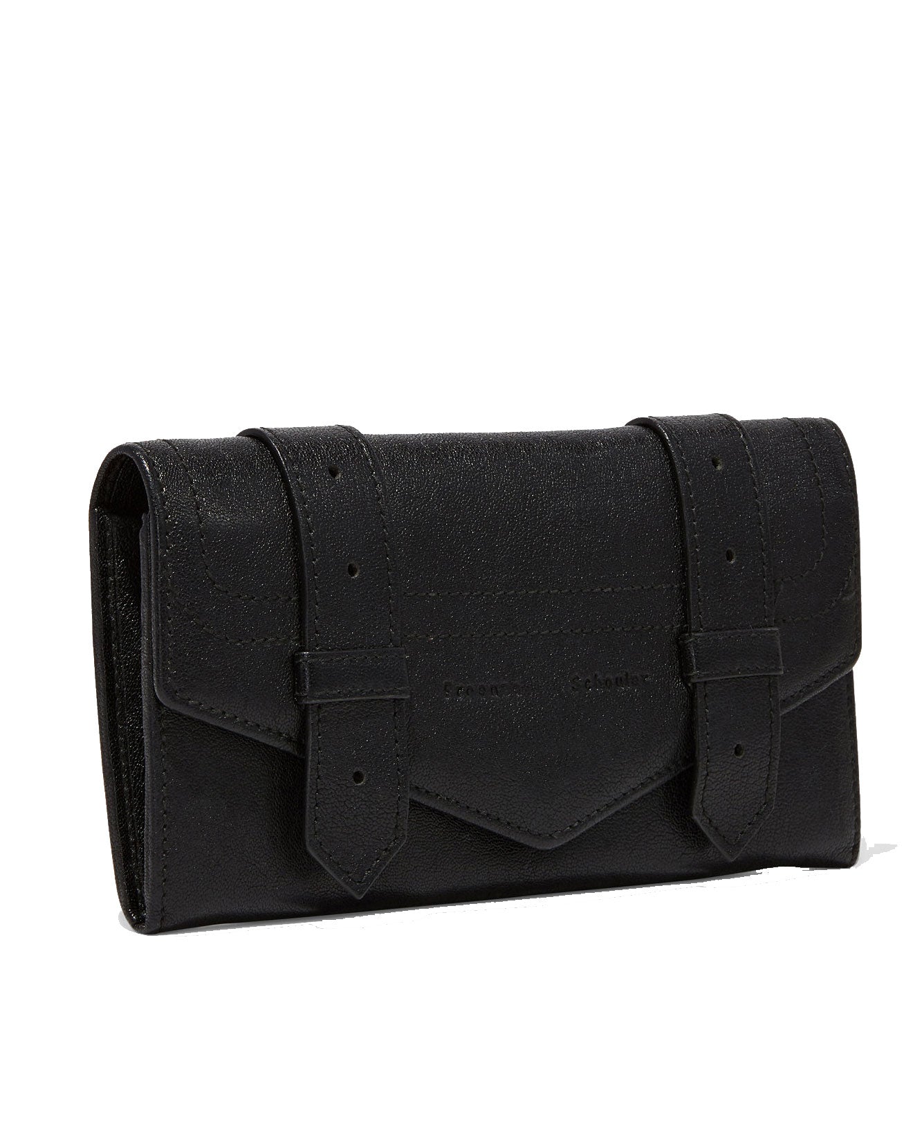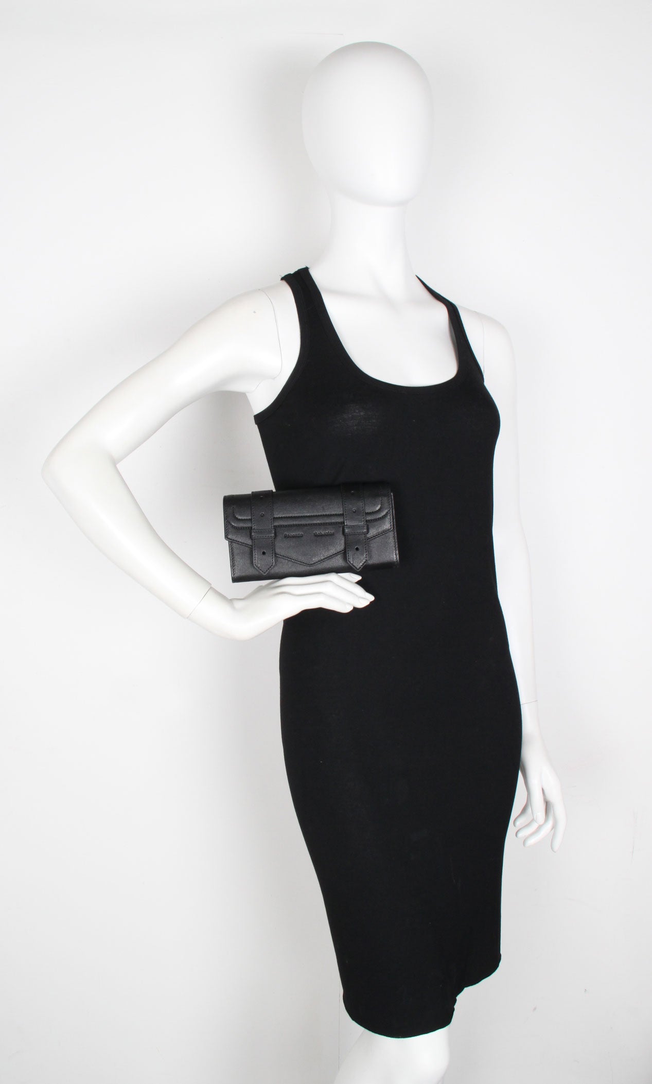 Crafted from textured grained leather, this slim continental wallet boasts a front flap design, front logo stamp and signature PS1 satchel strap detail. The gusseted interior features a zip coin compartment.100% lambskin.