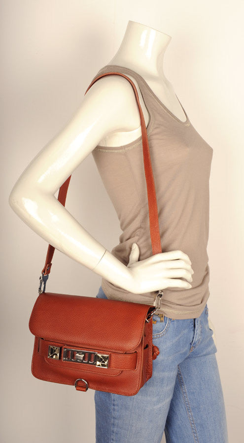 The Proenza Schouler PS11 MINI shoulder bag, is a smaller version of the regular PS11. This is the original version with the middle "D" ring.