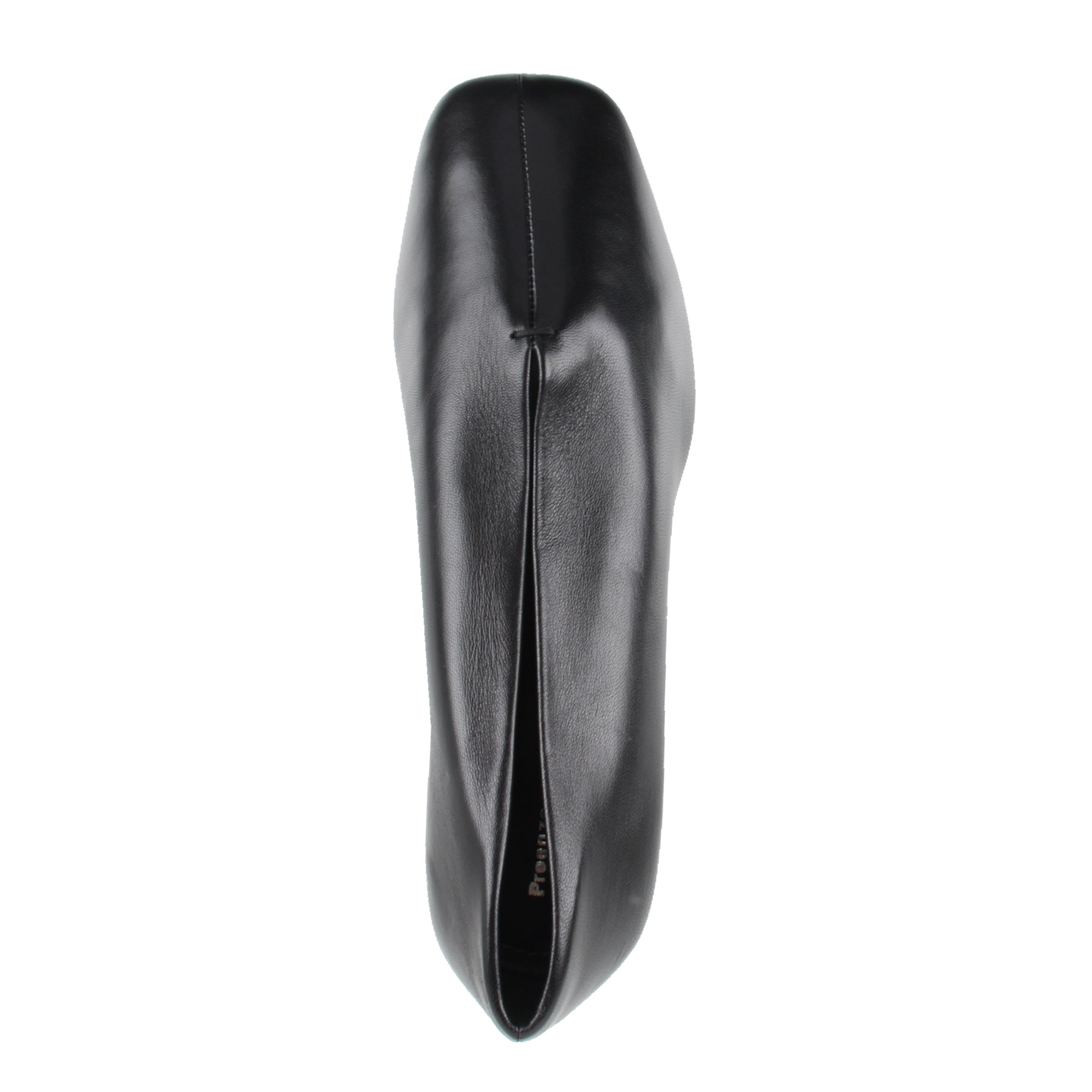 The Wrapped Heel Pumps in black feature a square toe and V-shaped vamp. Cylindrical mid-heel wrapped in wax cording. Ultrasoft glove fit.
