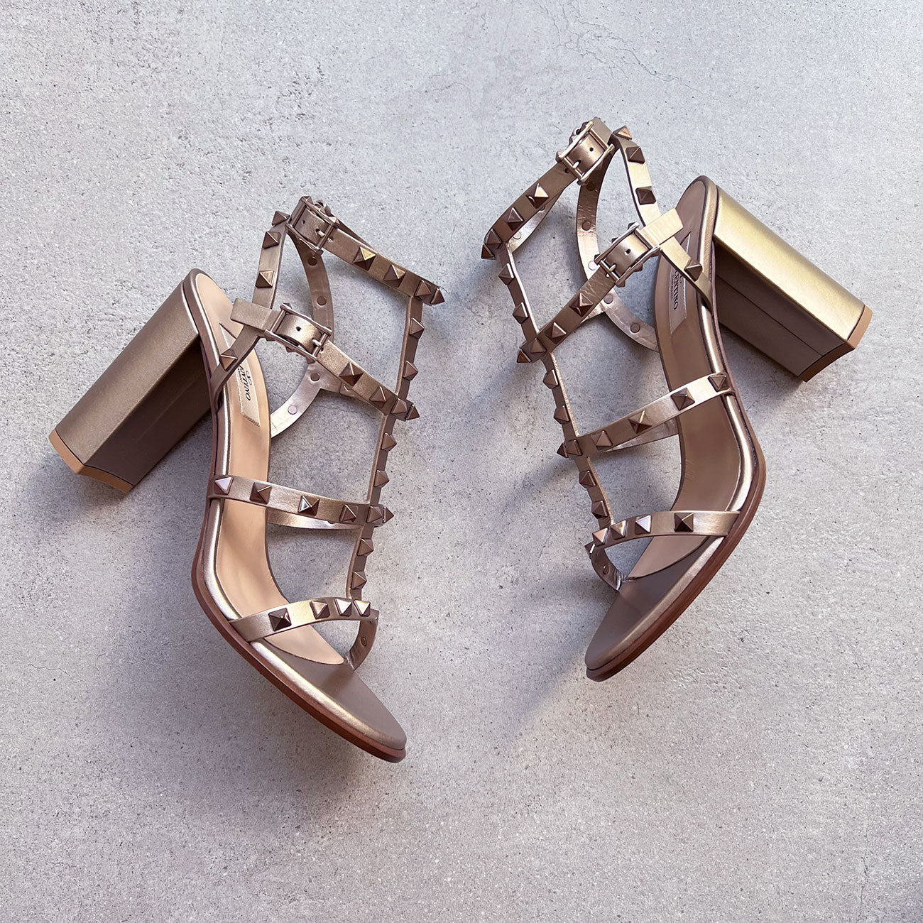 Rockstud Gladiator Block 90 Nappa, Metallic Skin
