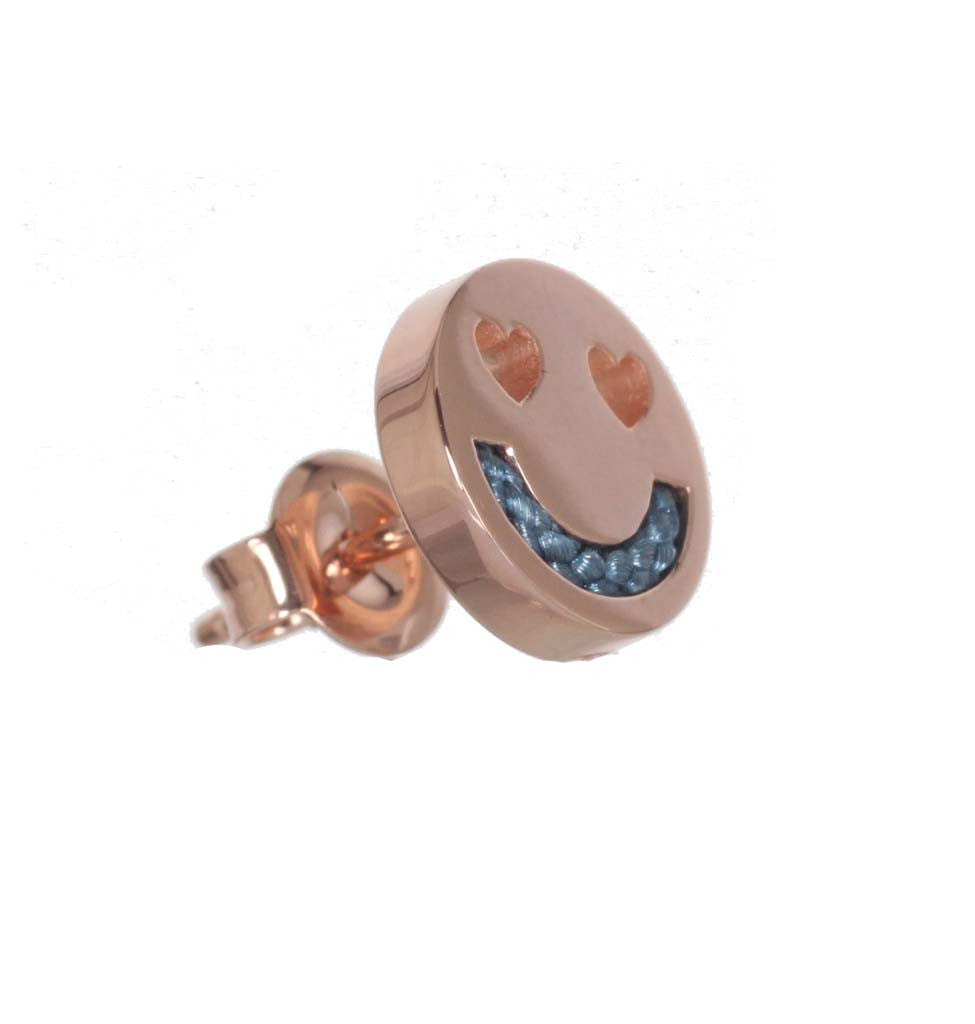 Feel the love everyday with the Smitten studs. A hopeless romantic, Smitten sees the best in everyone and is filled with love! With a chain threaded through the smile.