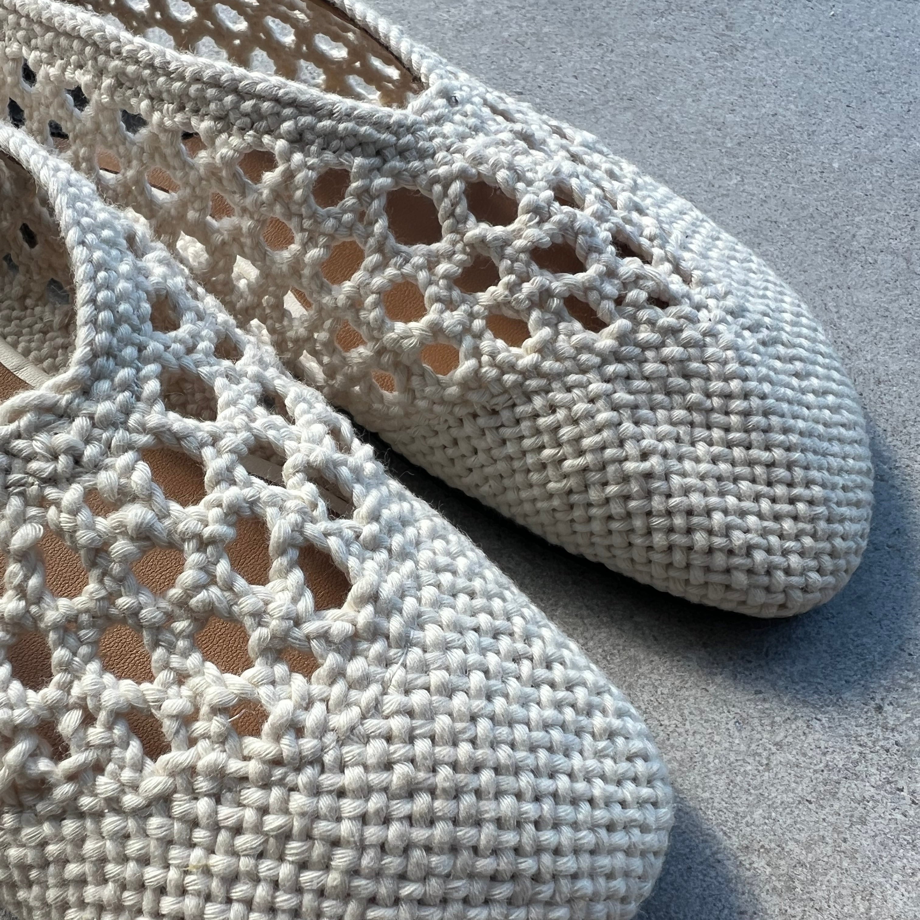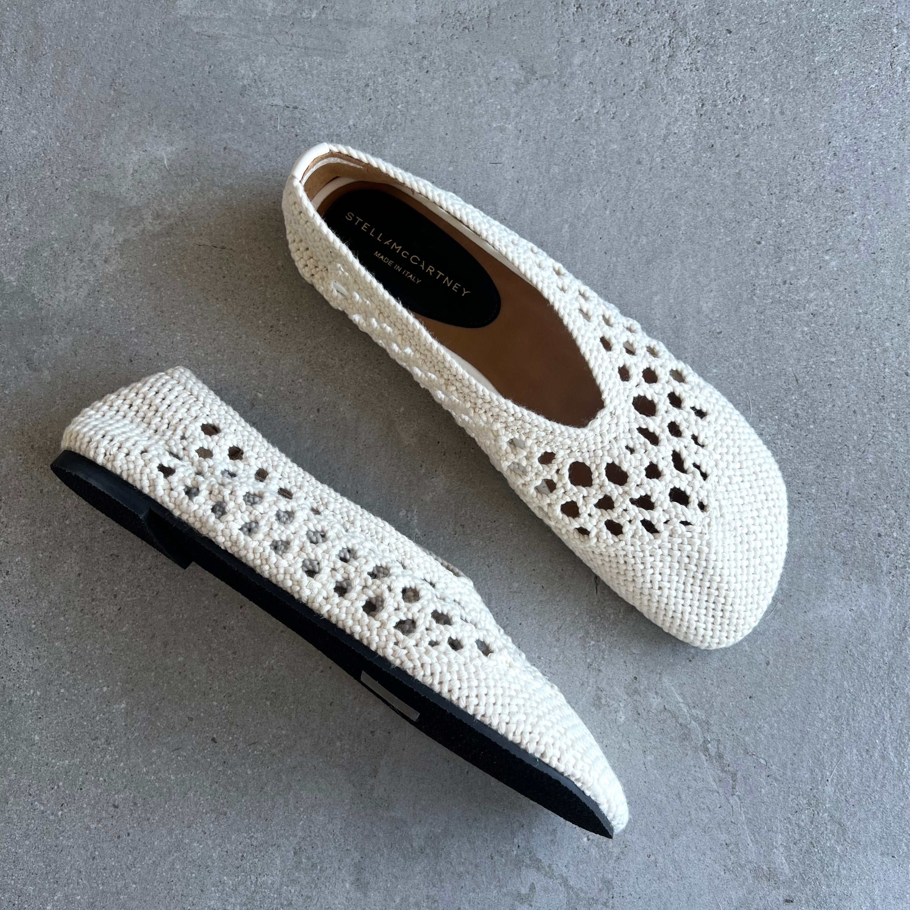 Stella McCartney's 'Ryder Day' ballet flats are crocheted with an open construction and tactile finish, adding texture to your summertime outfits. They have angular squared toes and high vamps reminiscent of vintage styles.