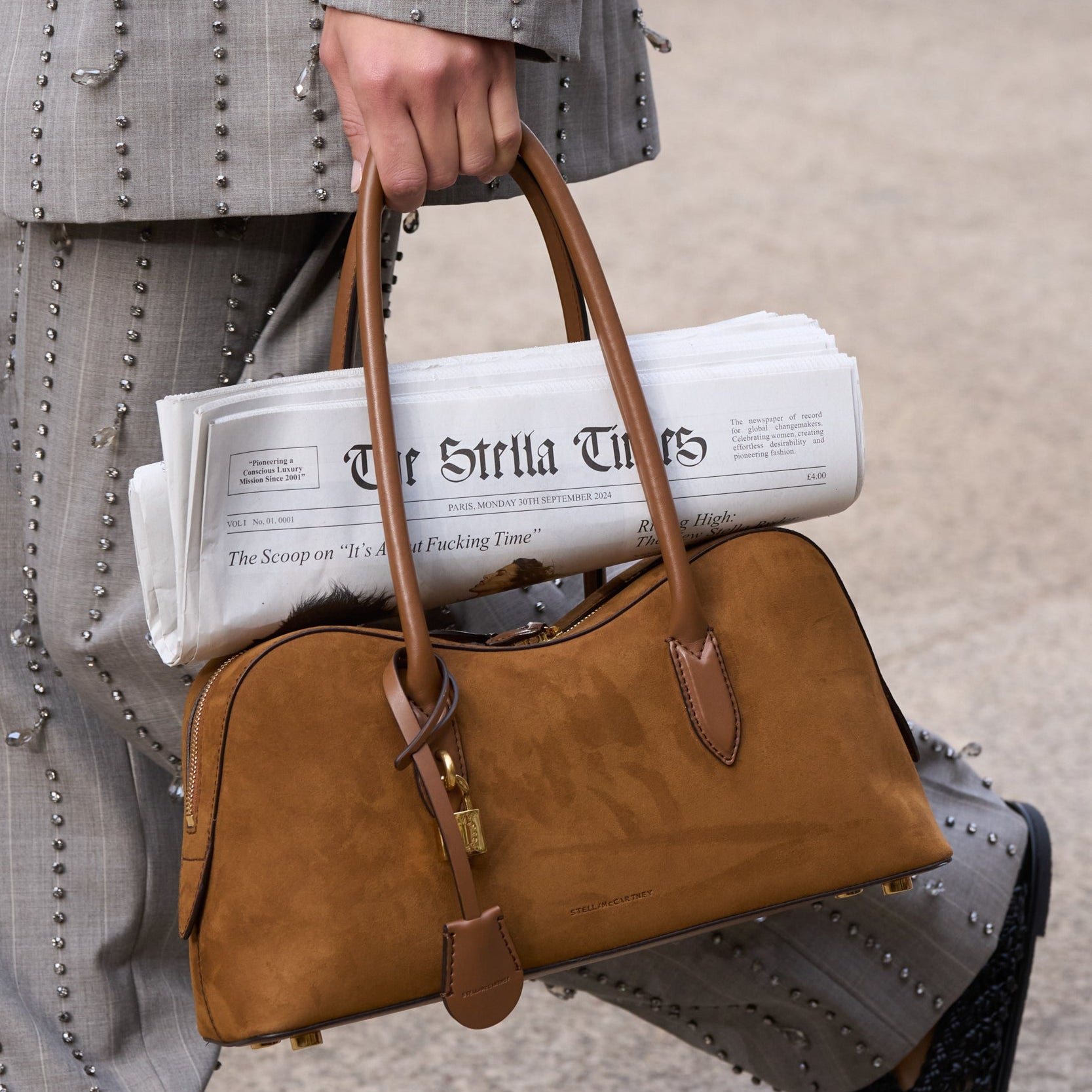 Elevating vegan handbags to a new level of luxury craftsmanship, every Stella Ryder is handmade by artisans in Italy from cruelty-free alternatives to animal leather sourced from recycled and grape-based materials. The sculptural silhouette honours the strength, beauty and power of Stella’s favourite animal – the horse. It features a logo-engraved padlock and effortlessly fits a phone, wallet and daily essentials.