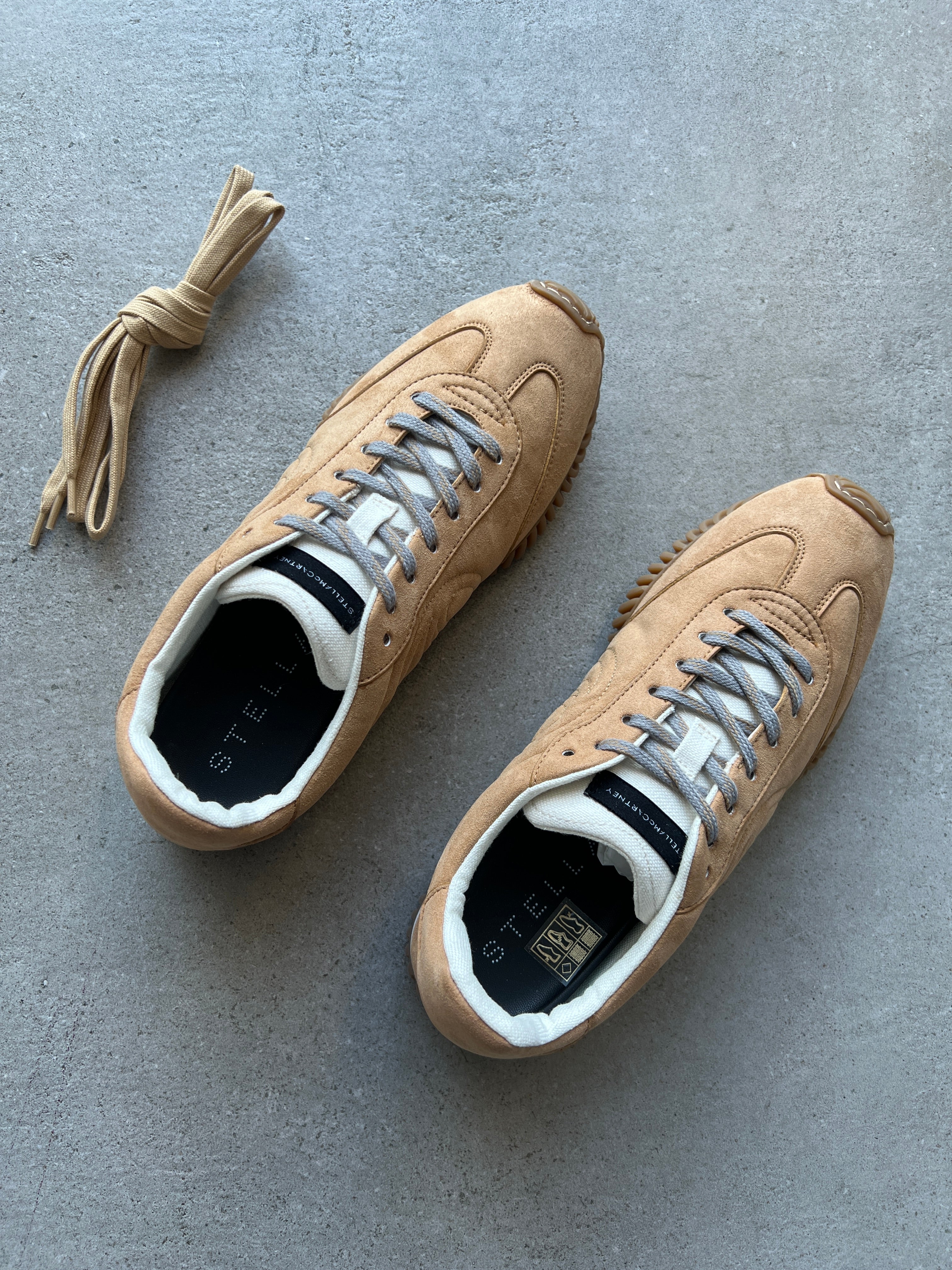 Our most sustainable sneakers return for Summer 2025, with every component incorporating innovative alternatives. Inspired by vintage runners, its sporty upper is handcrafted from lightweight panels of our vegan alternative to suede – crafted using recycled fibres and resting upon a supportive recycled rubber sole. Slip the S-Wave Sport trainers on with denim or tailoring for all-day comfort.