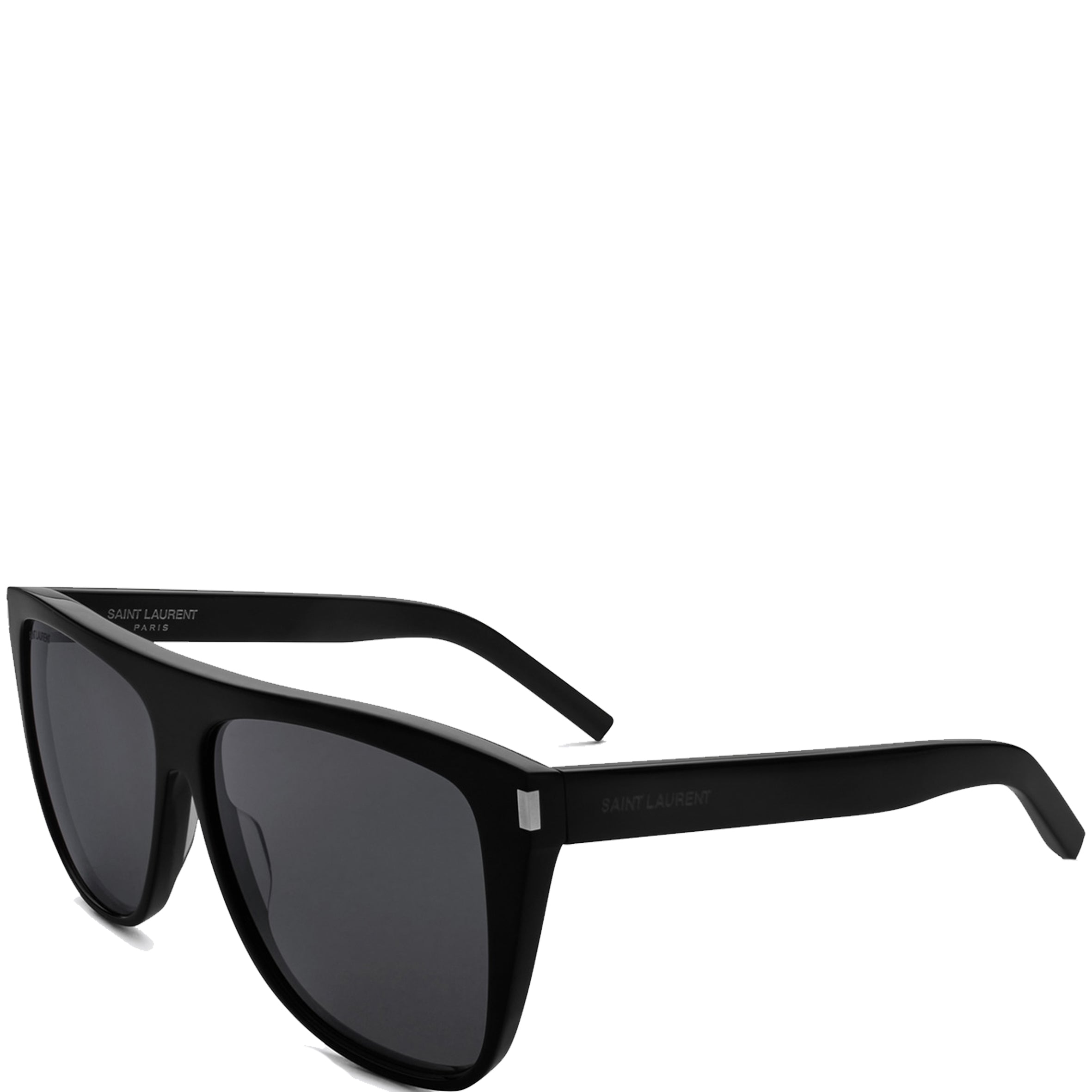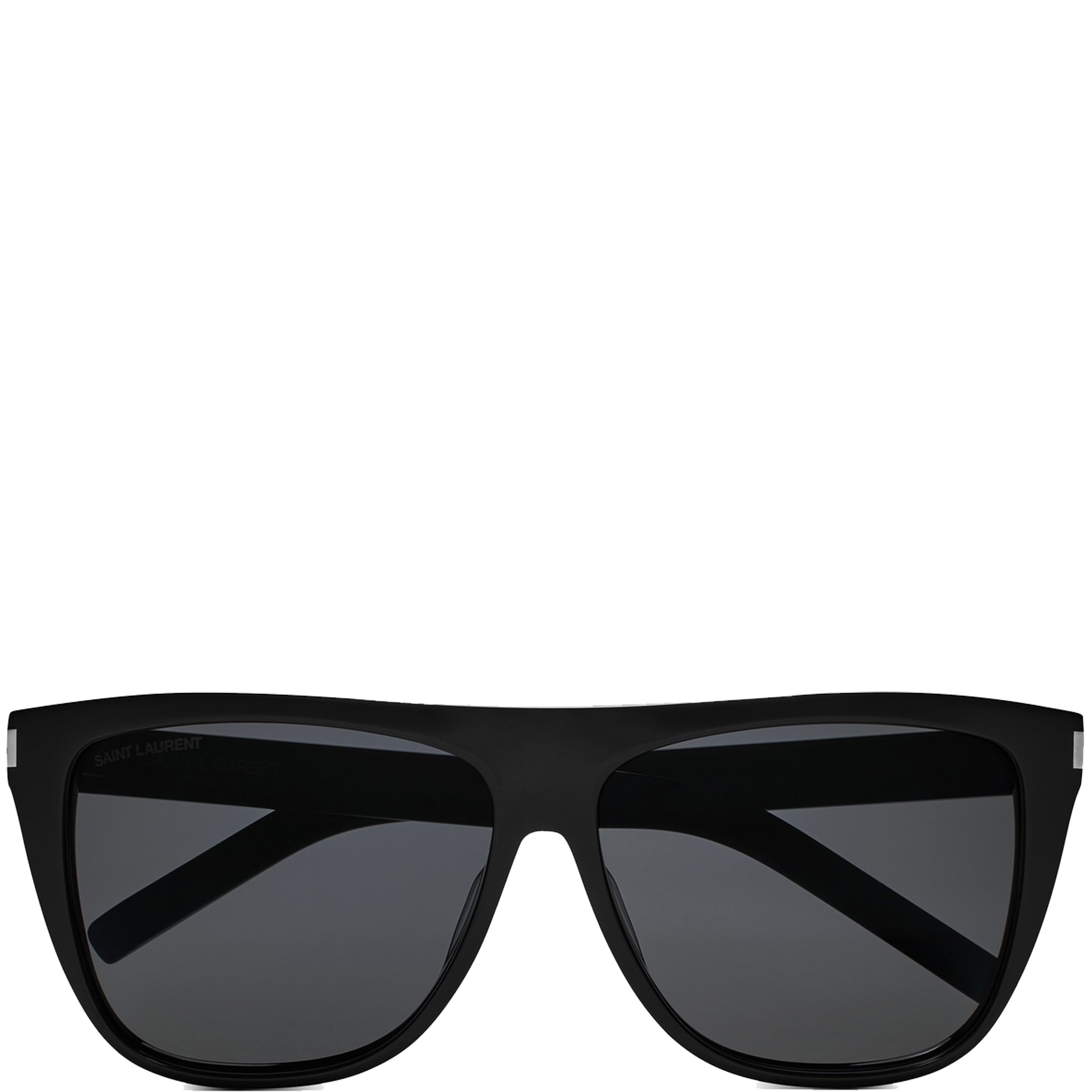 Classic Saint Laurent thick framed, flat-top sunglasses with mineral glass lenses. Features metal corner angles and Saint Laurent signature engraved temples.