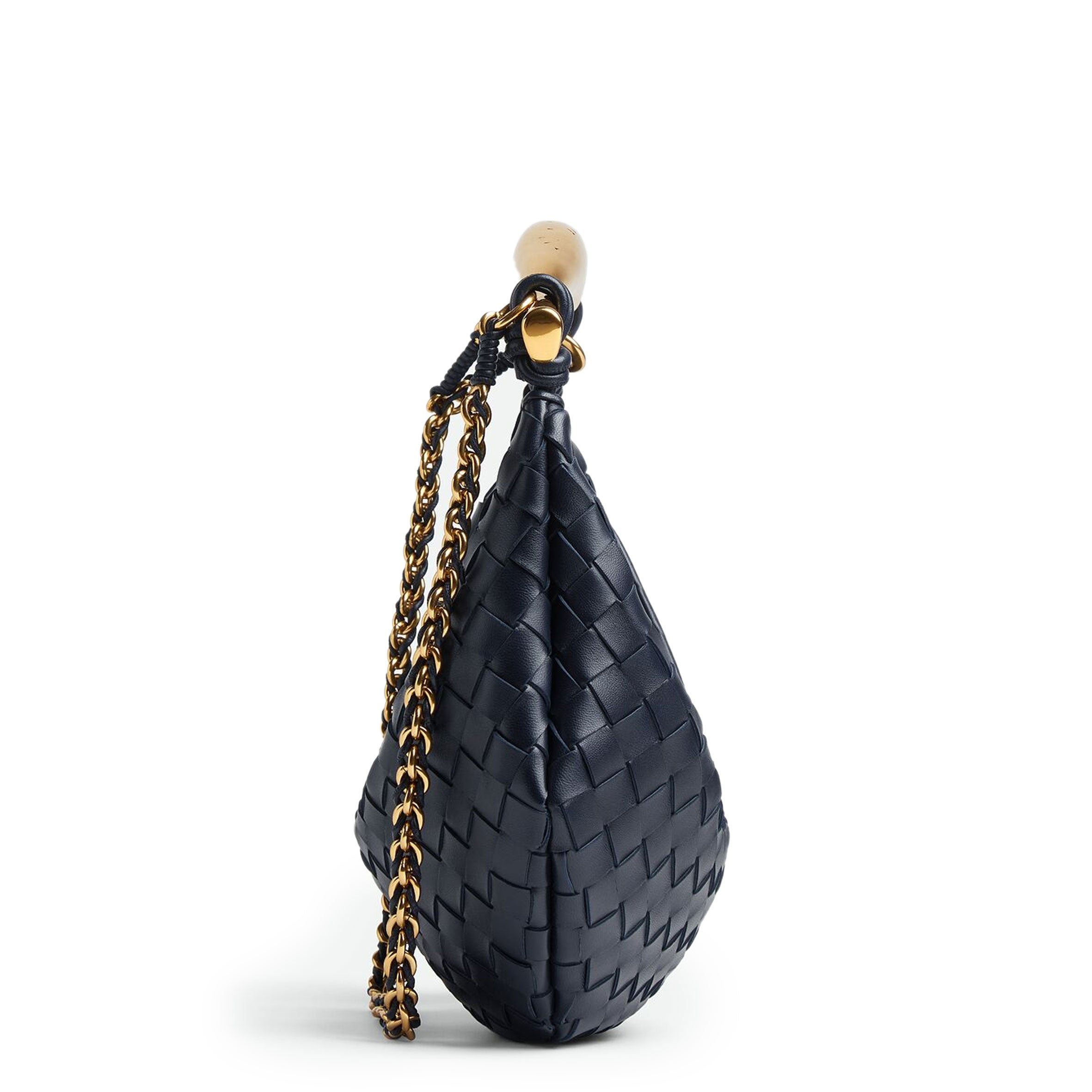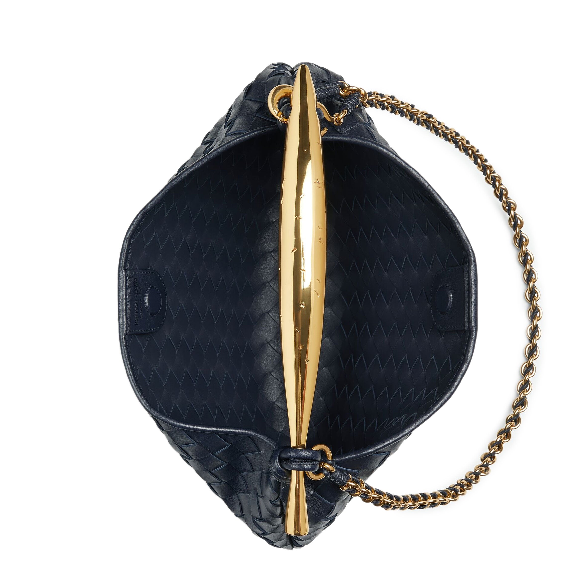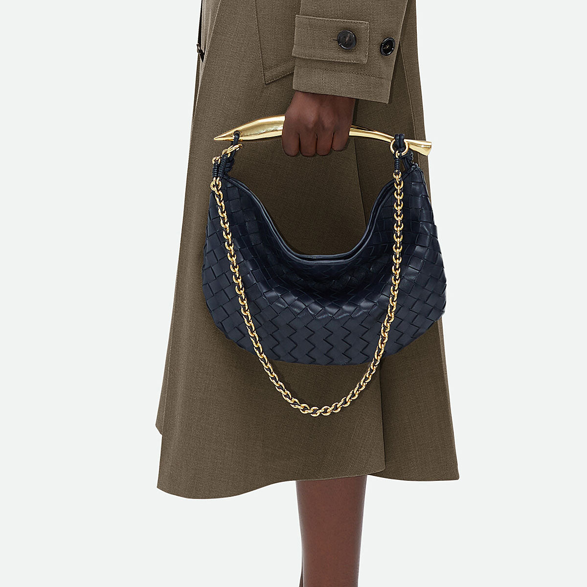 Leaning into the brand's foundations, Bottega Veneta delivers new iterations of house signatures, like the intreccio weave, as seen on this 'Sardine' bag. It's made from calfskin leather into a slouchy hobo silhouette topped with a sculptural gold-tone handle, magnetic fastening and braided leather shoulder chain.