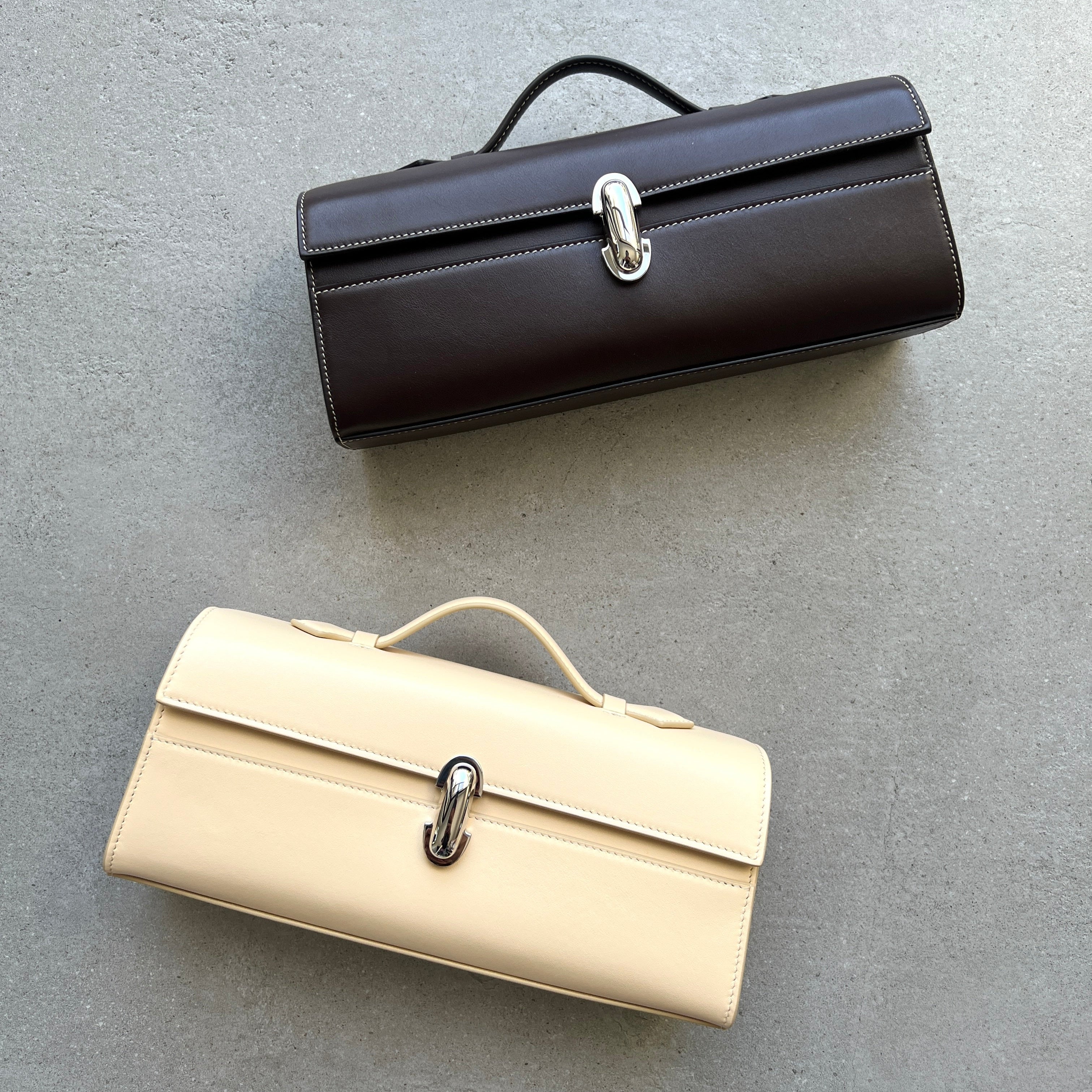 The Symmetry family celebrates geometry in its purest forms: parallel and perpendicular lines. The Slim Pochette is a more stylized and elongated version of our classic pochette silhouette.