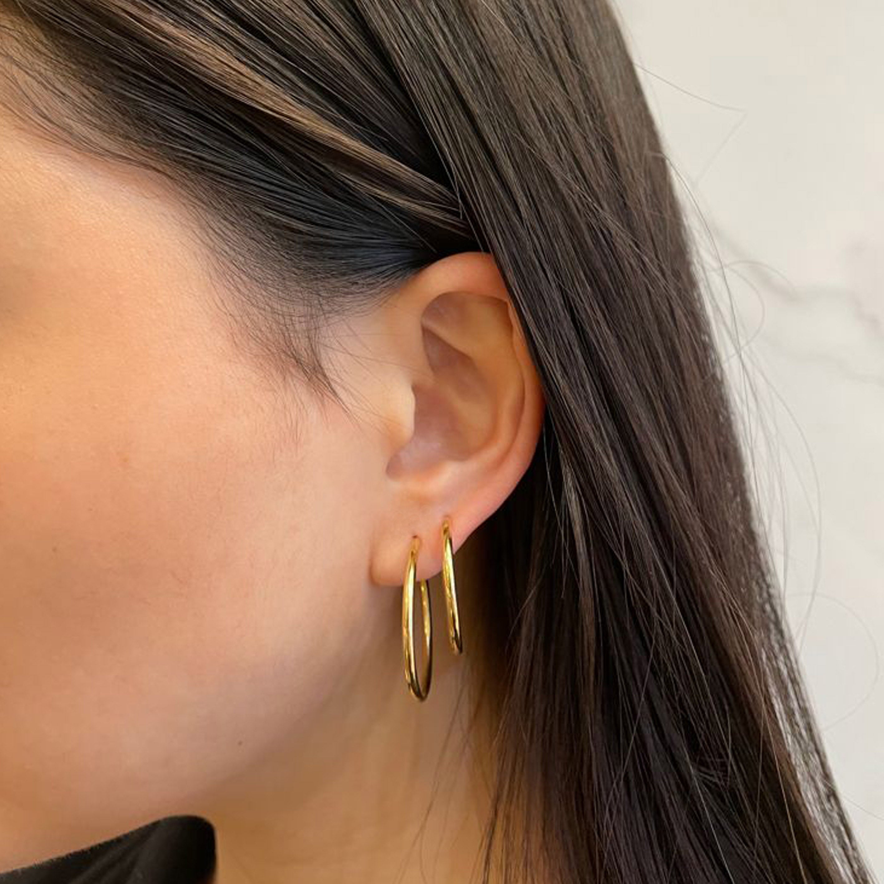 If you are looking for that classic and understated elegance, you cannot go wrong with a pair of high polished gold hoops. Want a bit more fun? Add a charm to your hoops.