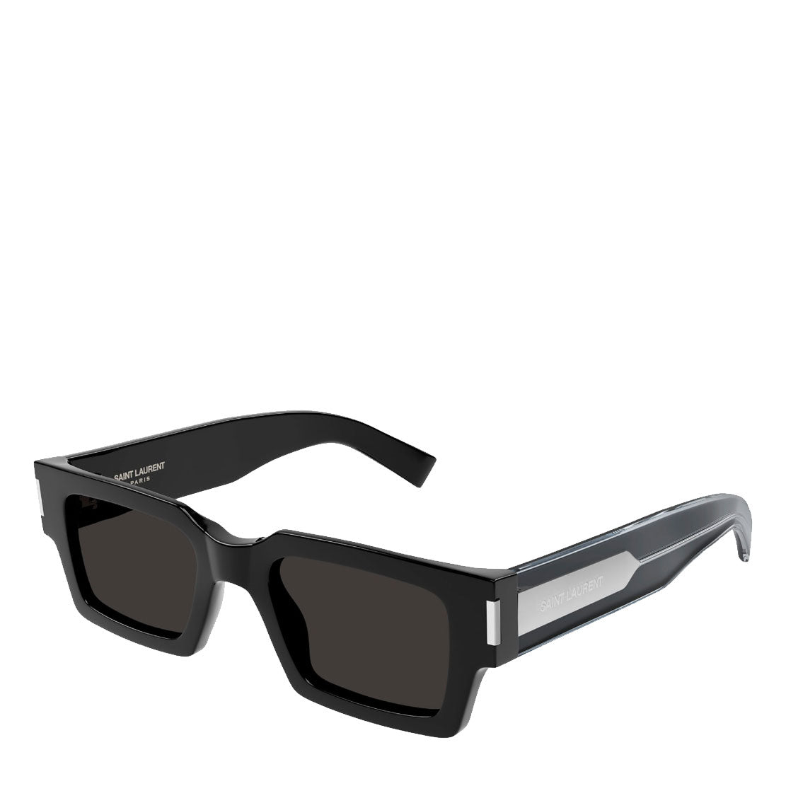 Sunglasses with geometrical square frames in acetate, with nylon lenses and Saint Laurent engraved temples. A squared and sharp shape in the new innovative key concept of the season, naked wirecore, to create a strong Saint Laurent statement. The style is enriched by the biggest corner angle ever, 1 cm, paired with the metal wirecore dimension. The bold acetate temple is made in a new innovative material that allows to have the visible wirecore with lasered Saint Laurent logo in super shiny finishing.
