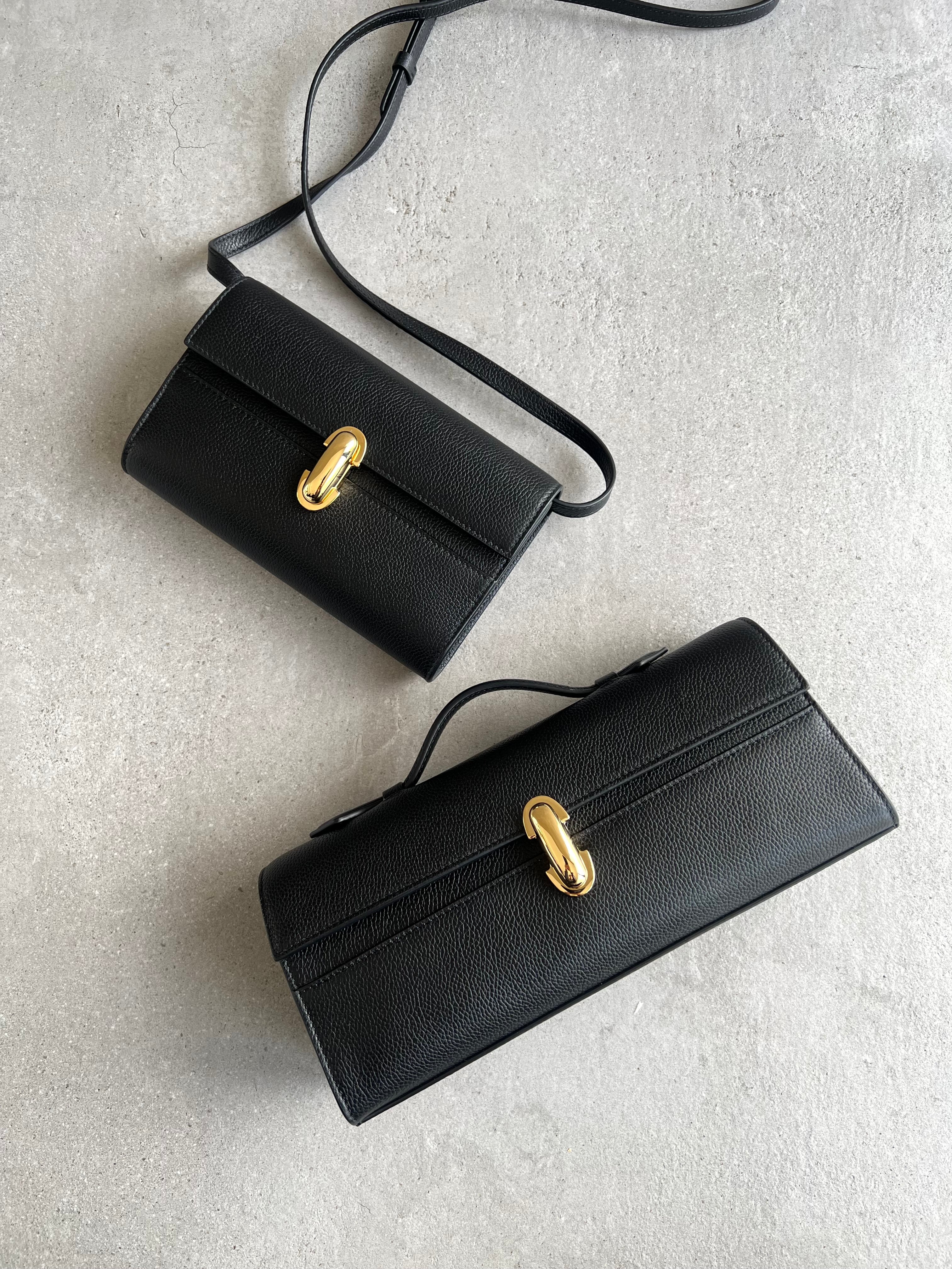 The Symmetry family celebrates geometry in its purest forms: parallel and perpendicular lines. The Slim Pochette is a more stylized and elongated version of our classic pochette silhouette.