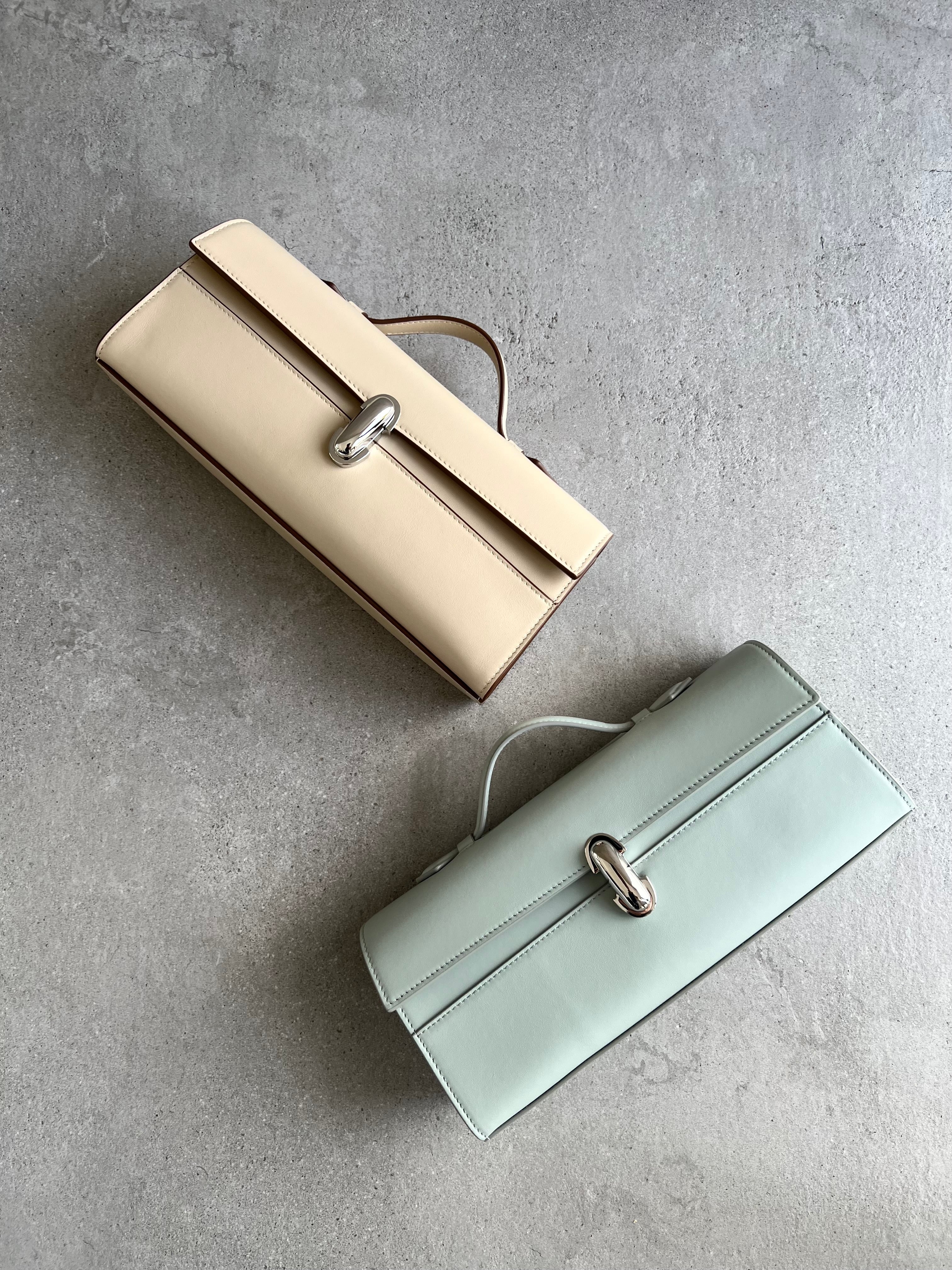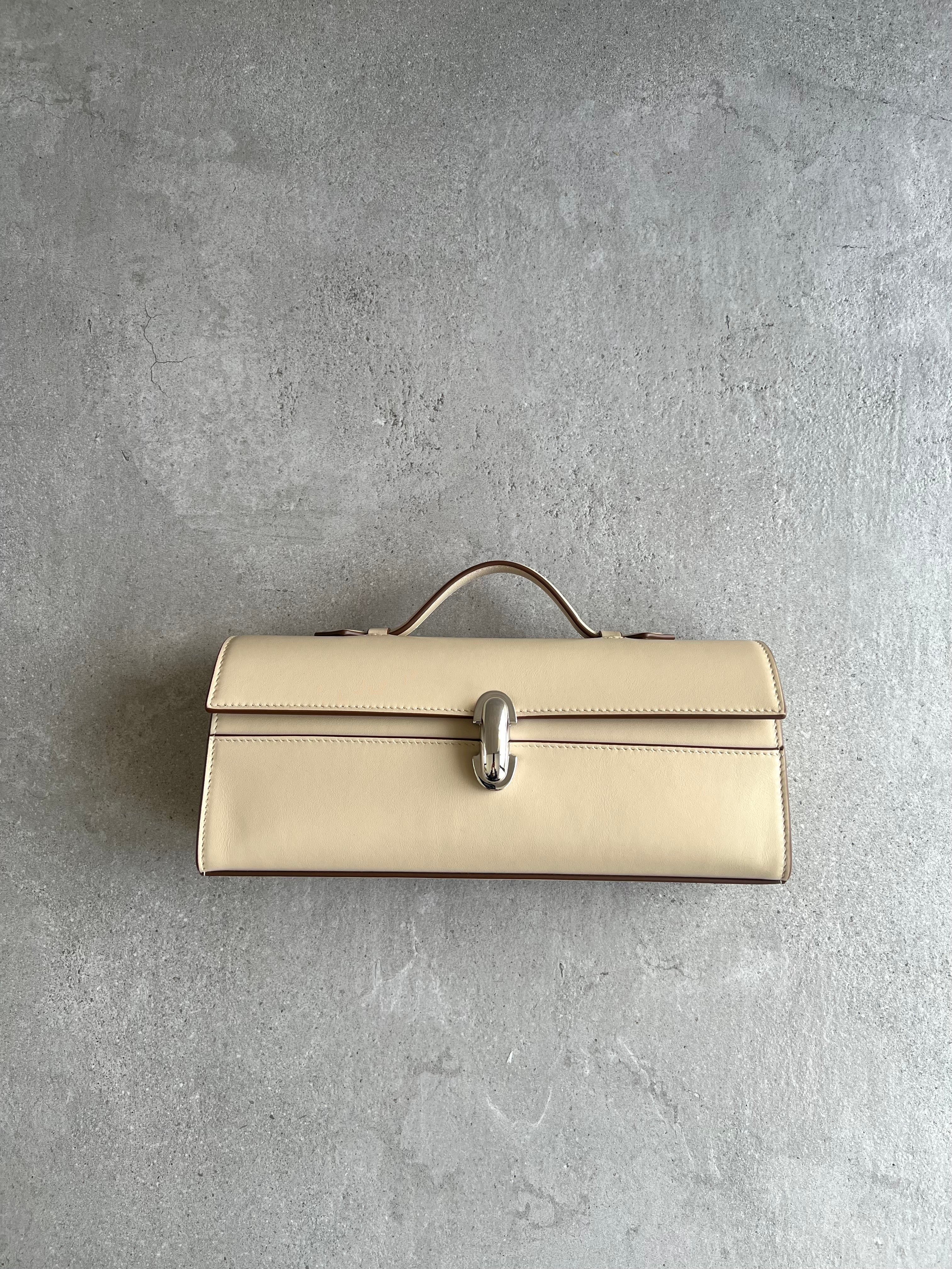 The Symmetry family celebrates geometry in its purest forms: parallel and perpendicular lines. The Slim Pochette is a more stylized and elongated version of our classic pochette silhouette.