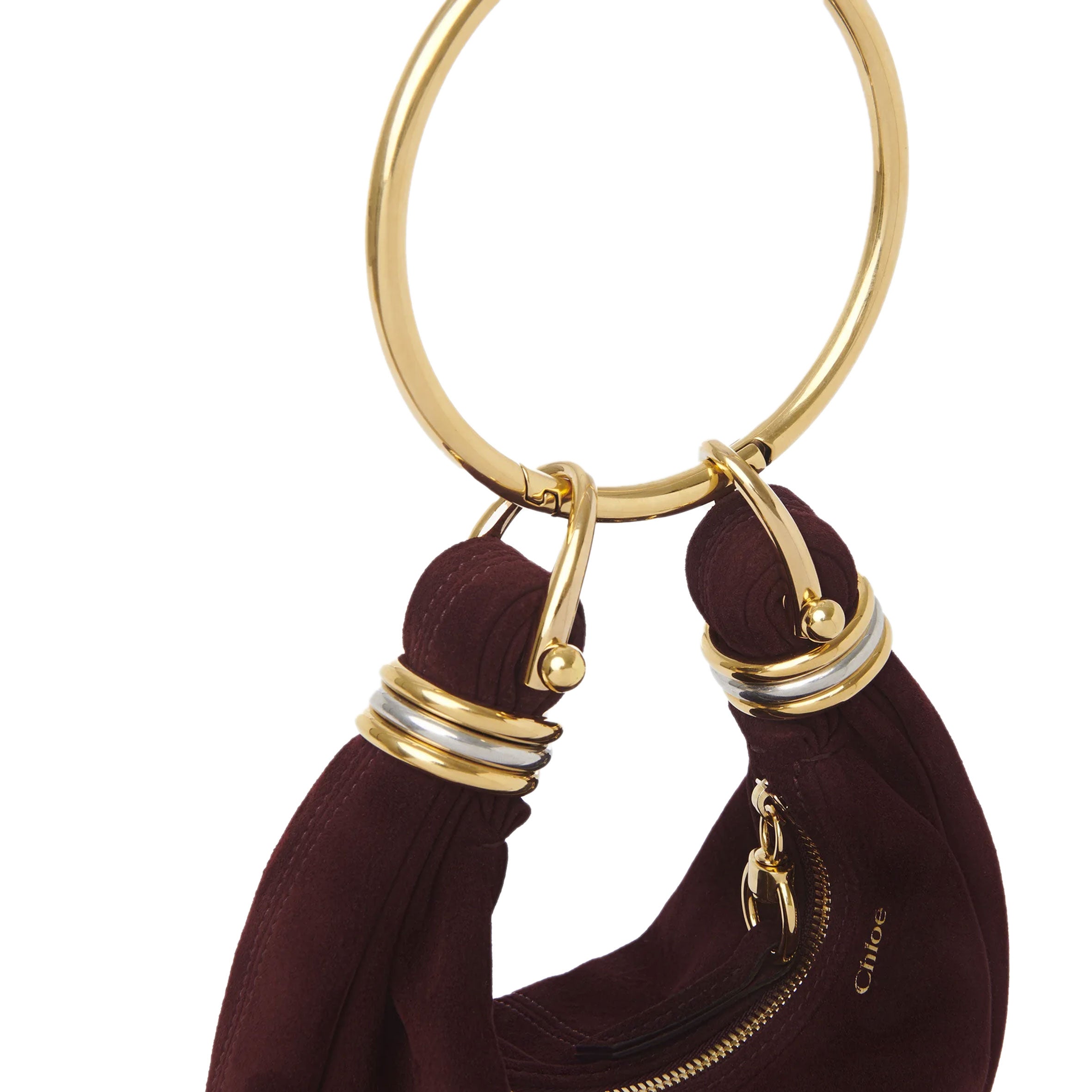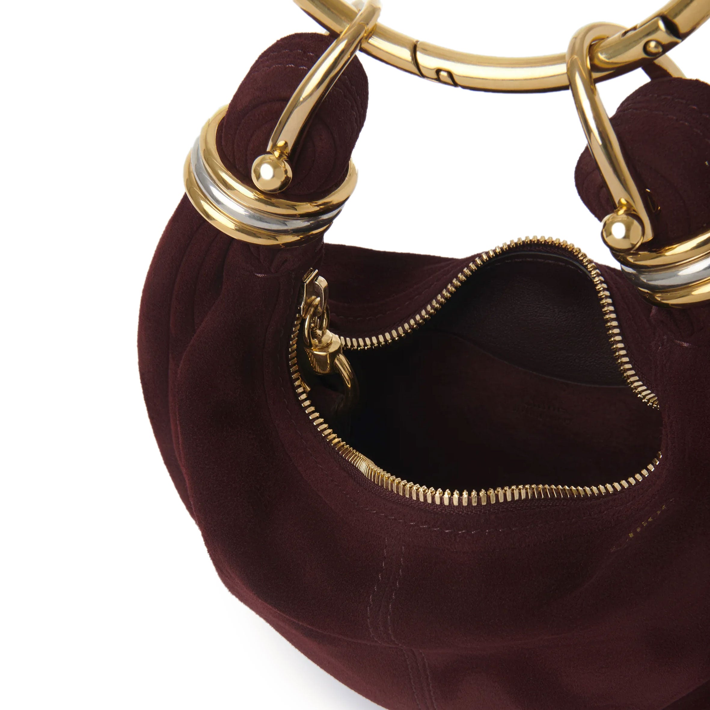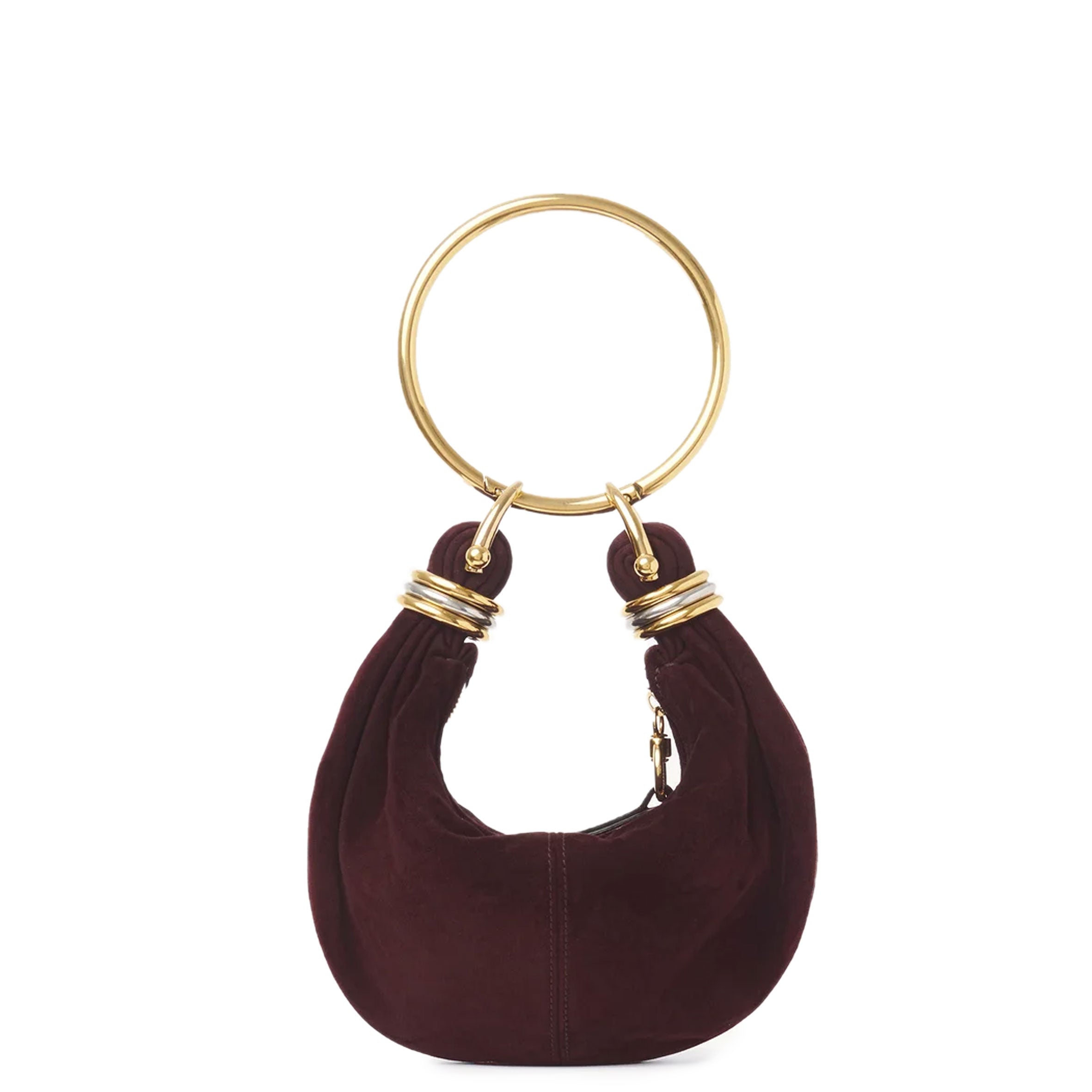 Inspired by the Maison's Archives, this mini Bracelet Hobo bag is crafted from suede lambskin. The supple, rounded shape is elevated by a bracelet handle and stacked bi-color rings at the ends.